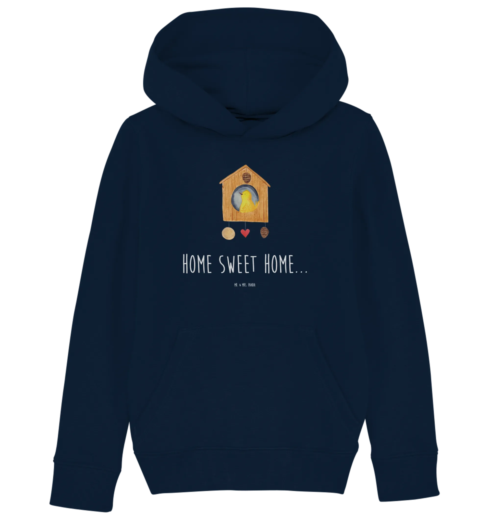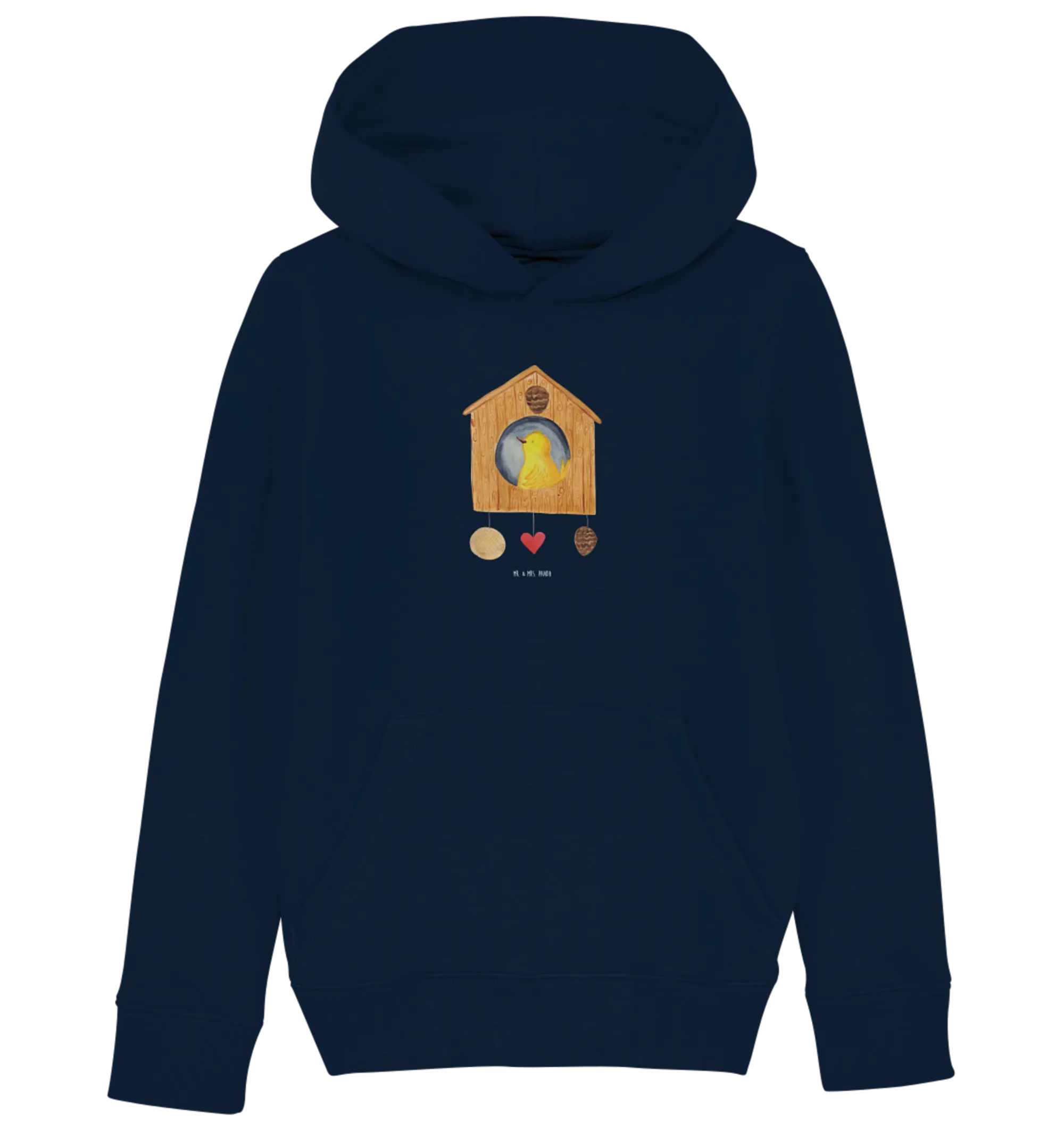 Der Organic Kinder Hoodie mit dem lieben Vogelhaus-Motiv "Home sweet home" aus der kleinen Welt-Kollektion von Mr. & Mrs. Panda ist das perfekte Geschenk für kreative Familien, die ihrem Zuhause eine besondere Note geben möchten.