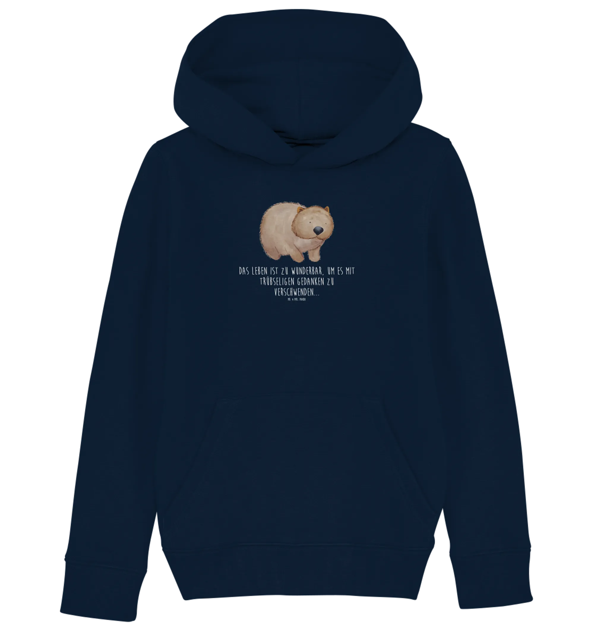Entdecke den kuscheligen Kapuzenpullover für Kinder mit dem liebevoll handgezeichneten Wombat-Motiv. Der süße Beutelbewohner strahlt Ruhe und Wärme aus und wird schnell zum Lieblingsstück deines Kindes. Der hochkant platzierte Spruch „Das Leben ist zu wunderbar, um es mit trübseligen Gedanken zu verschwenden...“ sorgt für gute Laune und wirkt wie eine kleine Erinnerung, den Tag fröhlich zu beginnen.