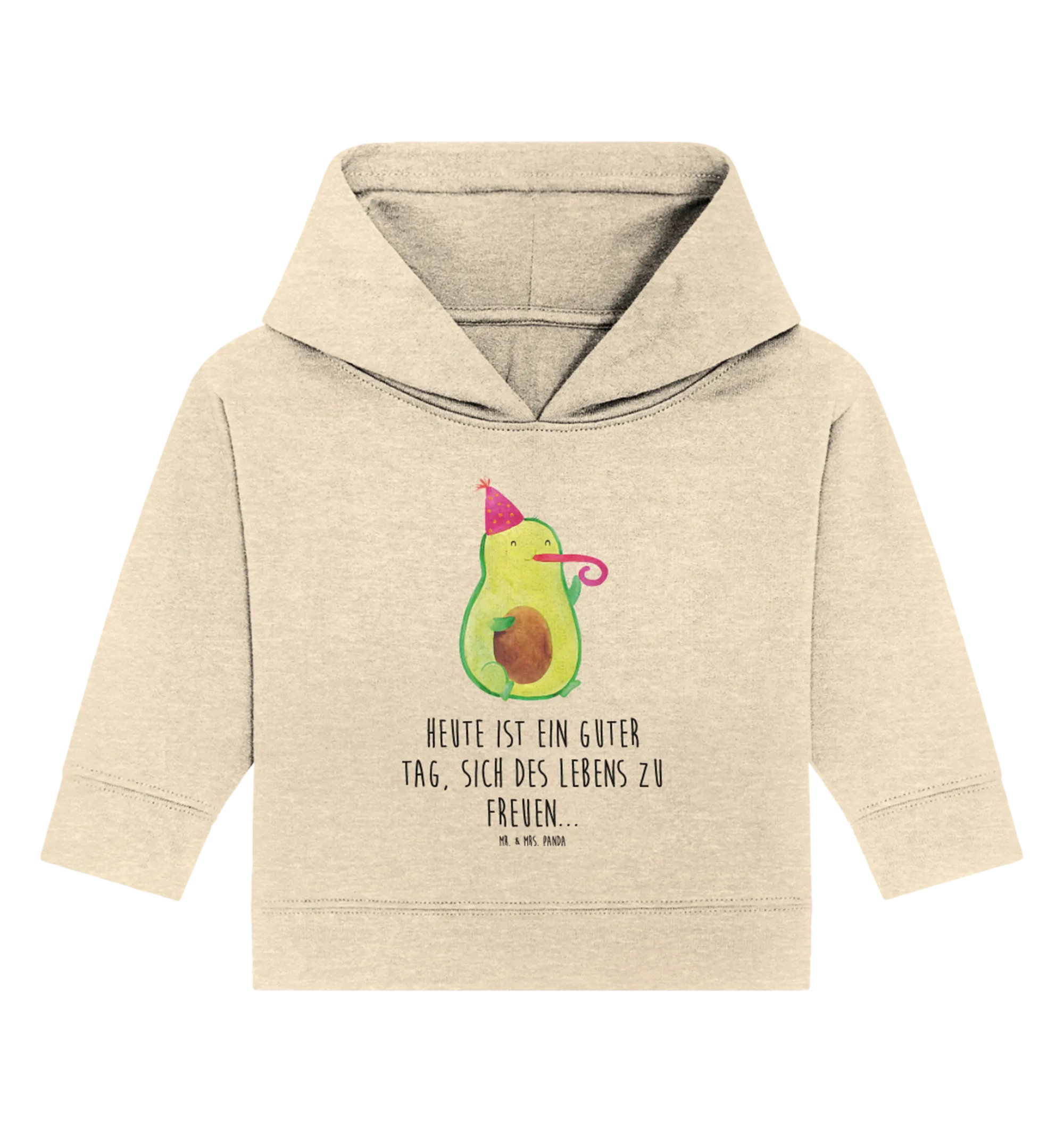 Das Organic Baby Hoodie "Avocado Partyhupe" aus der besonderen Avocado Kollektion von Mr. & Mrs. Panda ist das perfekte Geschenk für alle kleinen Feierbiester!