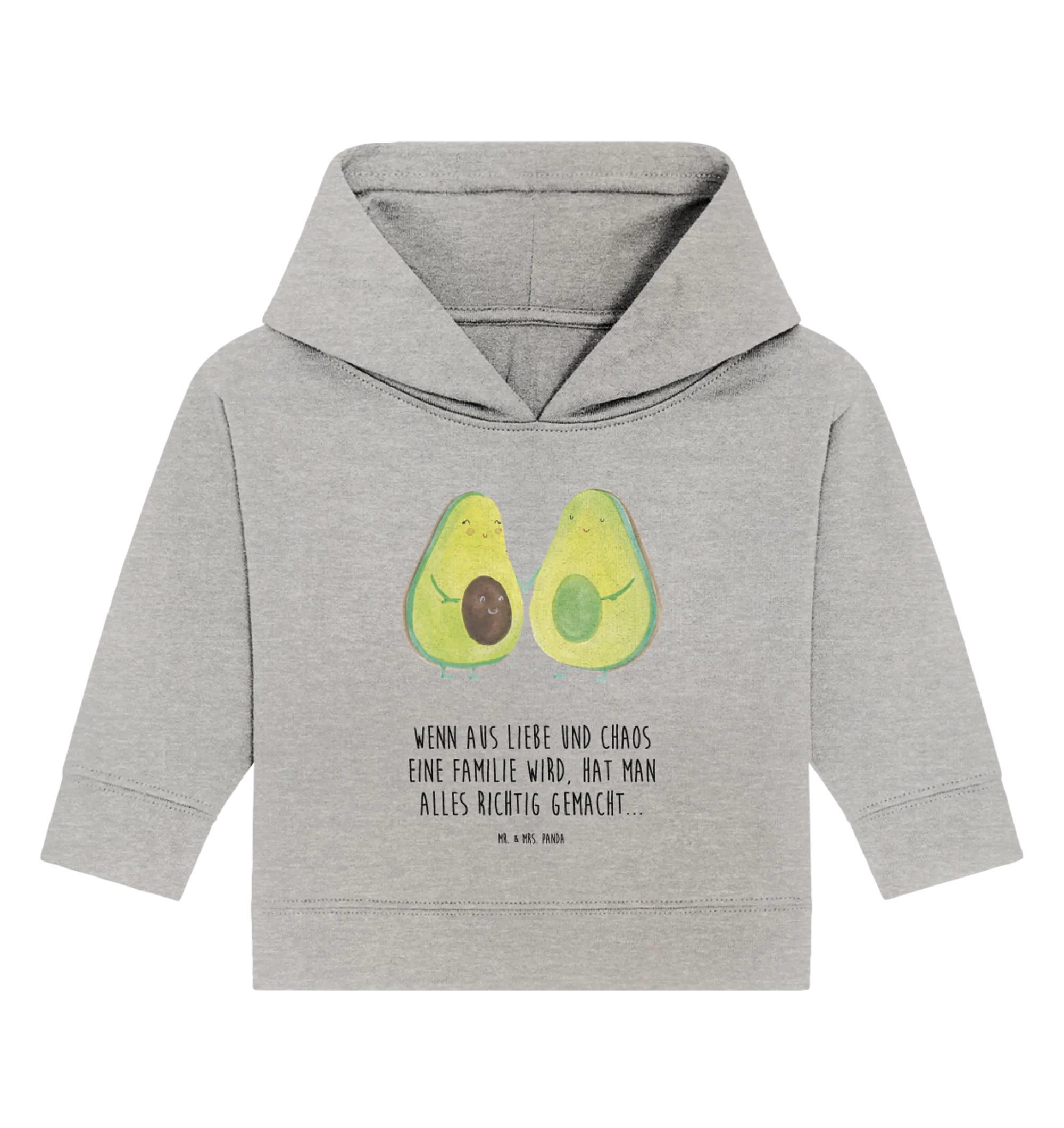 Die Kollektion Avocado von Mr. & Mrs. Panda ist mehr als nur ein Kleidungsstück; sie strahlt Positivität und Optimismus aus. Mit dem dazugehörigen Slogan: Wenn aus Liebe und Chaos eine Familie wird, hat man alles richtig gemacht... wird jede kleine Tragödie des Alltags auf eine charmante Weise aufgehellt. Dieses Hoodie ist nicht nur praktisch, sondern auch ein echter Hingucker bei jeder Babyparty oder Hochzeit.