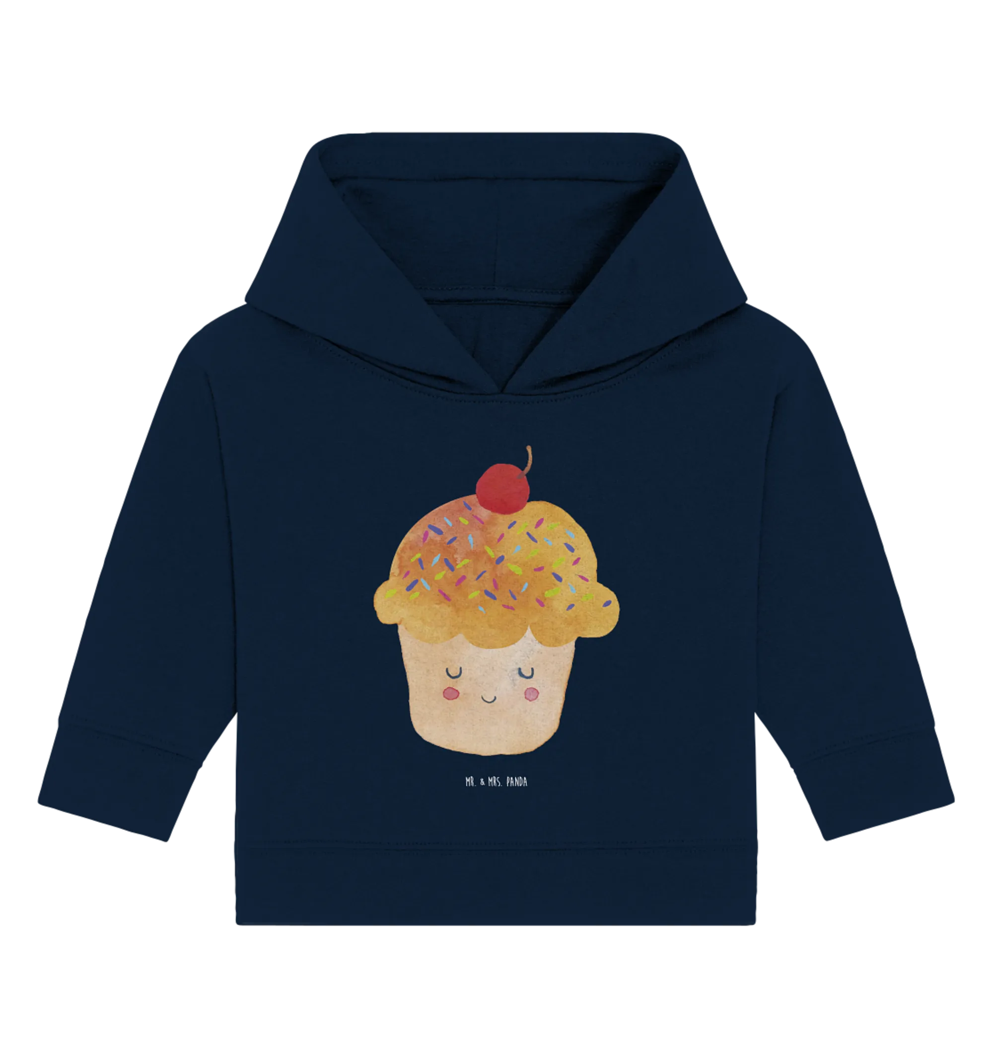 Hergestellt aus hochwertiger, ökologischer Baumwolle, bietet dieses Hoodie ein besonders sanftes Gefühl auf der zarten Babyhaut. Das fröhliche Cupcake-Motiv, welches von Mrs. Panda mit viel Liebe gestaltet wurde, zeigt einen stolzen Cupcake mit bunten Streuseln und einem herzlichen Lächeln. Es ist inspirierend und strahlt Lebensfreude aus, so wie die Botschaft: 'Cupcakes sind Muffins, die an Wunder glaubten.'