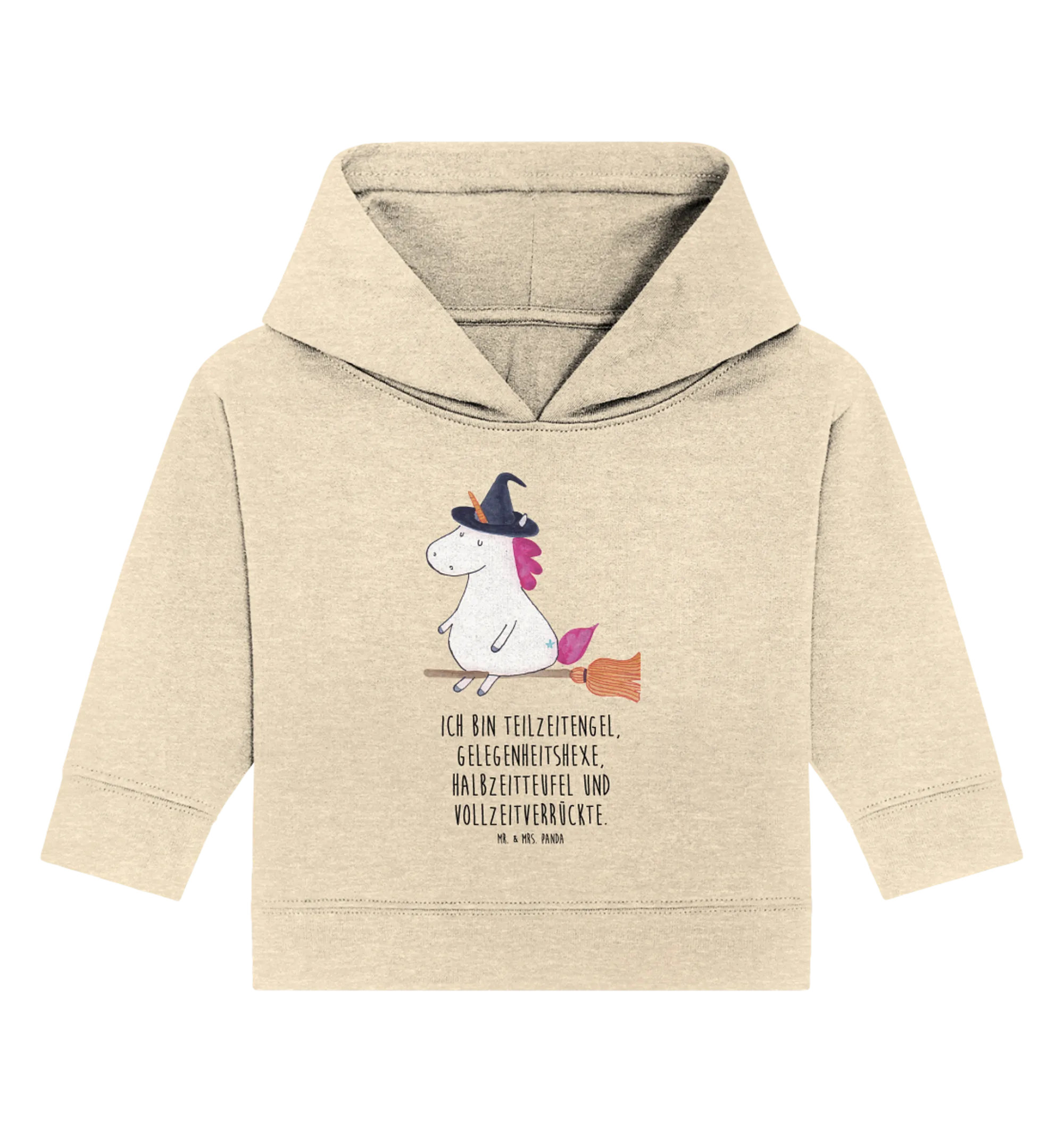 Kennst du das Gefühl, wenn das Leben ein bisschen verrückt, aber auch zauberhaft ist? Unser Organic Baby Hoodie mit dem Motif "Einhorn Hexe" bringt genau dieses Gefühl in die Welt der Kleinsten!
