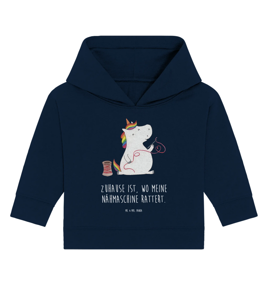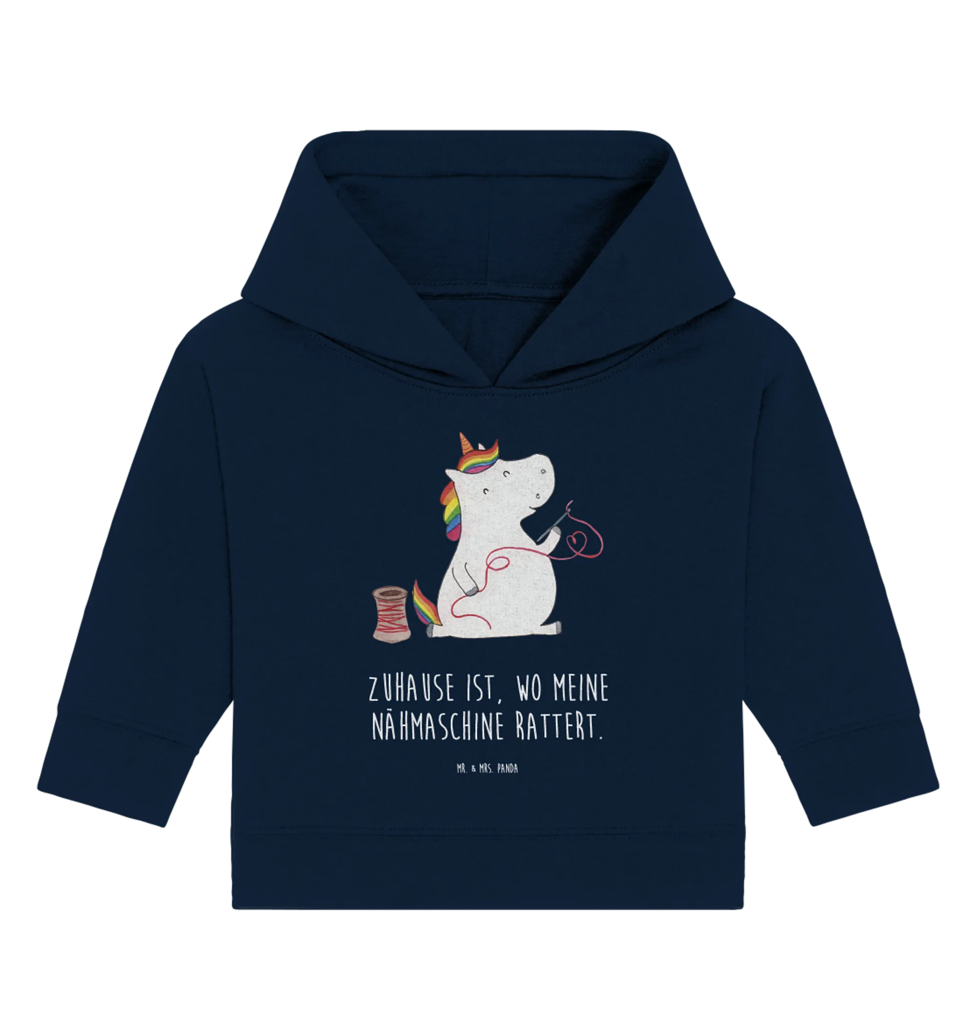 "Zuhause ist, wo meine Nähmaschine rattert" beschreibt die Liebe zur Handarbeit und zum kreativen Schaffen, die dieses Kapuzenshirt ausstrahlt. Mit dem Baby Hoodie erhältst du ein tolles Produkt aus der Einhorn Kollektion von Mr. & Mrs. Panda, die viele weitere niedliche Einhorn-Motive bietet.