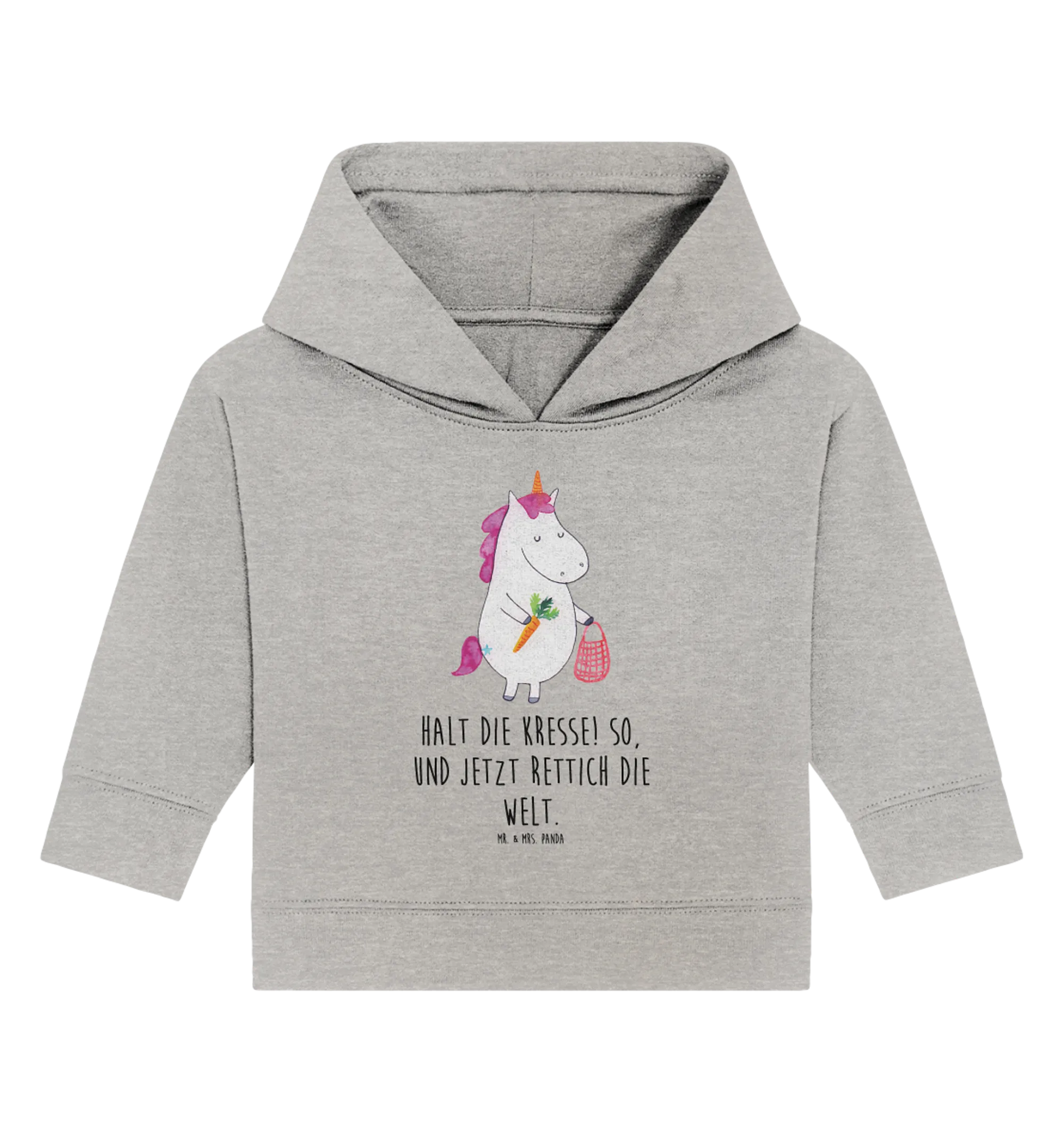 Das Organic Baby Hoodie mit dem bezaubernden Einhorn Gemüse Motiv aus der Einhorn-Kollektion von Mr. & Mrs. Panda ist das perfekte Geschenk für alle kleinen Einhorn-Fans! Mit viel Liebe zum Detail wurde dieses Kapuzenshirt designed, um nicht nur super süß auszusehen, sondern auch eine Botschaft zu transportieren: "Halt die Kresse! So, und jetzt Rettich die Welt." Es ist ideal für Eltern, die nach einem originellen und praktischen Kleidungsstück suchen, das gleichzeitig stilvoll und nachhaltig ist.