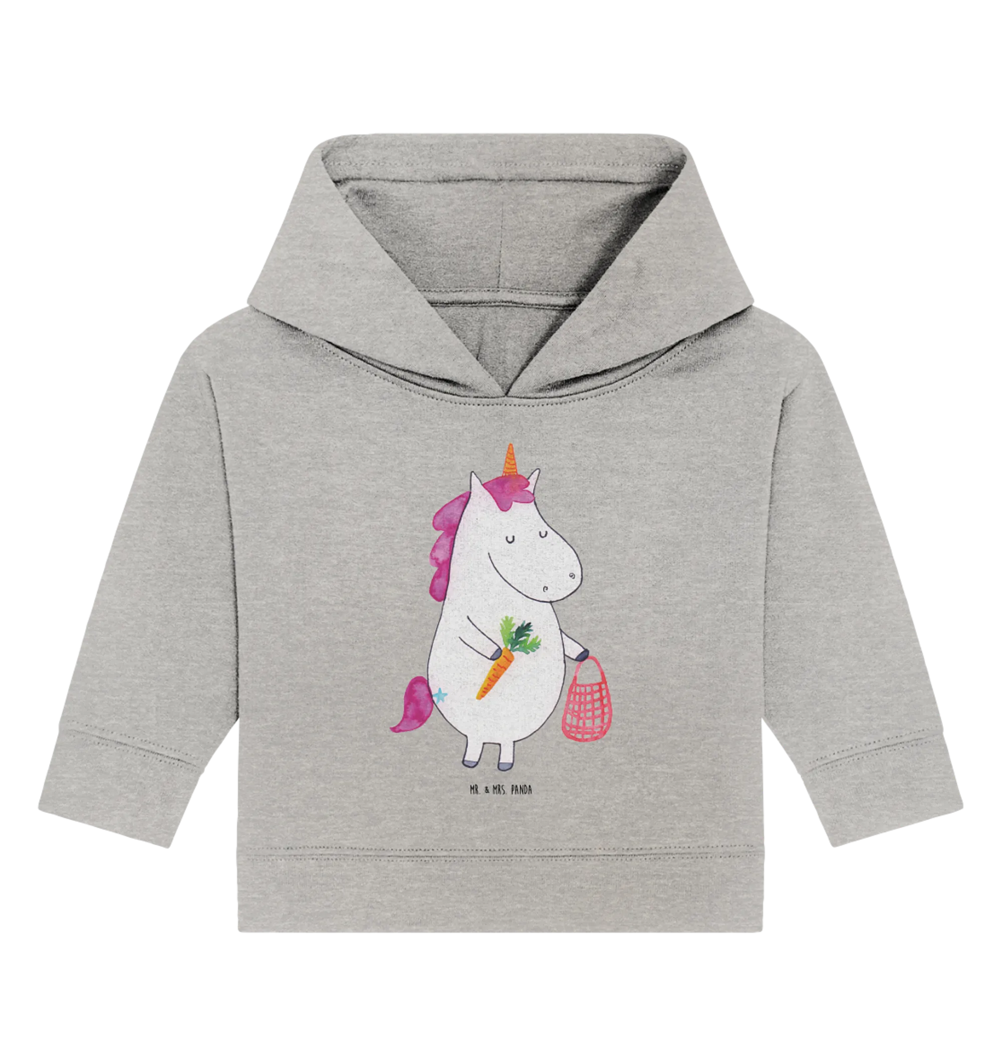 Das Organic Baby Hoodie mit dem niedlichen Einhorn Gemüse Motiv aus der bezaubernden Einhorn-Kollektion von Mr. & Mrs. Panda ist das perfekte Geschenk für kleine Einhorn-Liebhaber. Ob zur Geburt, zum ersten Geburtstag oder zu einem besonderen Anlass: Dieses Kapuzenshirt bringt nicht nur Freude, sondern auch einen Hauch von Magie in den Kleiderschrank deines kleinen Schatzes. Das liebevoll handgezeichnete Einhorn, das sein Gemüse vom Wochenmarkt mitgebracht hat, ist ein echter Hingucker und erzählt eine süße Geschichte von gesunder Ernährung und fröhlichem Spiel.