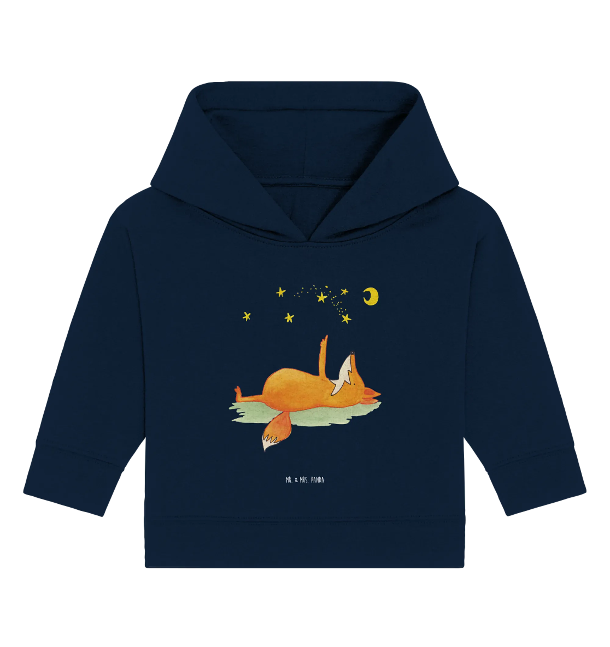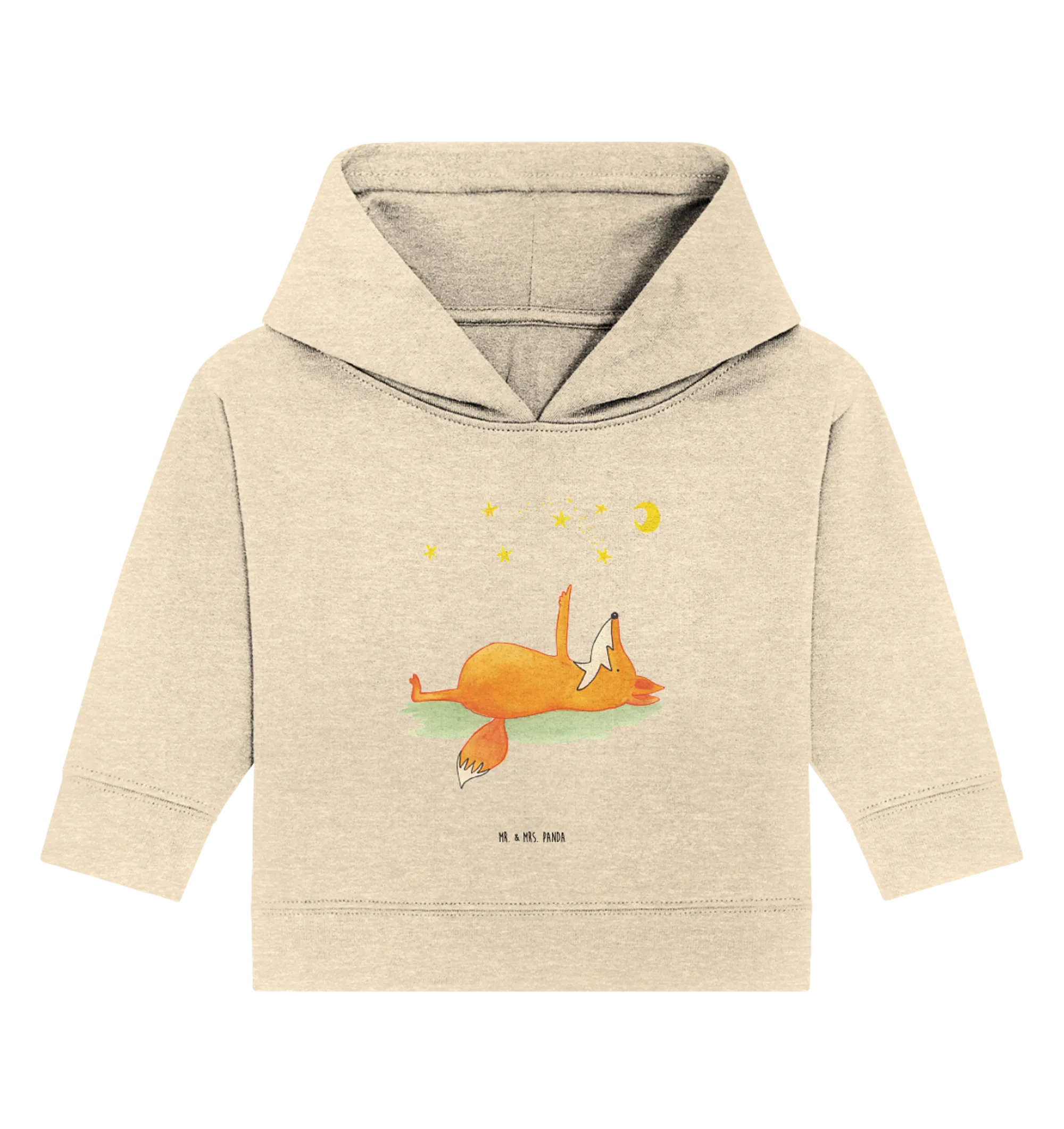 Das Organic Baby Hoodie Fuchs Sterne ist der perfekte Begleiter für kleine Sternengucker und Träumer! Mit seinem süßen Fuchs-Motiv, der auf dem Rücken liegt und begeistert in den Sternenhimmel schaut, bringt dieses Kapuzenshirt Freude und warme Gedanken. Die liebevollen Motive aus der Fuchs Kollektion von Mr. & Mrs. Panda sind nicht nur niedlich, sondern auch einzigartig. Jedes Teil dieser Kollektion ist mit viel Herz von Mrs. Panda handgezeichnet und spiegelt den Charakter der schlauen und geselligen Füchse wider. Wer also ein Geschenk zur Geburt oder zur Taufe sucht, findet hier das ideale Produkt!