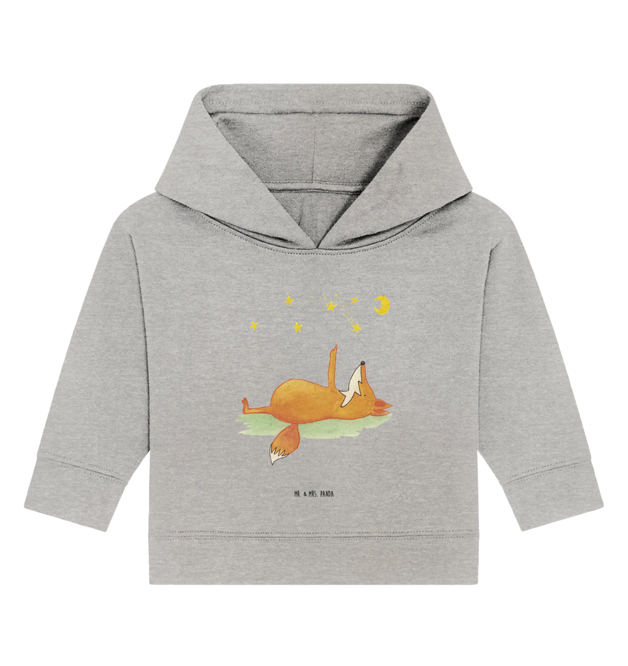 Das Organic Baby Hoodie "Fuchs Sterne" aus der Fuchs Kollektion von Mr. & Mrs. Panda ist das perfekte Geschenk für kleine Abenteurer und Träumer! Mit seinem wunderschönen, handgezeichneten Motiv eines süßen Fuchses, der verträumt in den Sternenhimmel schaut, lädt dieses Kapuzenshirt zum Staunen und Träumen ein.