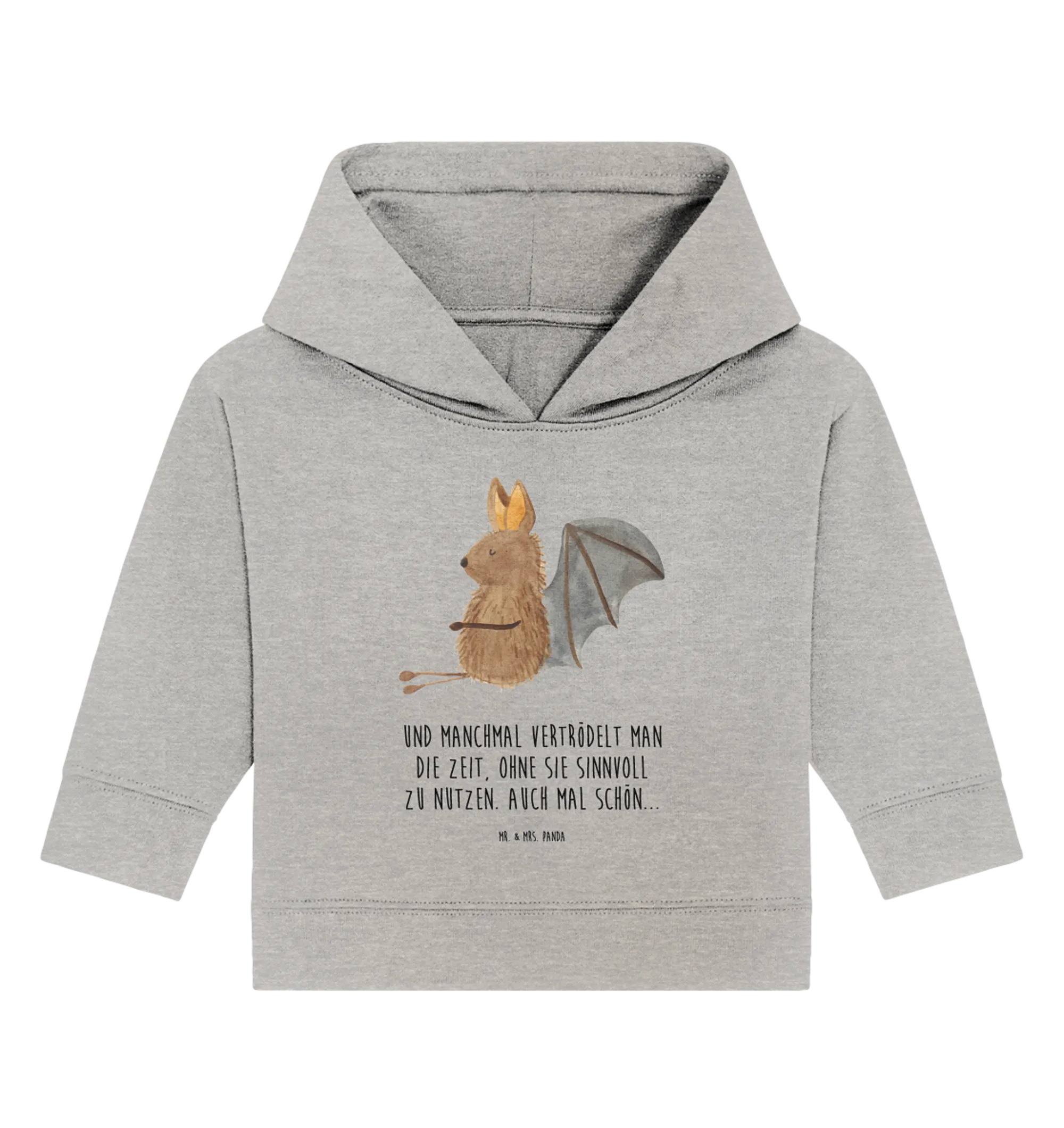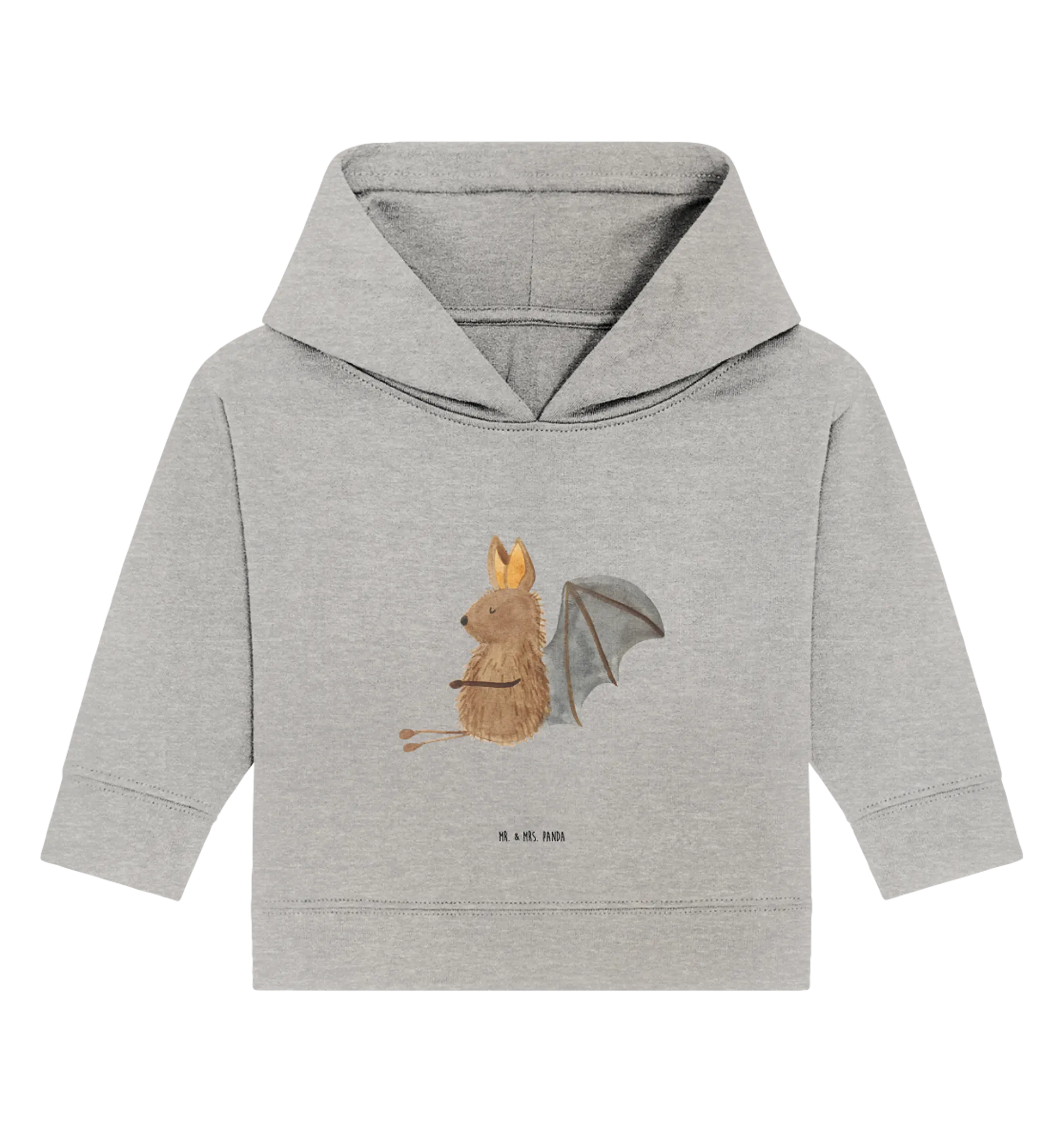 Entdecke den süßen Organic Baby Hoodie mit dem lustigen Motiv der sitzenden Fledermaus aus der Small World Kollektion von Mr. & Mrs. Panda. Dieser Hoodie ist nicht nur super süß, sondern auch aus hochwertiger Öko-Baumwolle gefertigt, die sanft zur zarten Babyhaut ist.