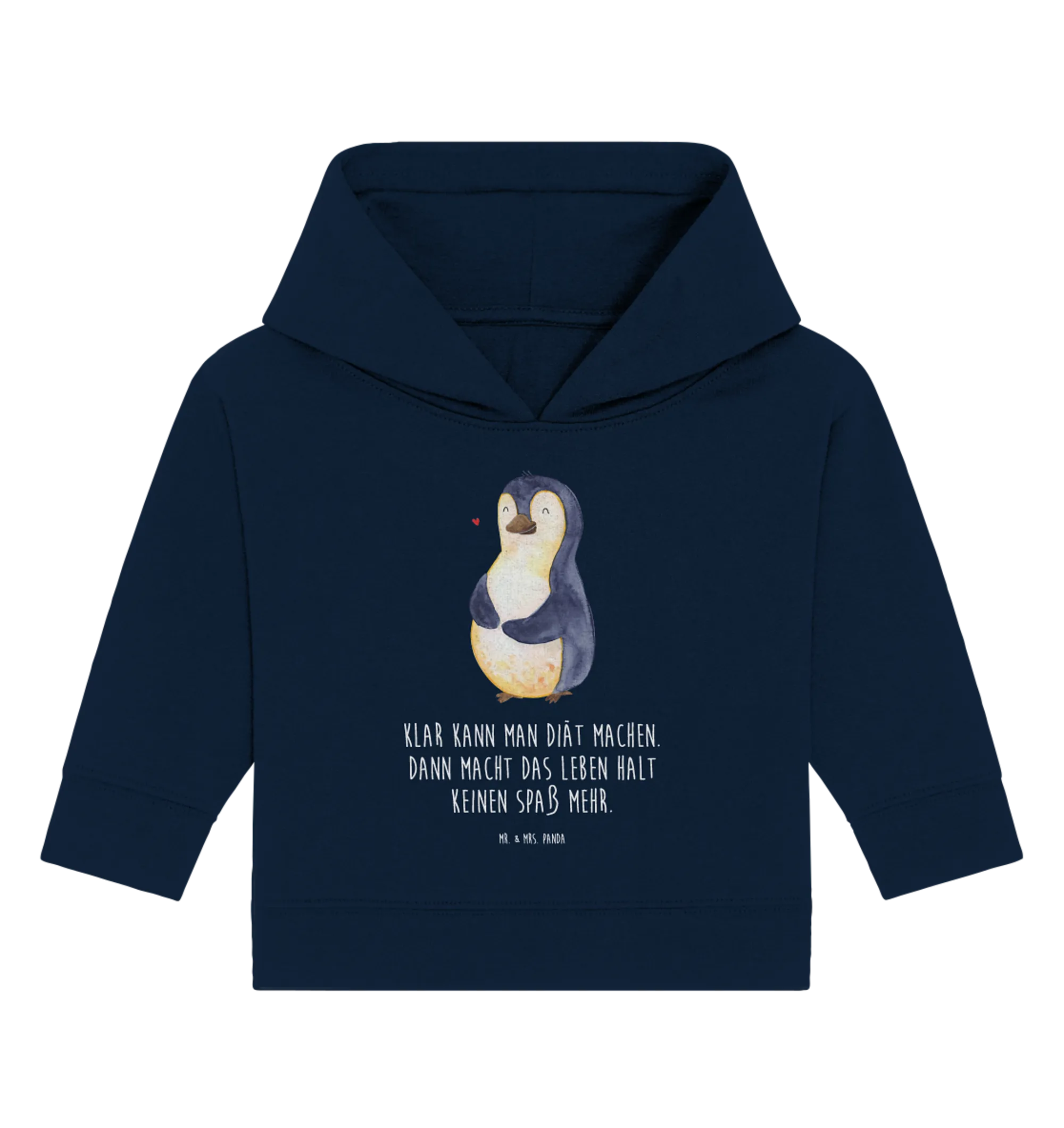 Es ist nicht nur ein Kleidungsstück, sondern ein Statement für Liebe, Freude und ganz viel Spaß im Leben. Verschenke Freude – mit dem Organic Baby Hoodie mit Pinguin Diät-Motiv aus der Pinguin-Kollektion von Mr. & Mrs. Panda!