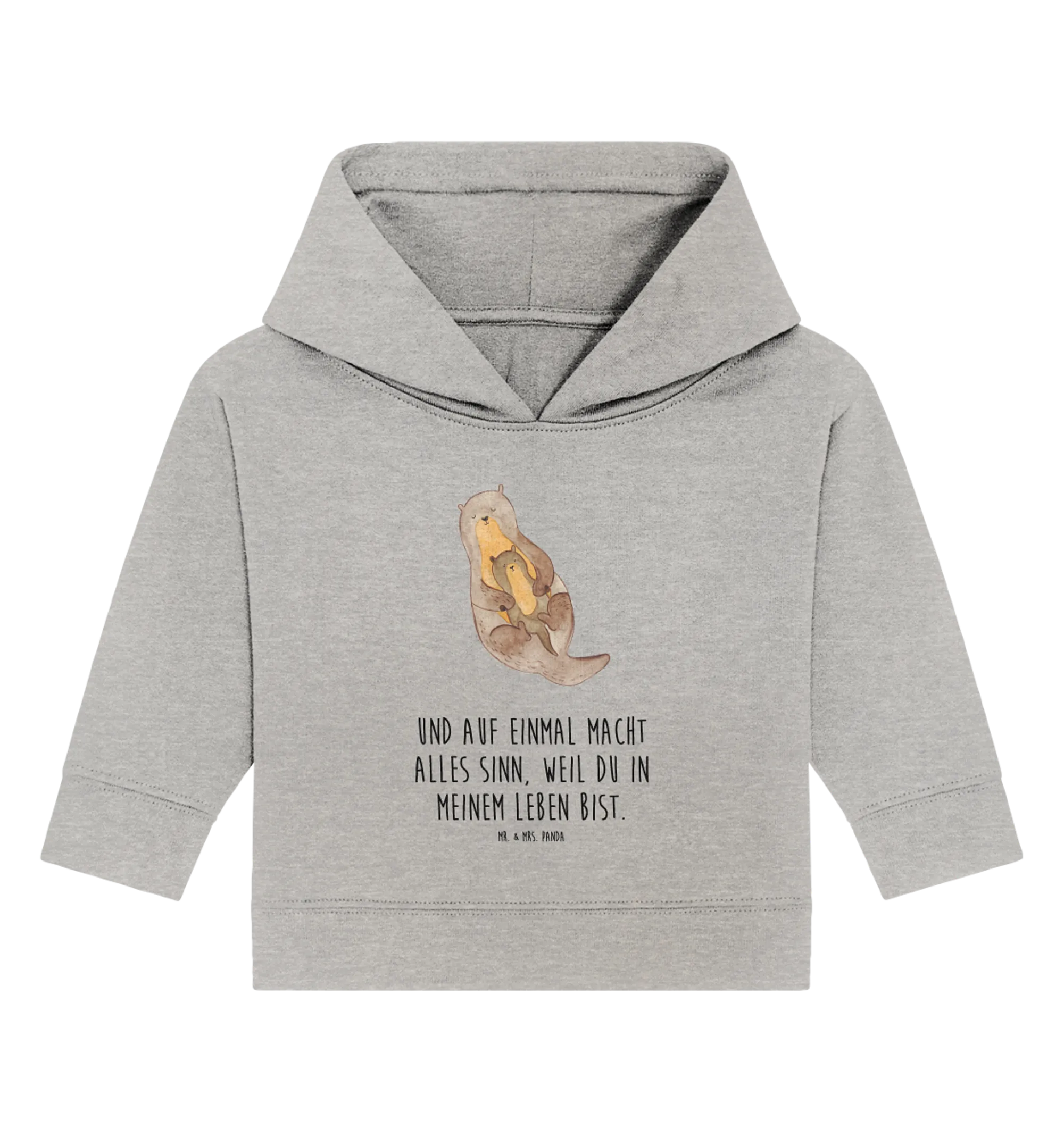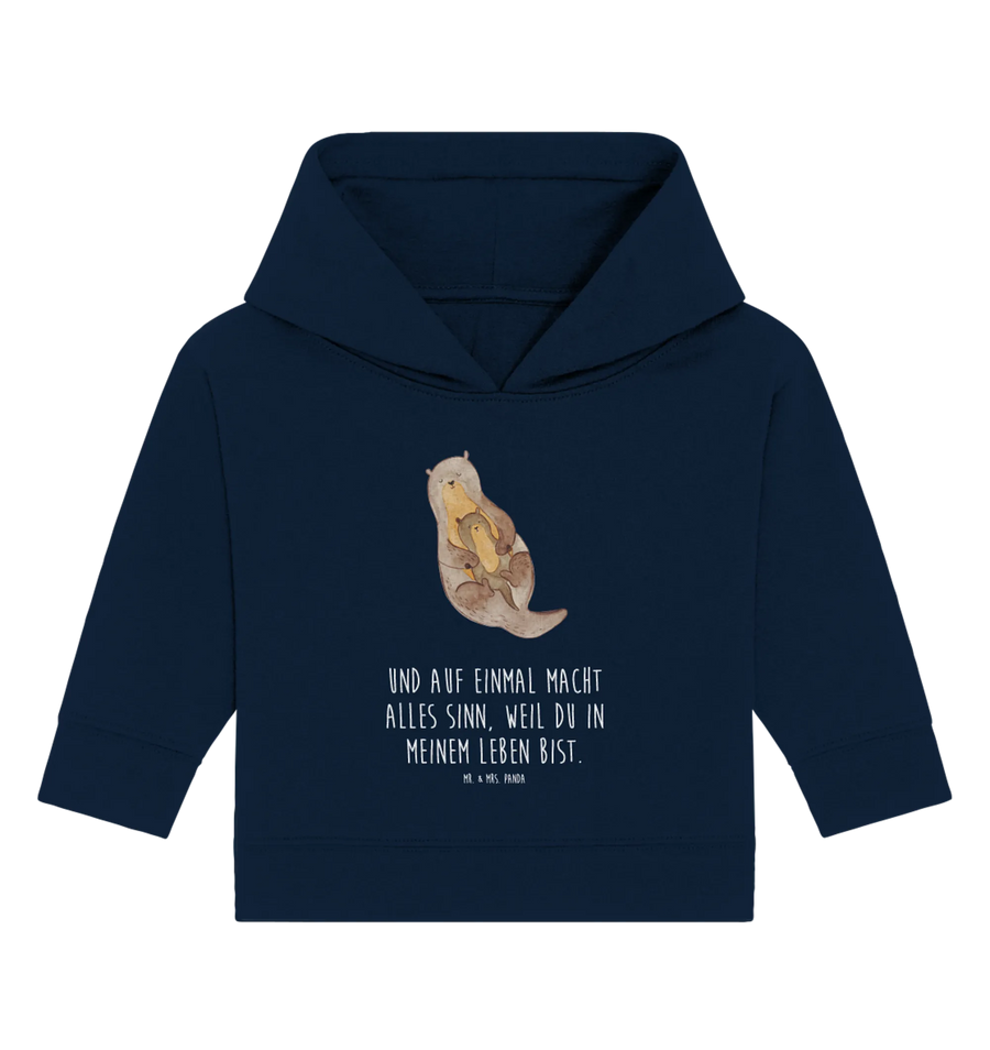 Ob Baby Pullover oder Baby Kapuzensweatshirt, dieses Teil ist das perfekte Geschenk zur Geburt oder zur Taufe. Verwandte und Freunde werden begeistert sein, wenn sie diesen Hoodie sehen – und niemand wird das Herz dieser kleinen Otter-Familie widerstehen können. Mit dem Slogan „Und auf einmal macht alles Sinn, weil du in meinem Leben bist.“ wird das Hoodie-Design noch zusätzlich emotional aufgeladen.