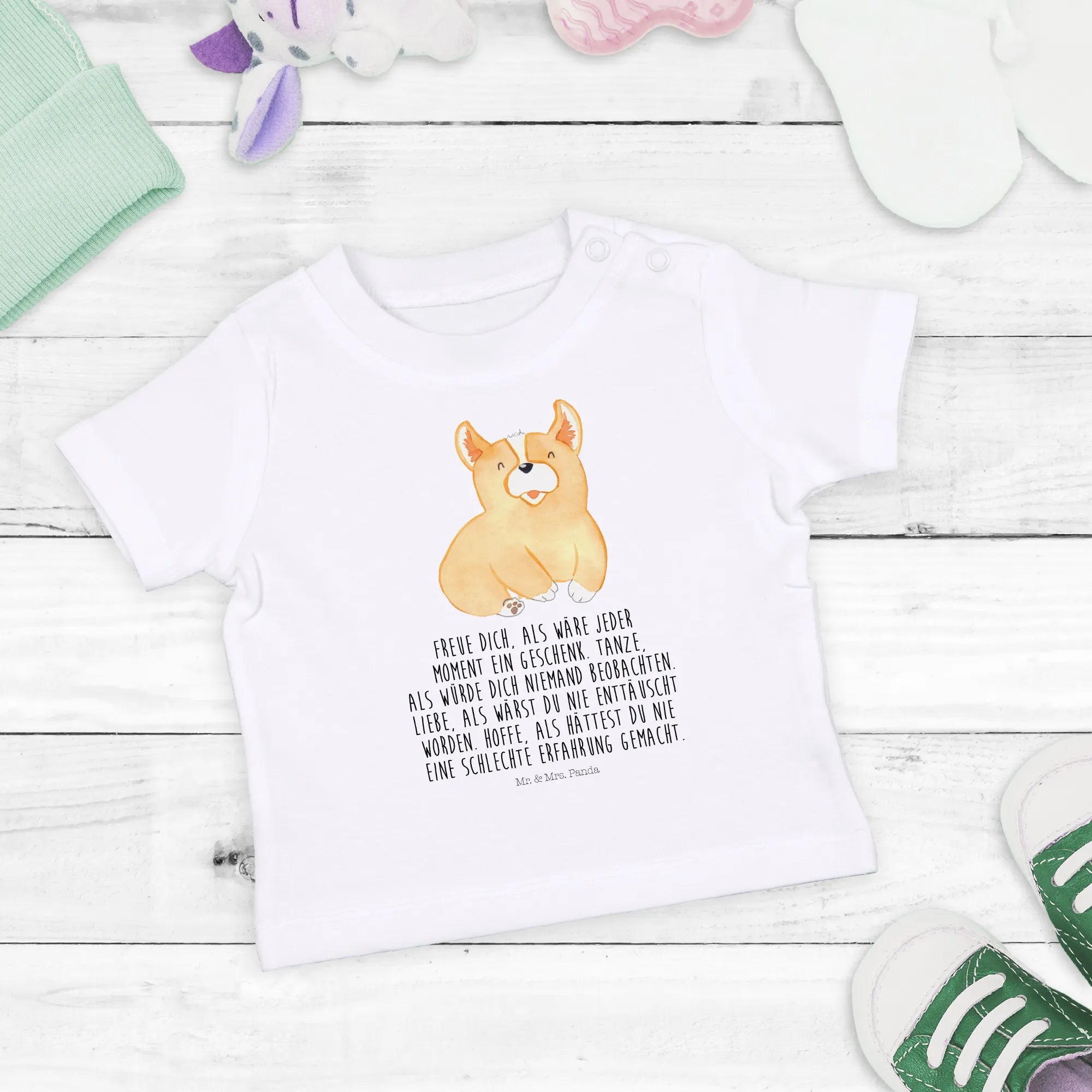 Organiczna koszulka dla niemowląt Corgi - 0. - 6. miesiąc - z napisem