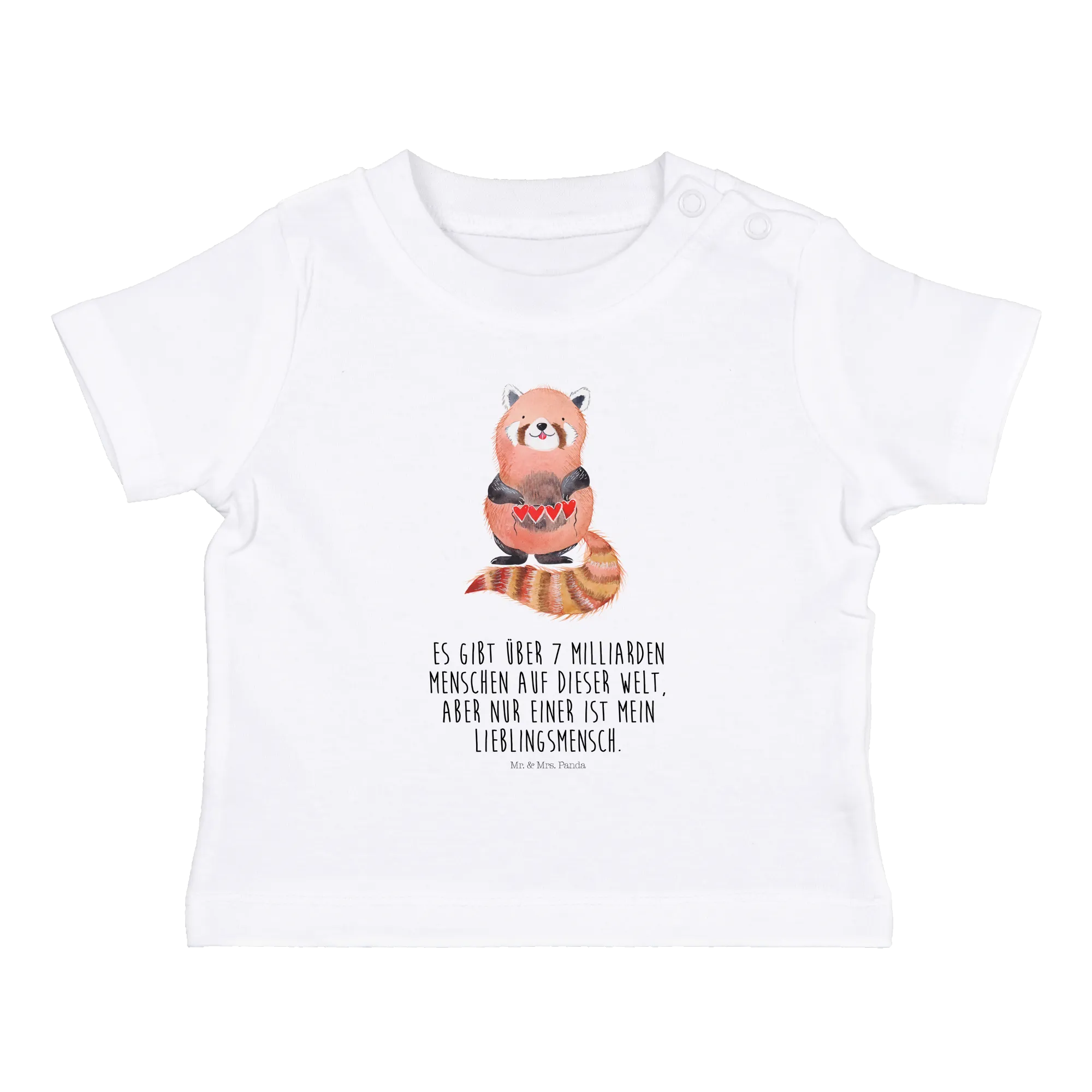 Organiczna koszulka dla niemowląt Czerwony Panda - 0. - 6. miesiąc - z napisem - biały