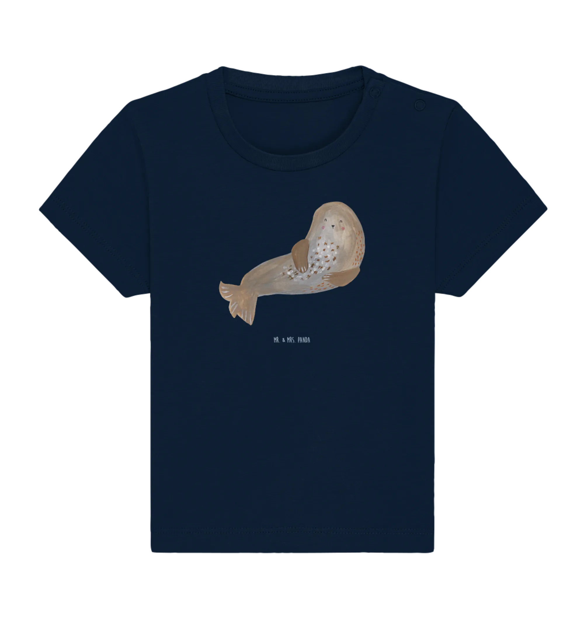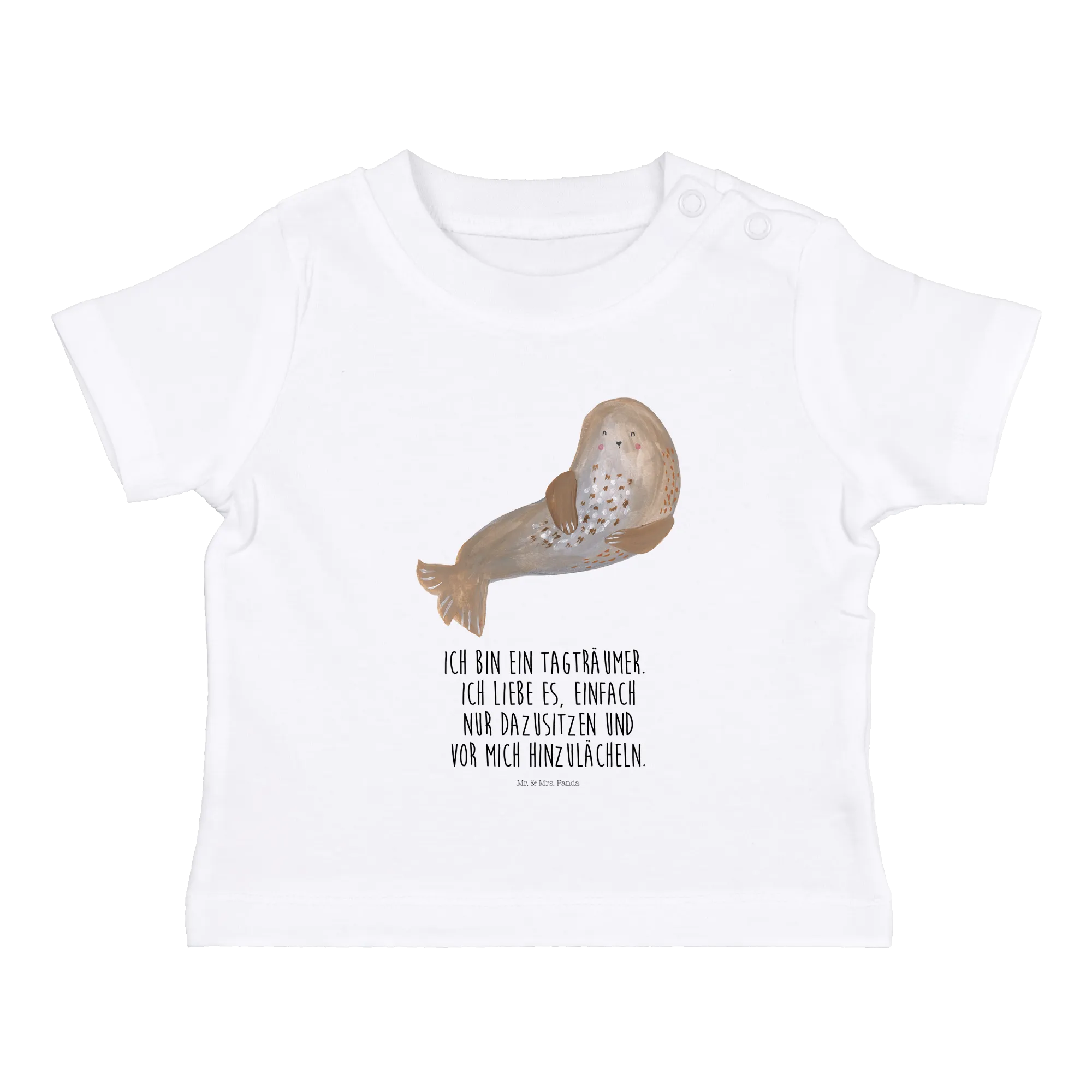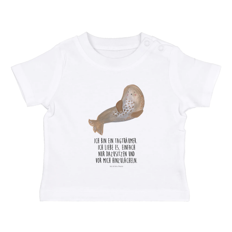 Organiczna koszulka dla niemowląt foka śmiech - 6. - 12. miesiąc - z napisem - Biały