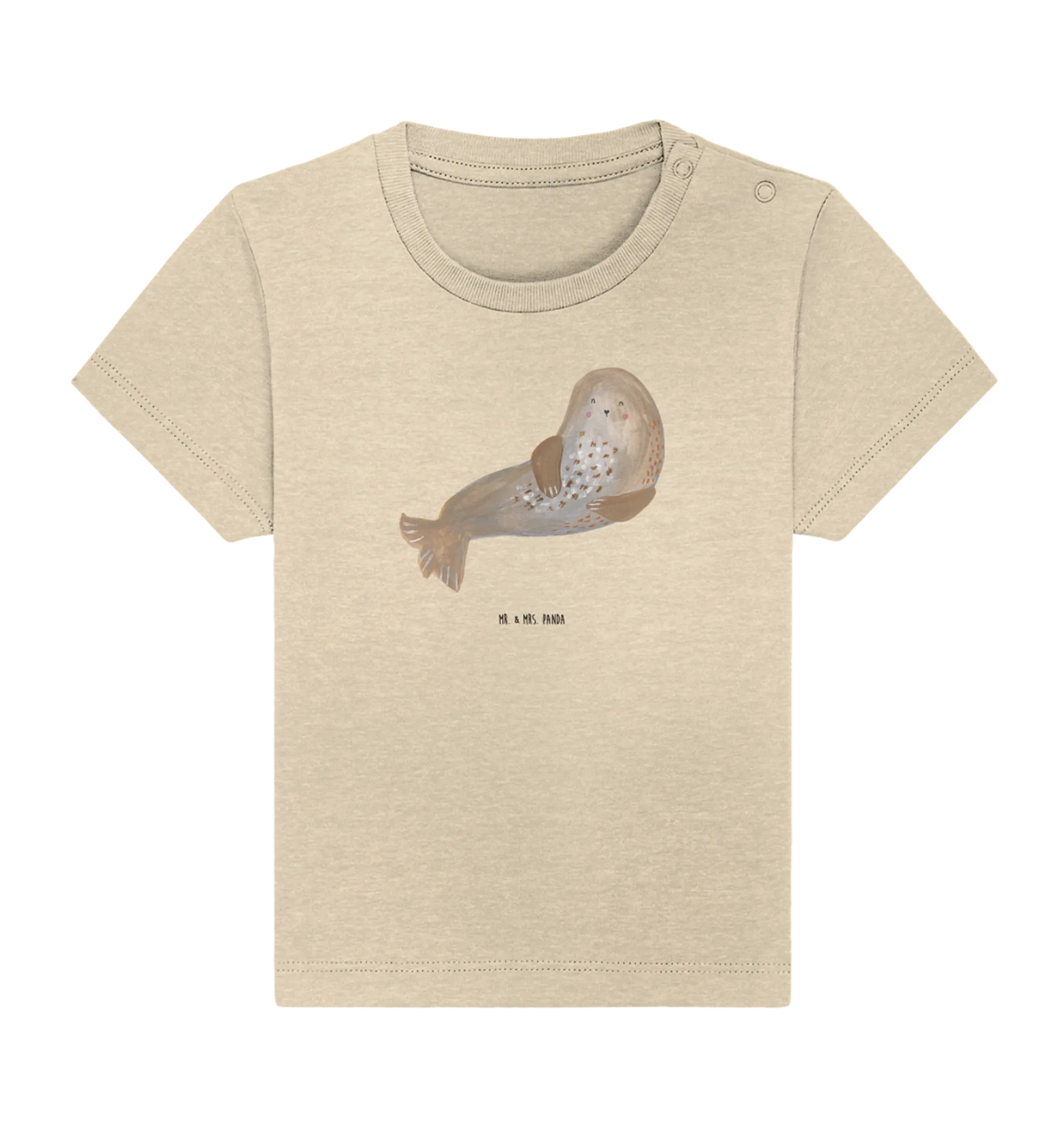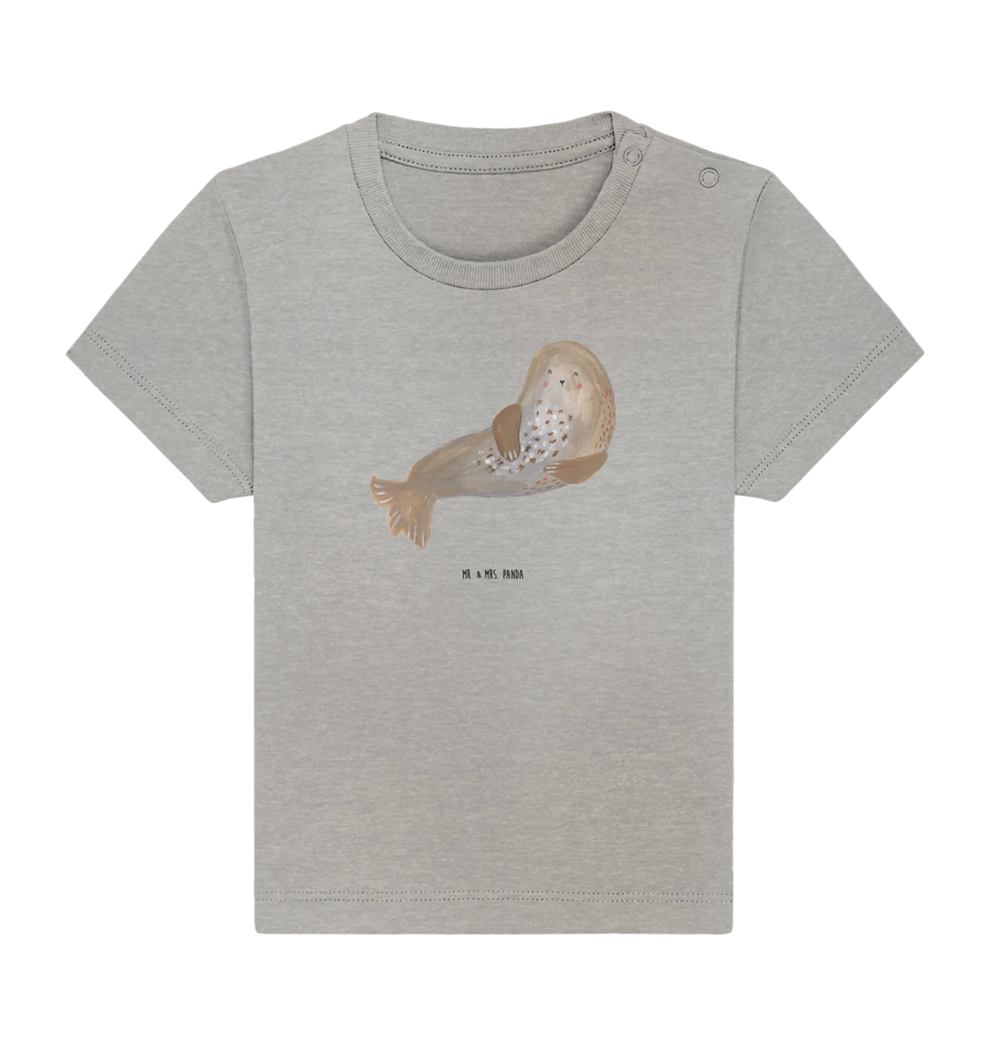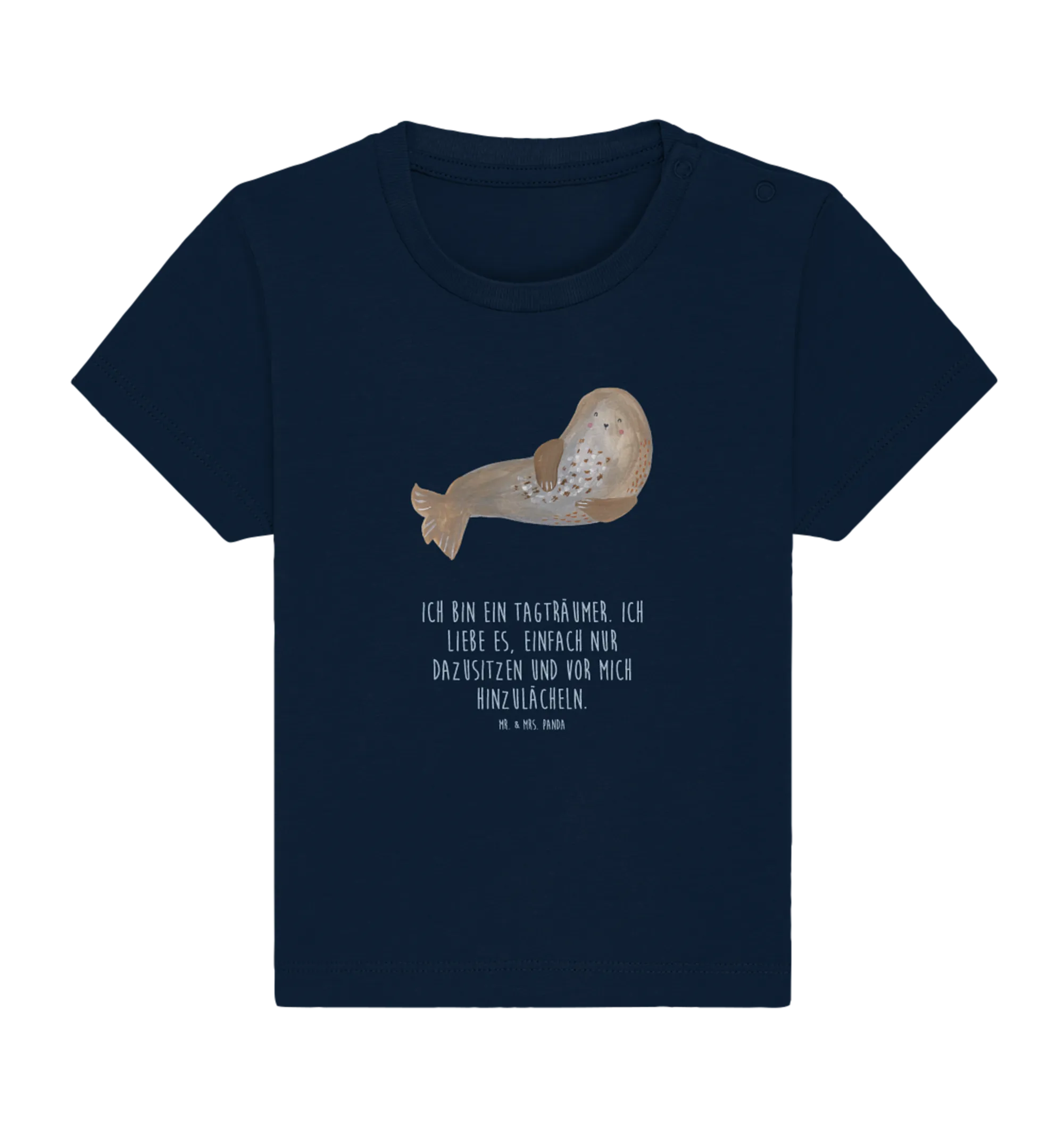 Organiczna koszulka dla niemowląt foka śmiech - 6. - 12. miesiąc - z napisem - Biały