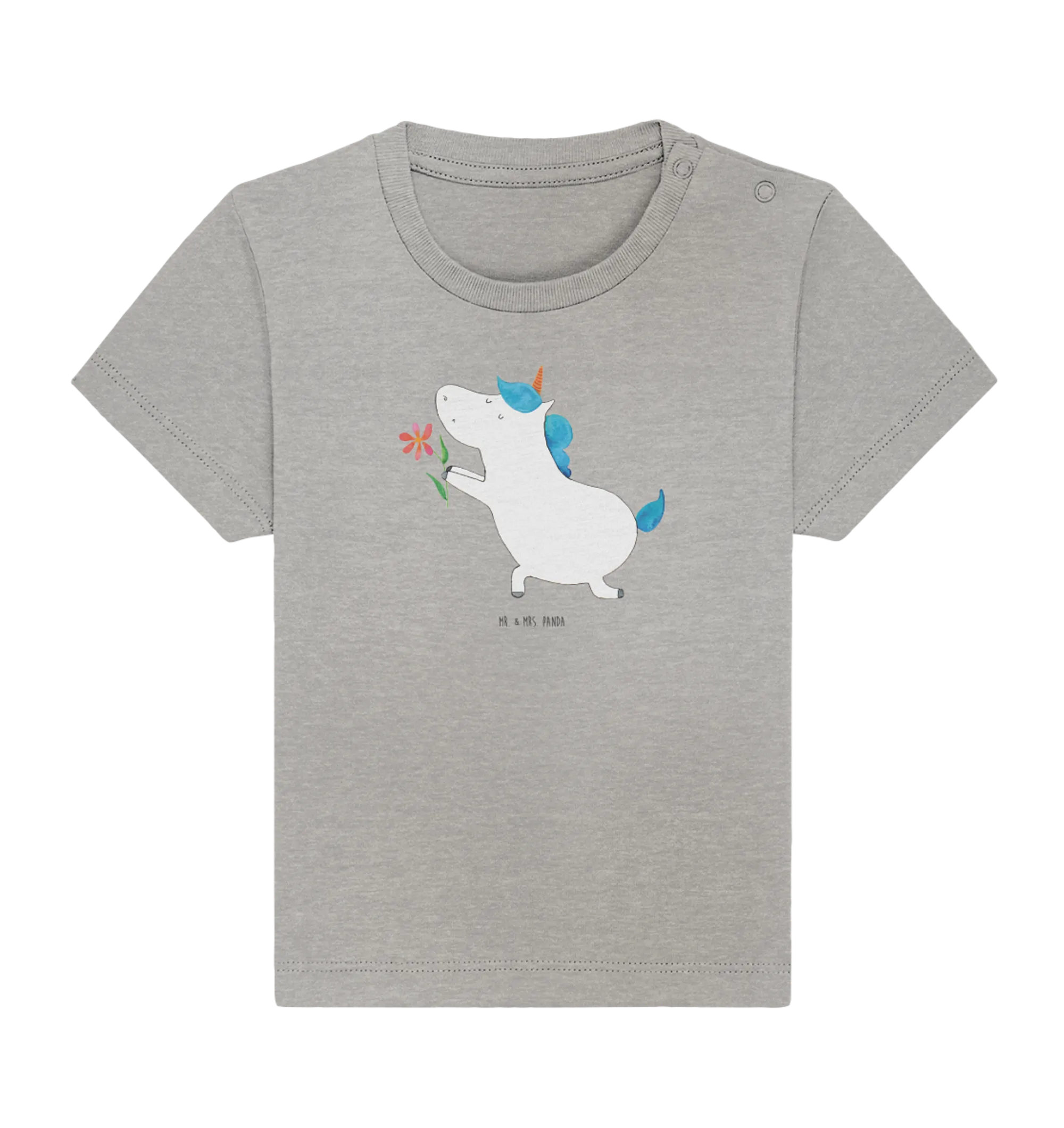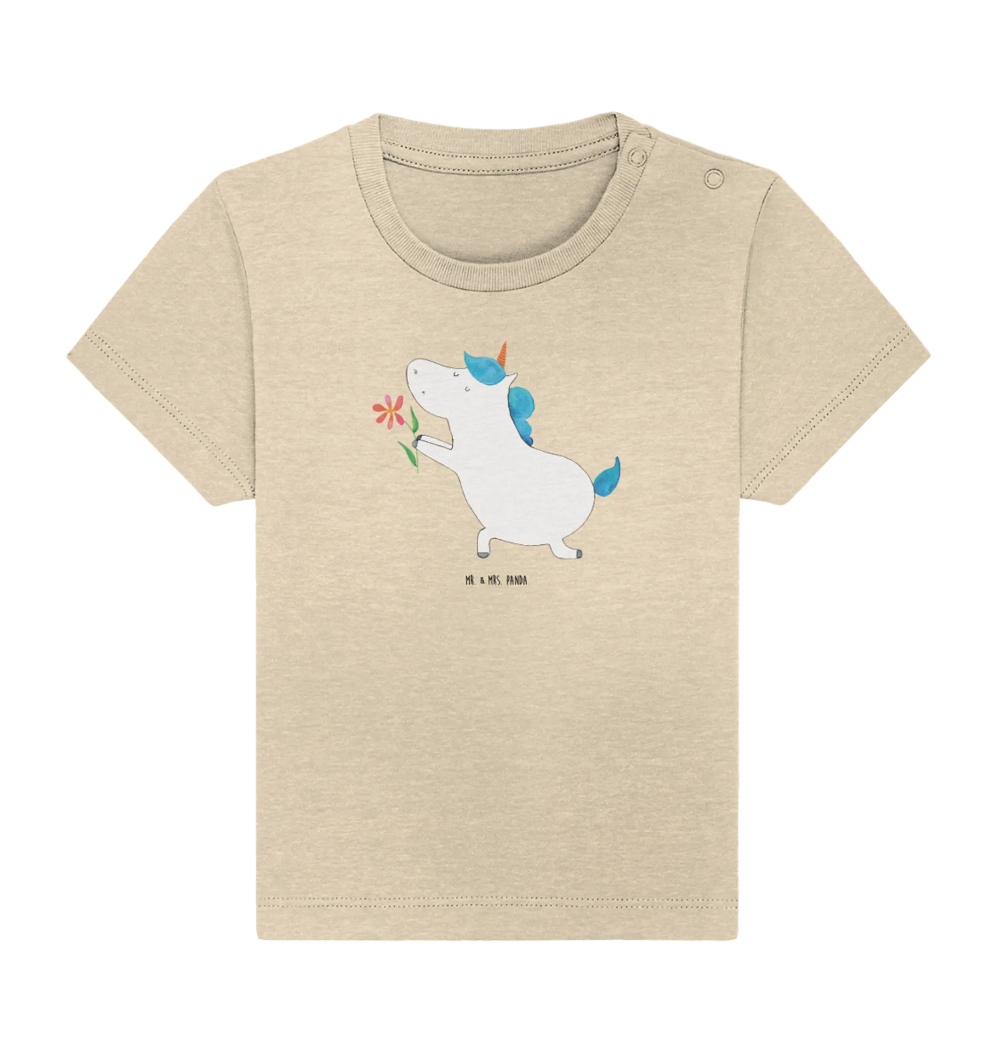 Entdecke das zauberhafte Organic Baby Shirt mit dem süßen Einhorn Blume Motiv aus der einzigartigen Einhorn - Kollektion von Mr. & Mrs. Panda. Dieses niedliche Shirt ist nicht nur ein echter Hingucker, sondern auch ein liebevolles Geschenk für die Kleinsten in deinem Leben.