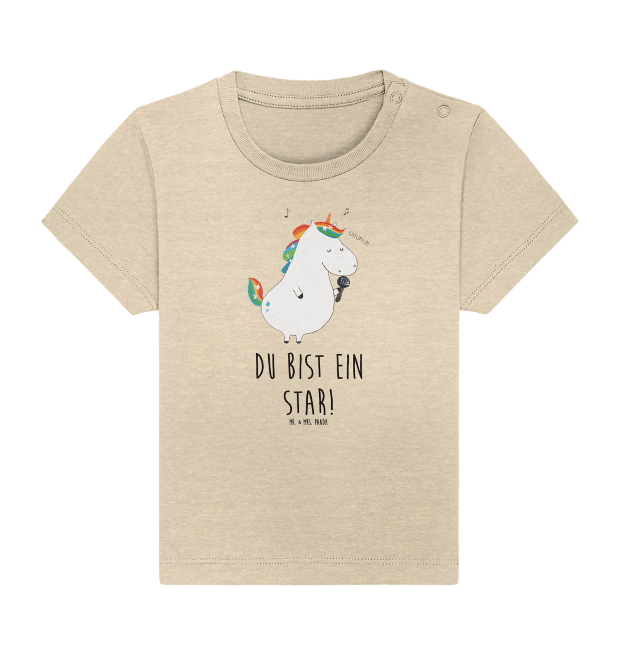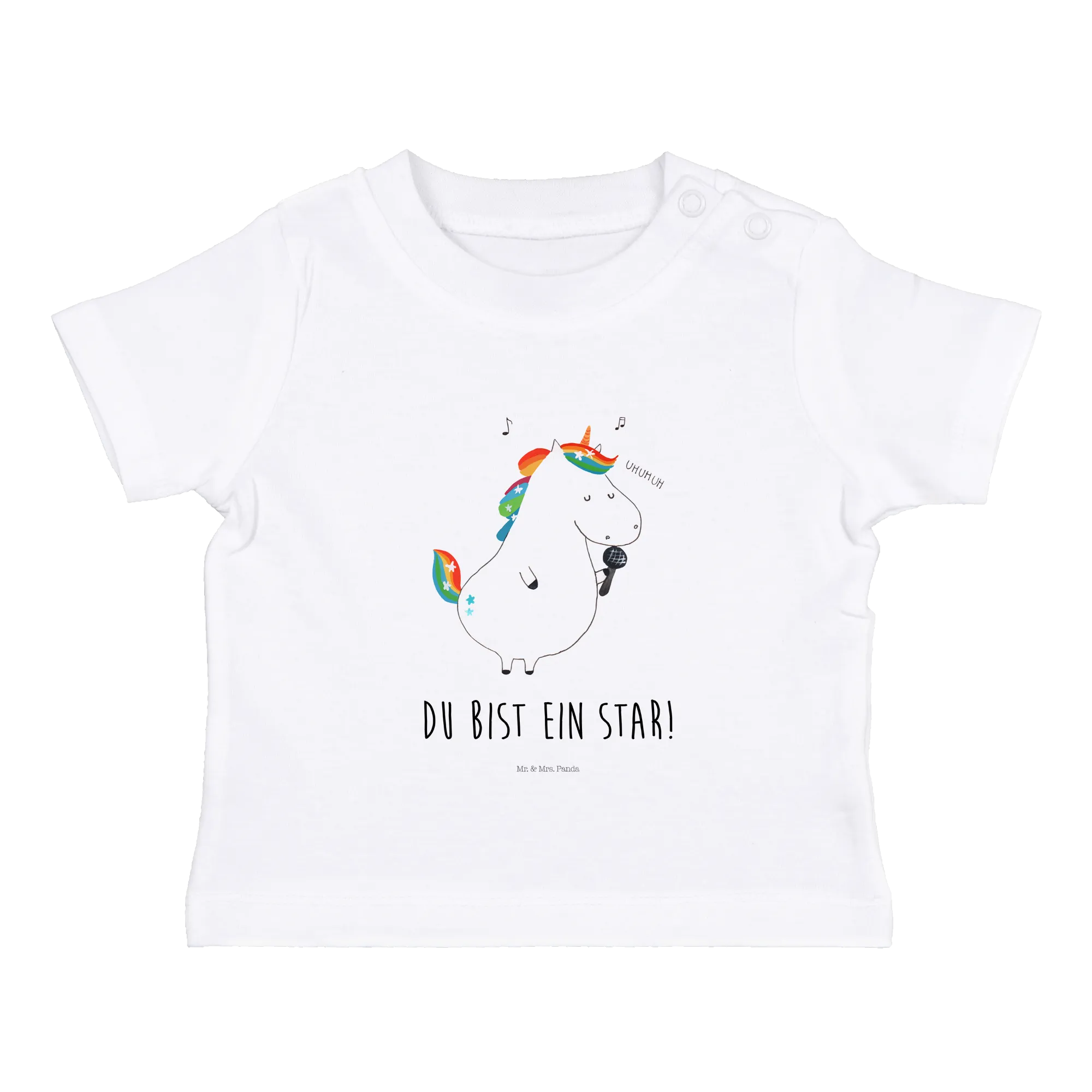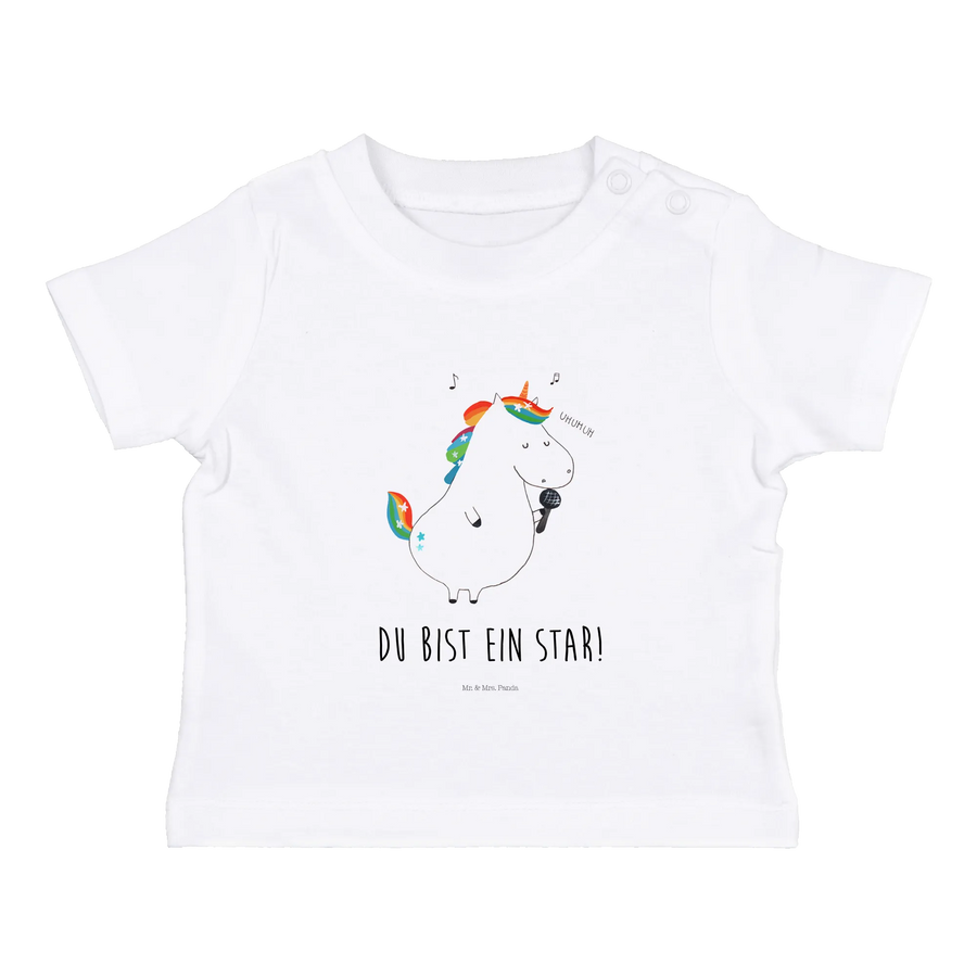 Organiczna koszulka dla niemowląt jednorożec Śpiewak - 6. - 12. miesiąc - z napisem - Biały