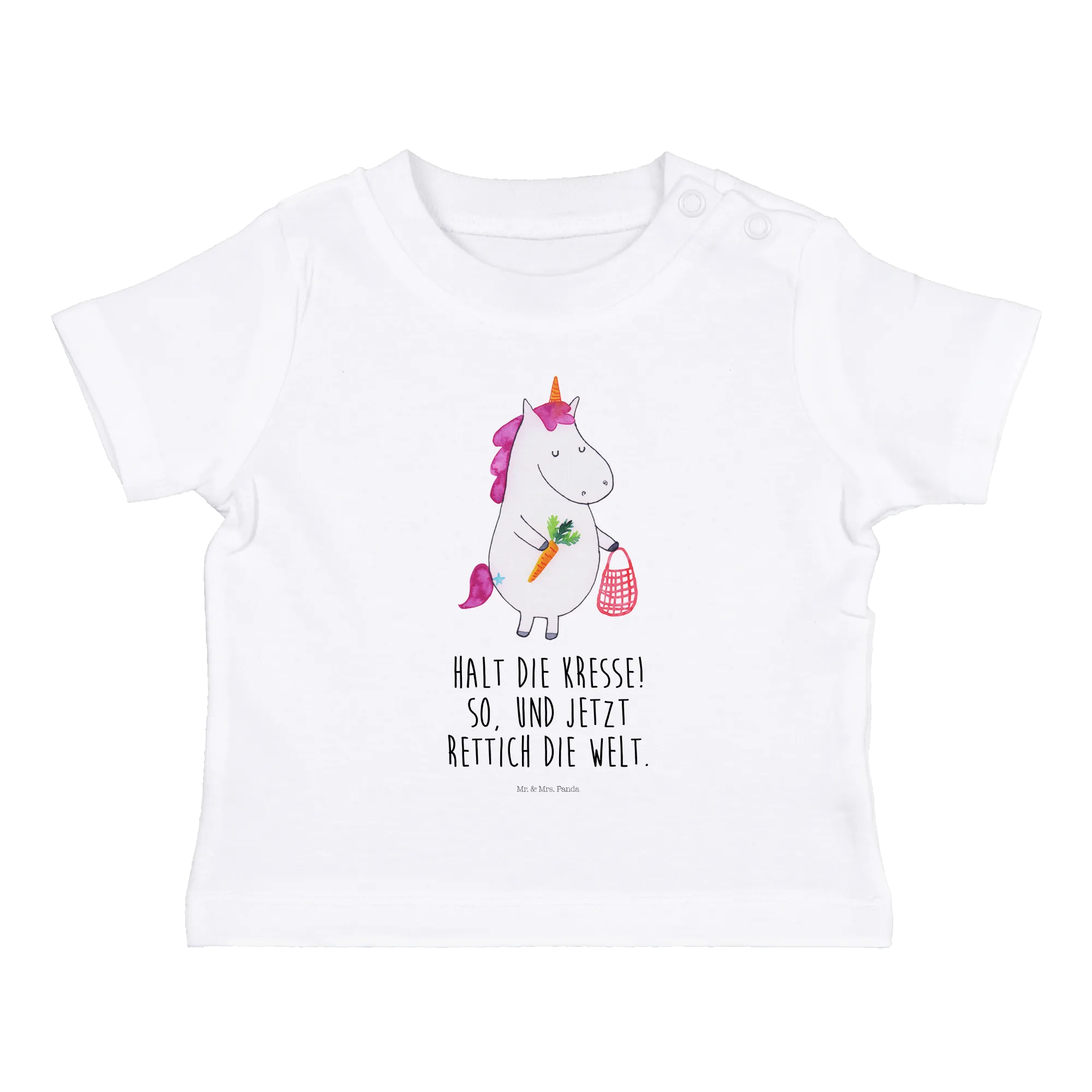 Organiczna koszulka dla niemowląt jednorożec warzywa - 6. - 12. miesiąc - z napisem - Biały