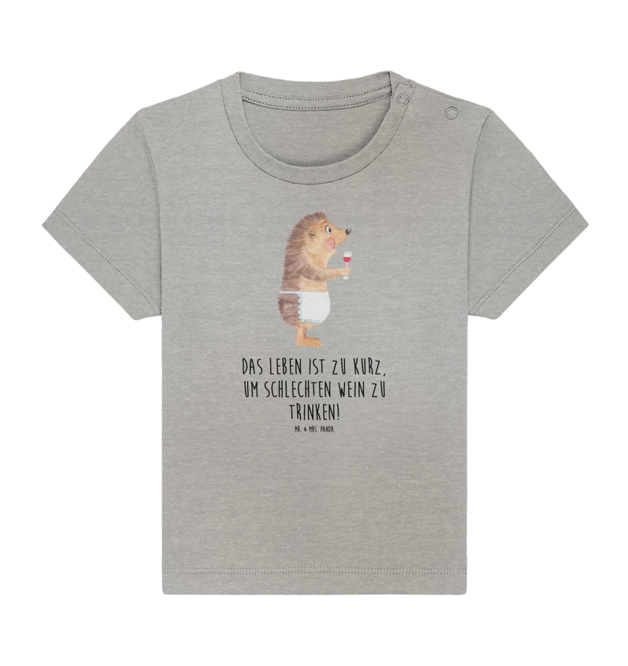 Organiczna koszulka dla niemowląt jeż wino - 6. - 12. miesiąc - z napisem - Biały