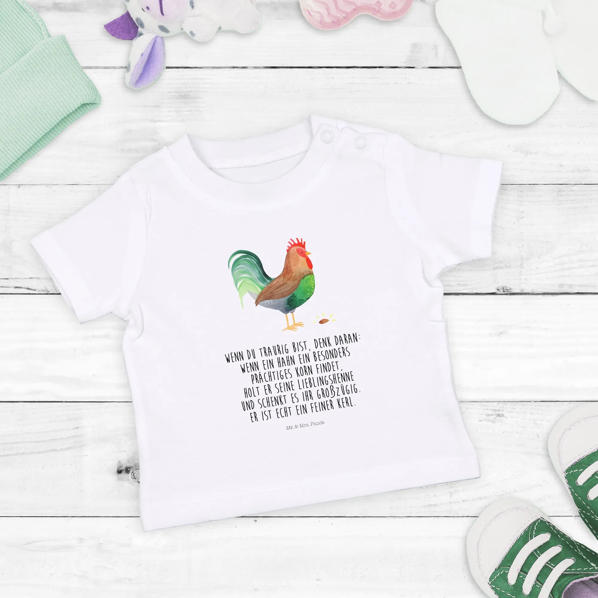 Organiczna koszulka dla niemowląt kogut ziarno - 6. - 12. Monat - z napisem