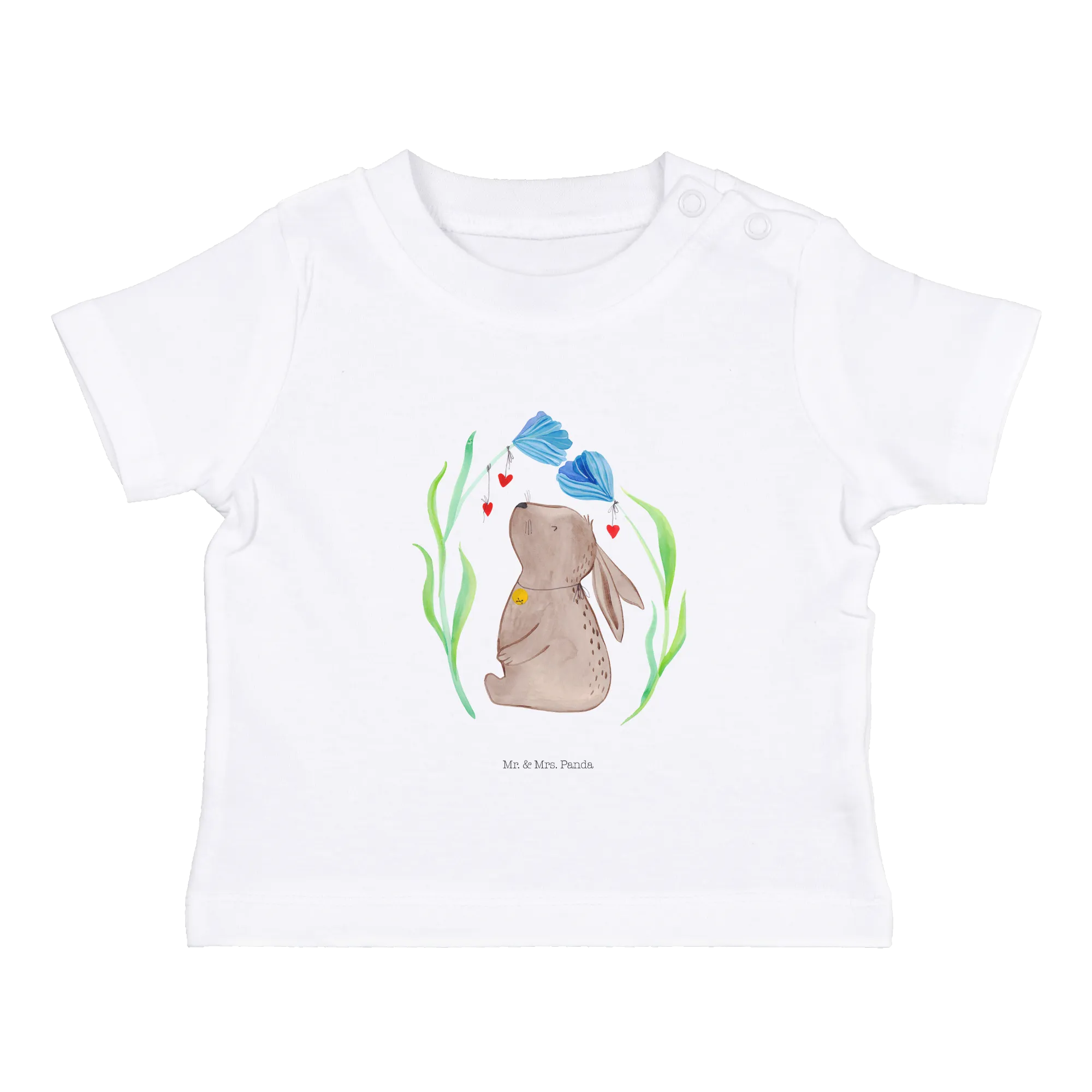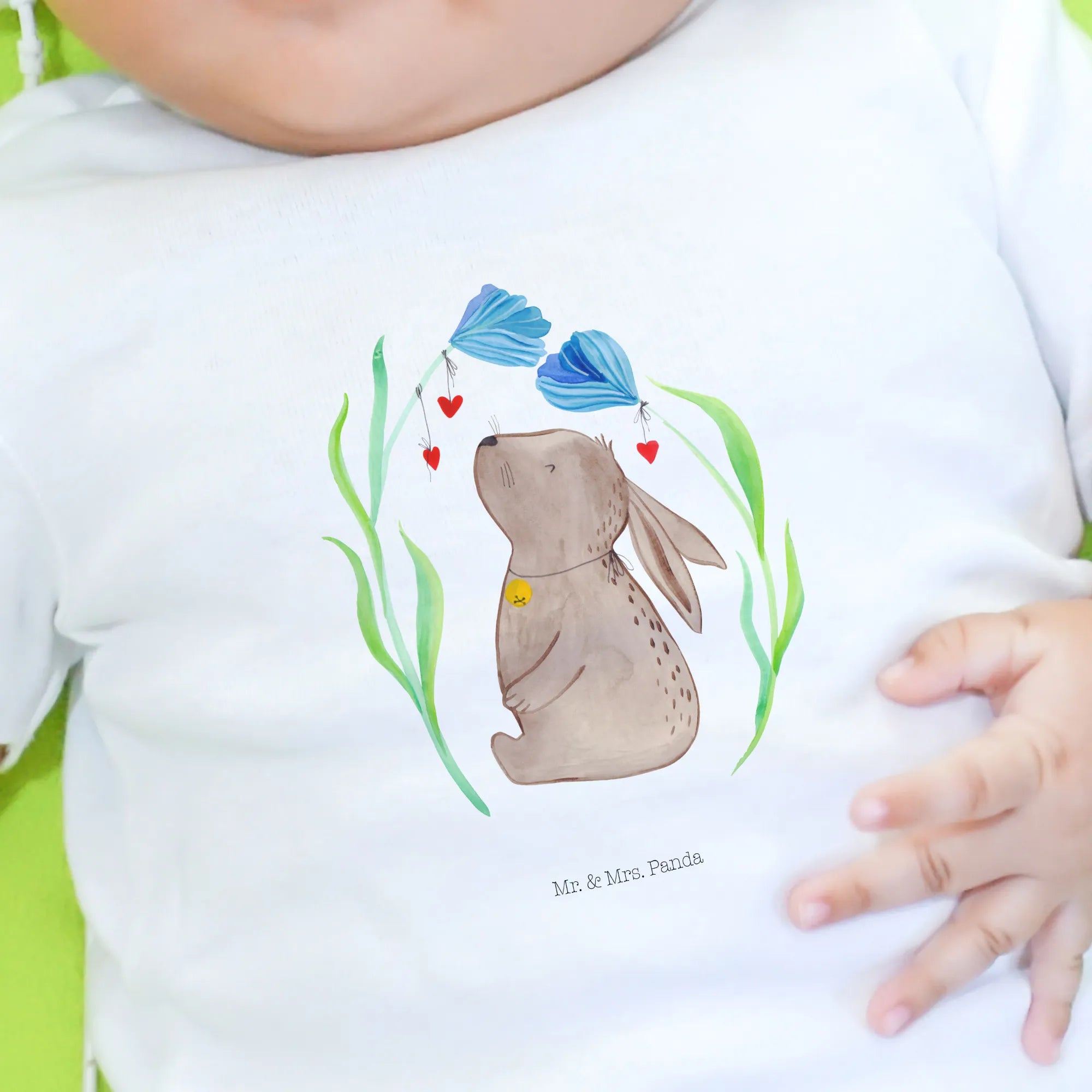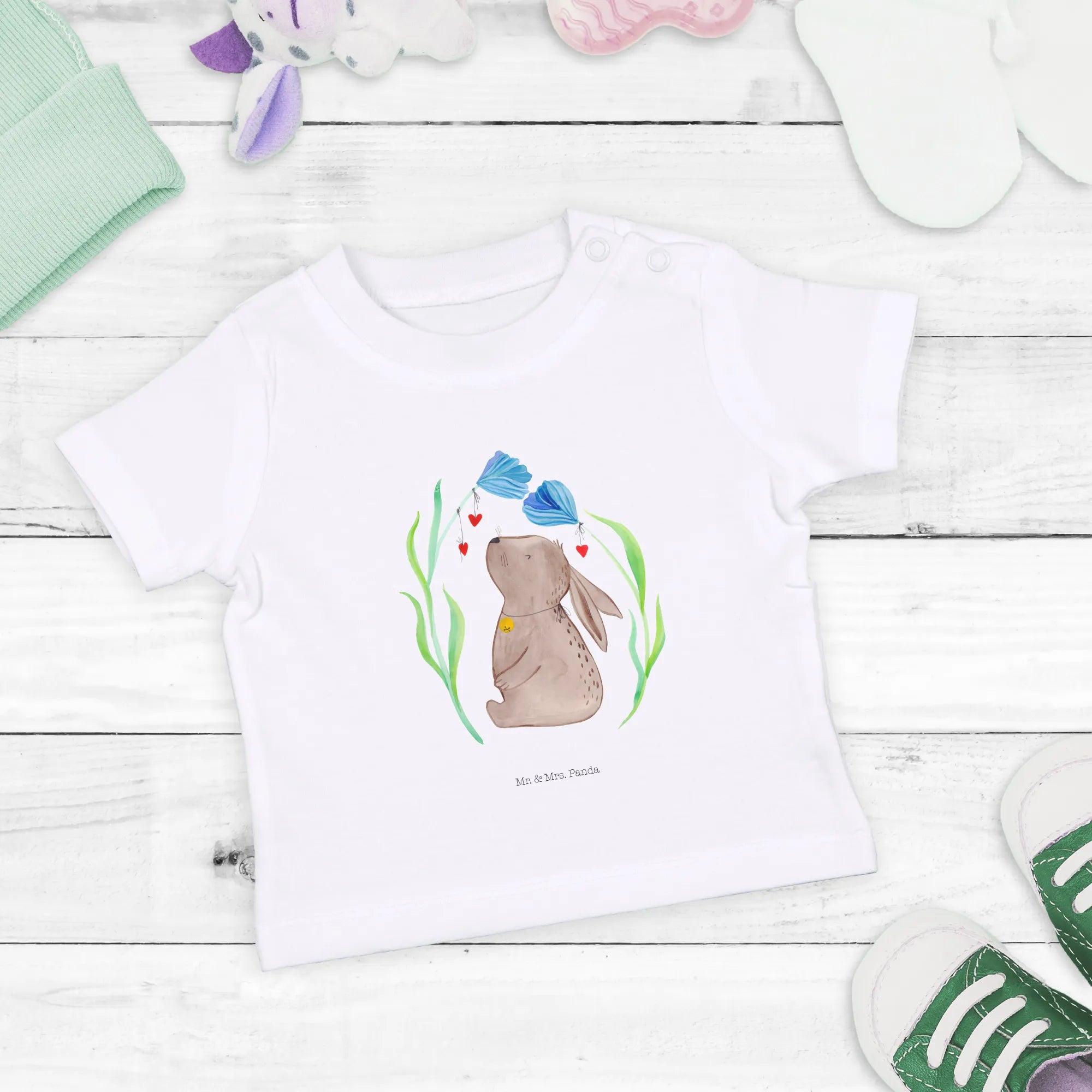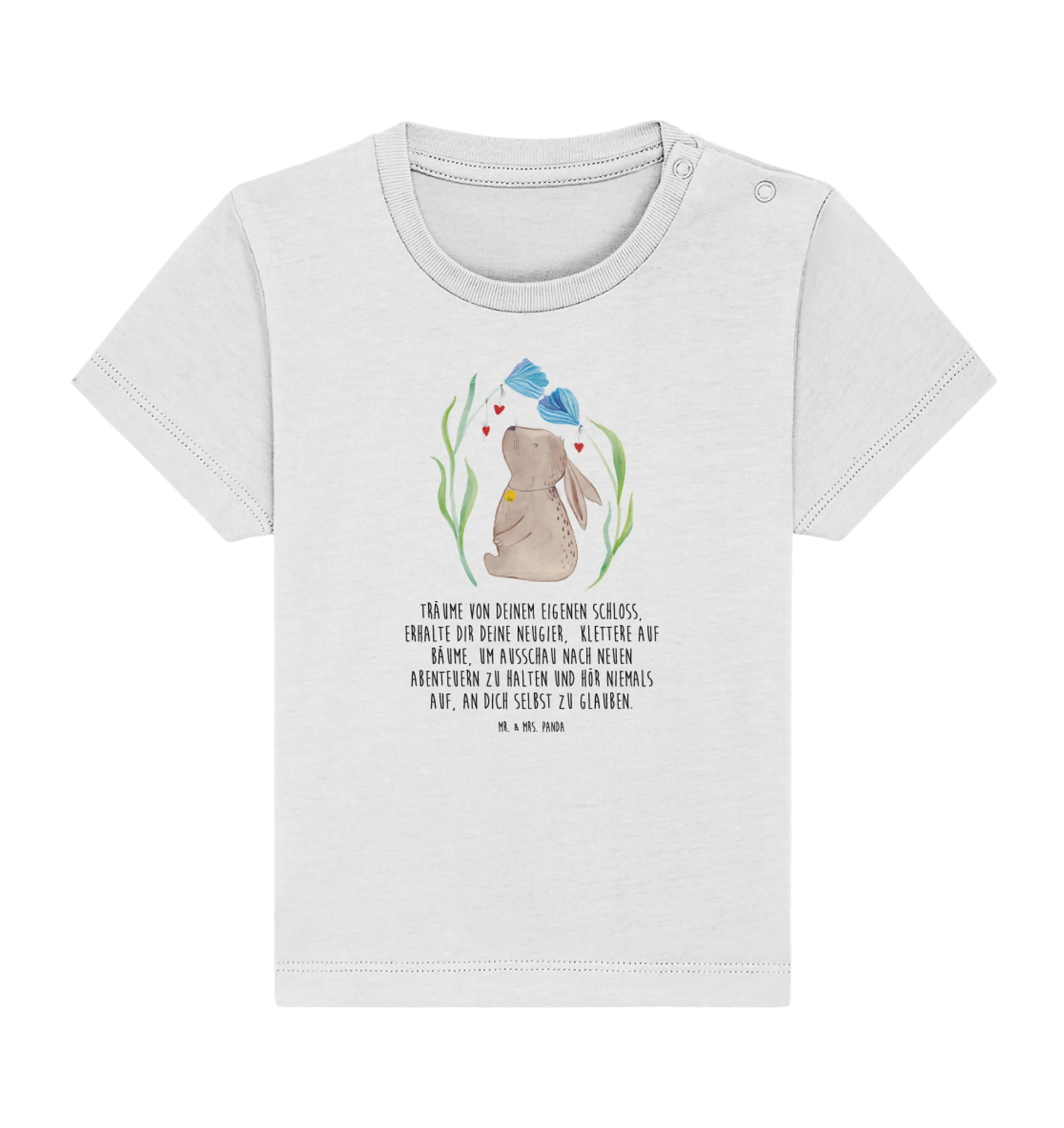 Organiczna koszulka dla niemowląt królik kwiat - 0. - 6. miesiąc - z napisem