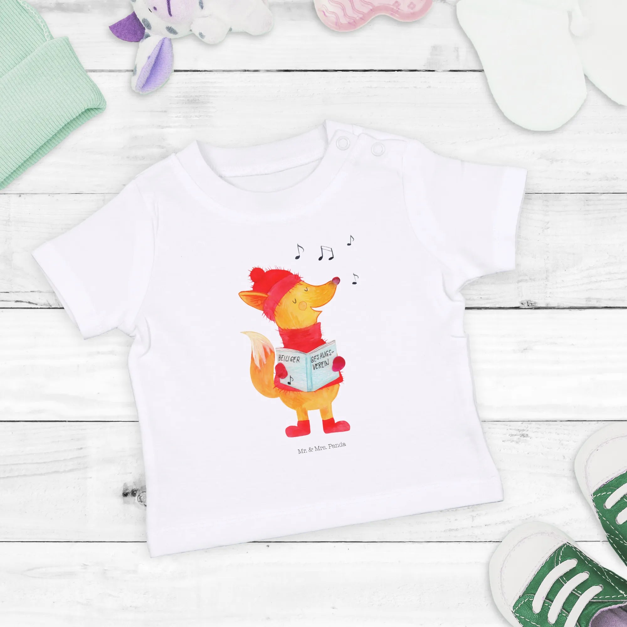 Organiczna koszulka dla niemowląt lis Śpiewak - 6. - 12. Monat - z napisem