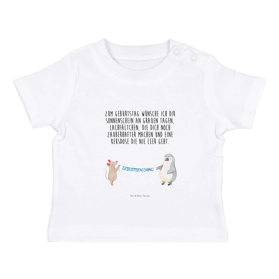 Organiczna koszulka dla niemowląt Mysz Pingwin urodziny - 6. - 12. Monat - z napisem