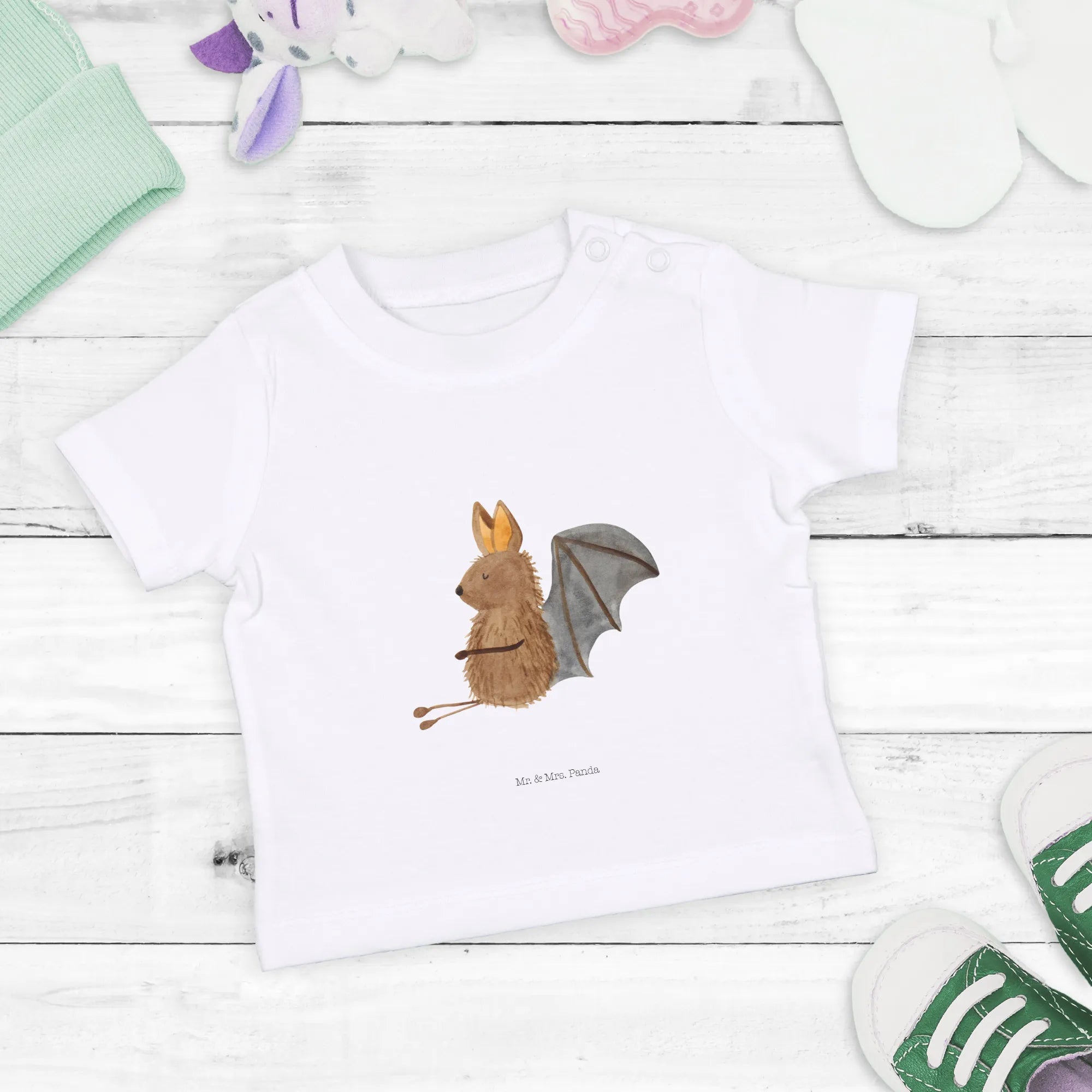 Organiczna koszulka dla niemowląt Nietoperz siedzenie - 0. - 6. miesiąc - z napisem - Biały