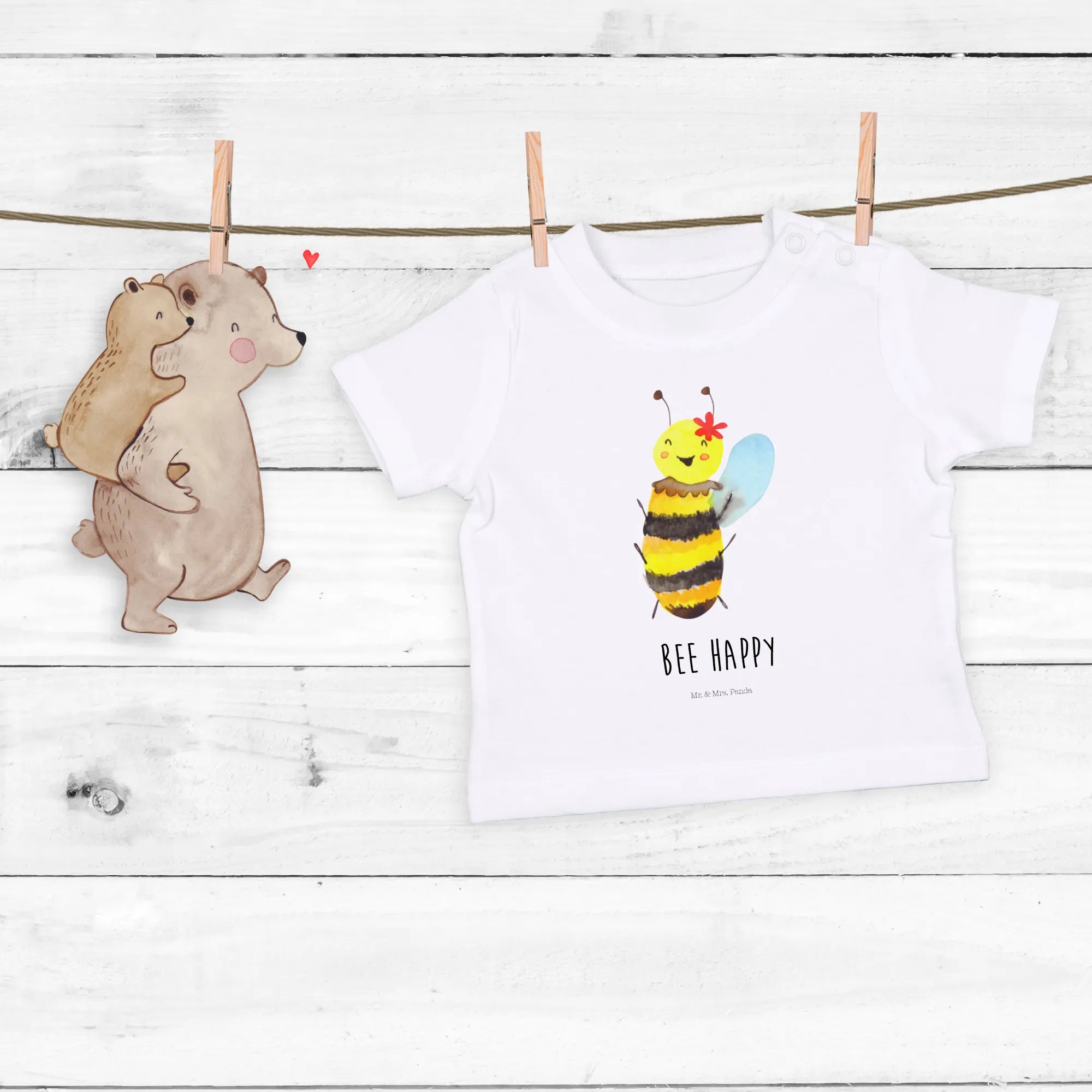 Organiczna koszulka dla niemowląt pszczoła Szczęśliwy - 6. - 12. Monat - z napisem