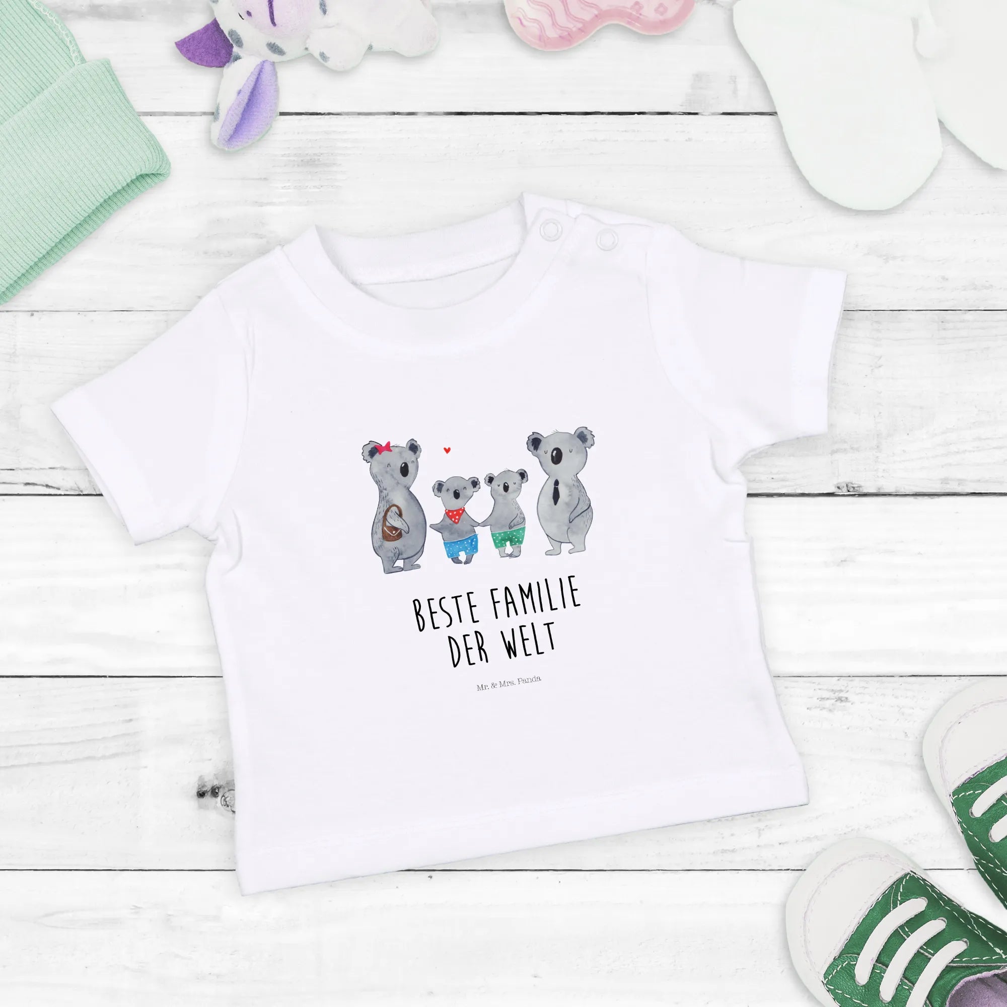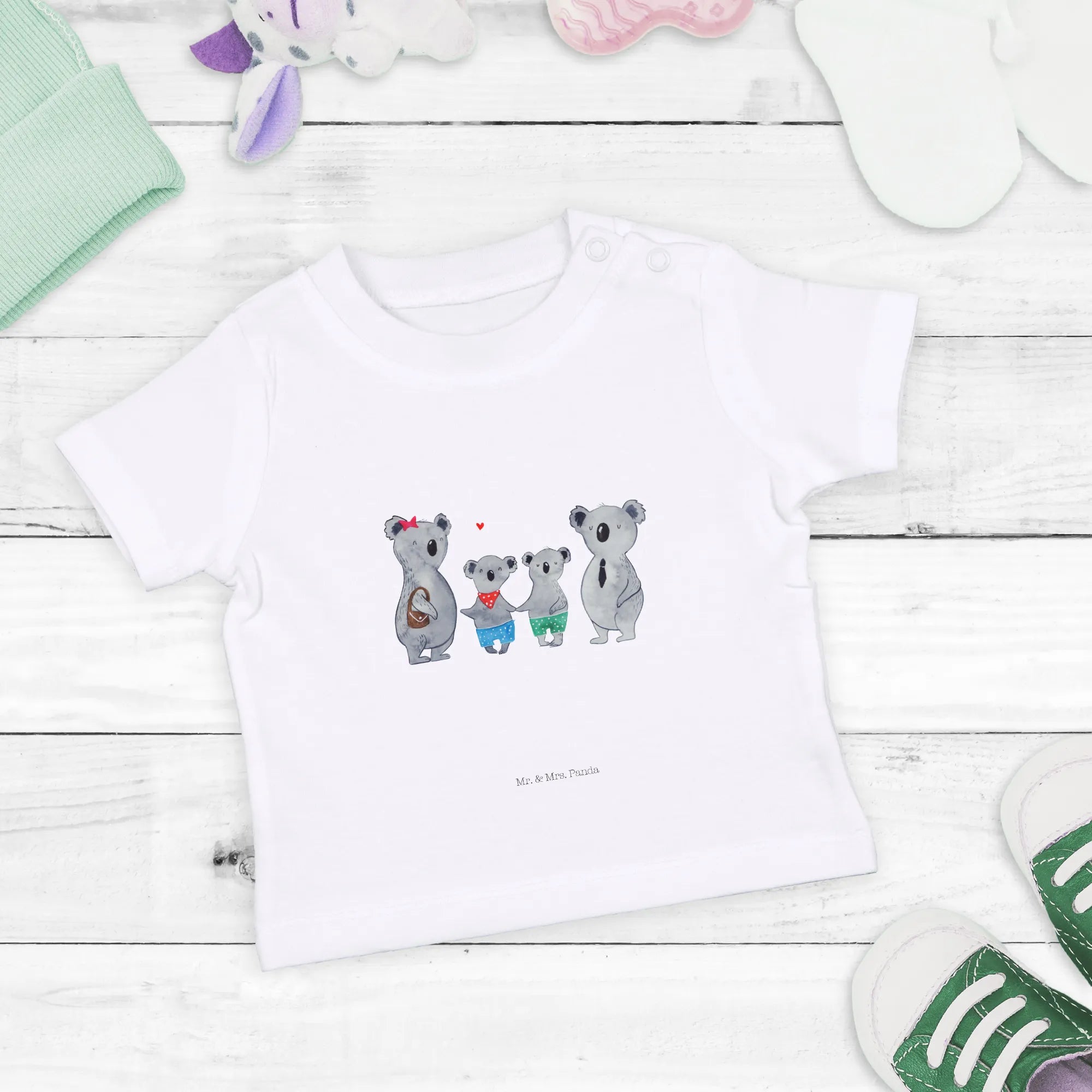 Organiczna koszulka dla niemowląt Rodzina koali dwa - 0. - 6. miesiąc - z napisem