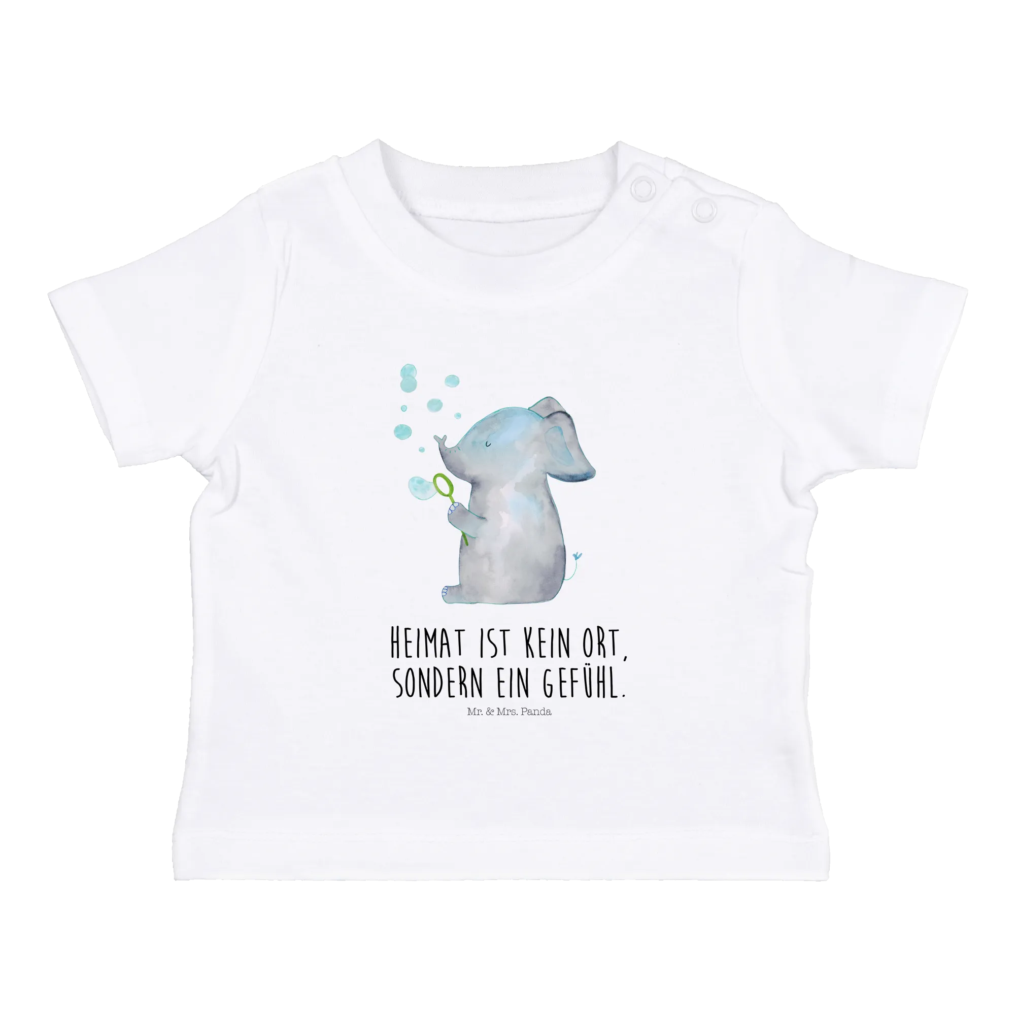 Organiczna koszulka dla niemowląt słoń bańki mydlane - 0. - 6. Monat - z napisem - biały