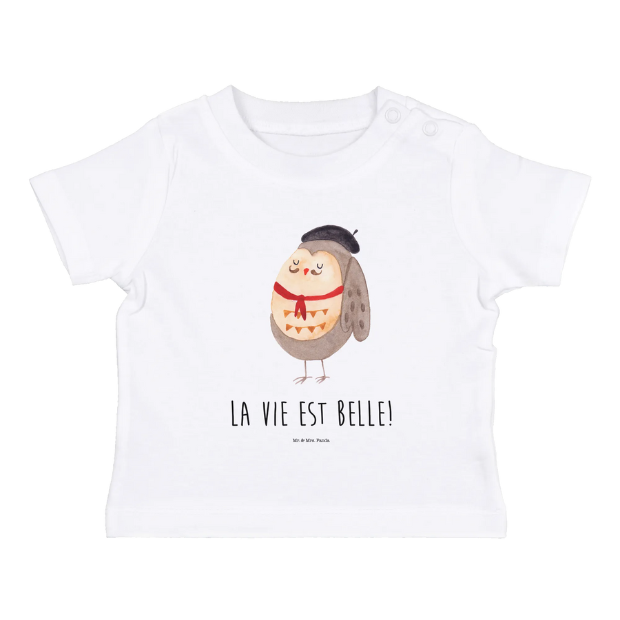 Organiczna koszulka dla niemowląt sowa Francja - 6. - 12. miesiąc - z napisem