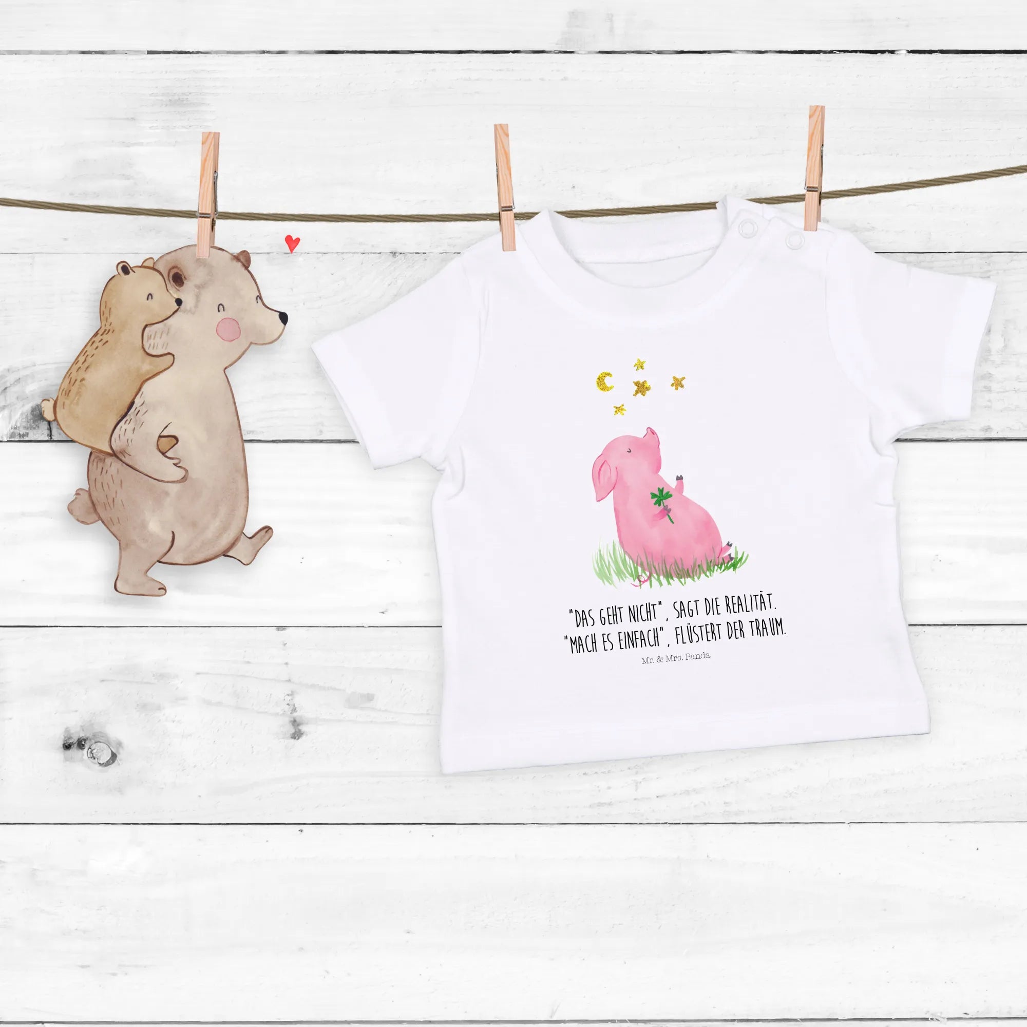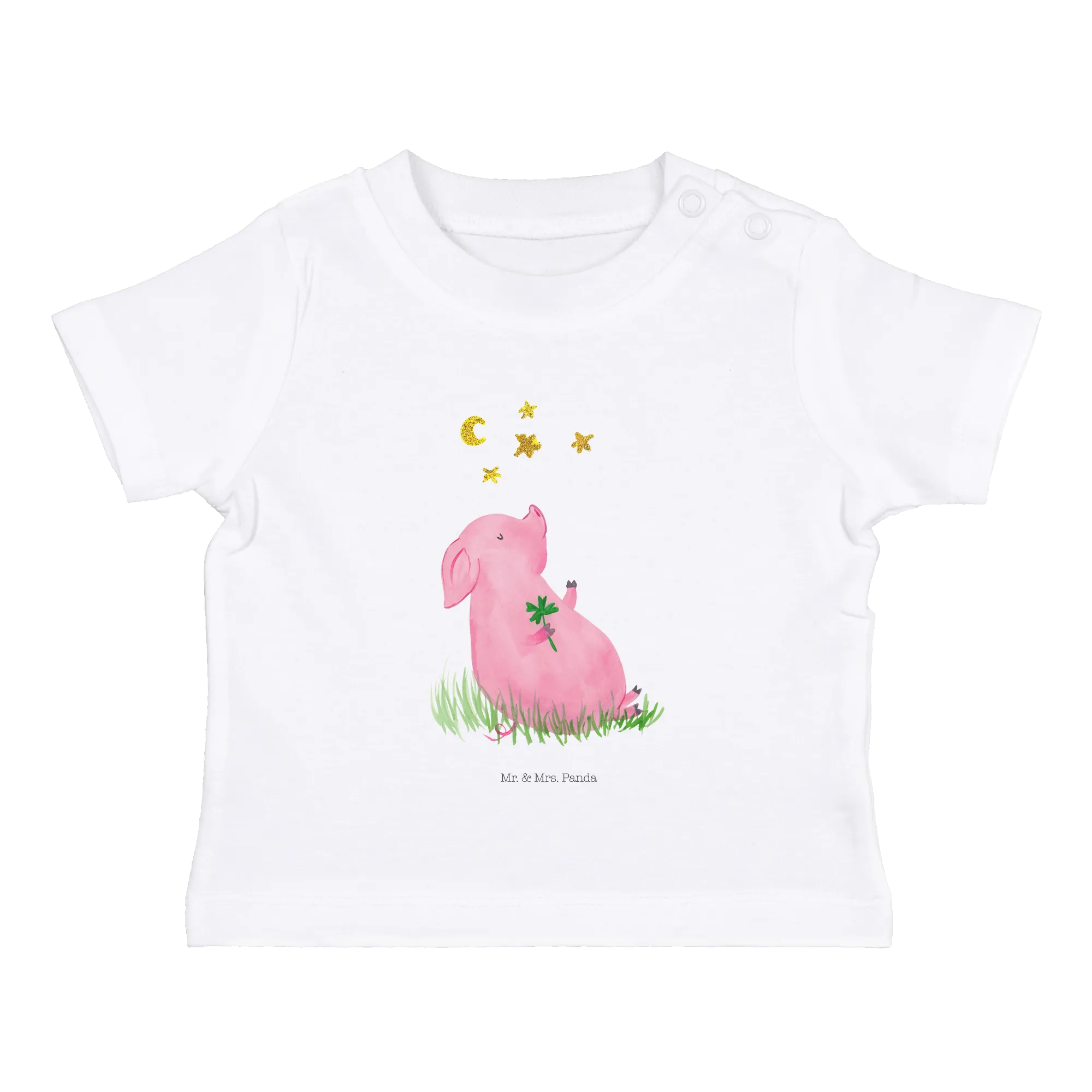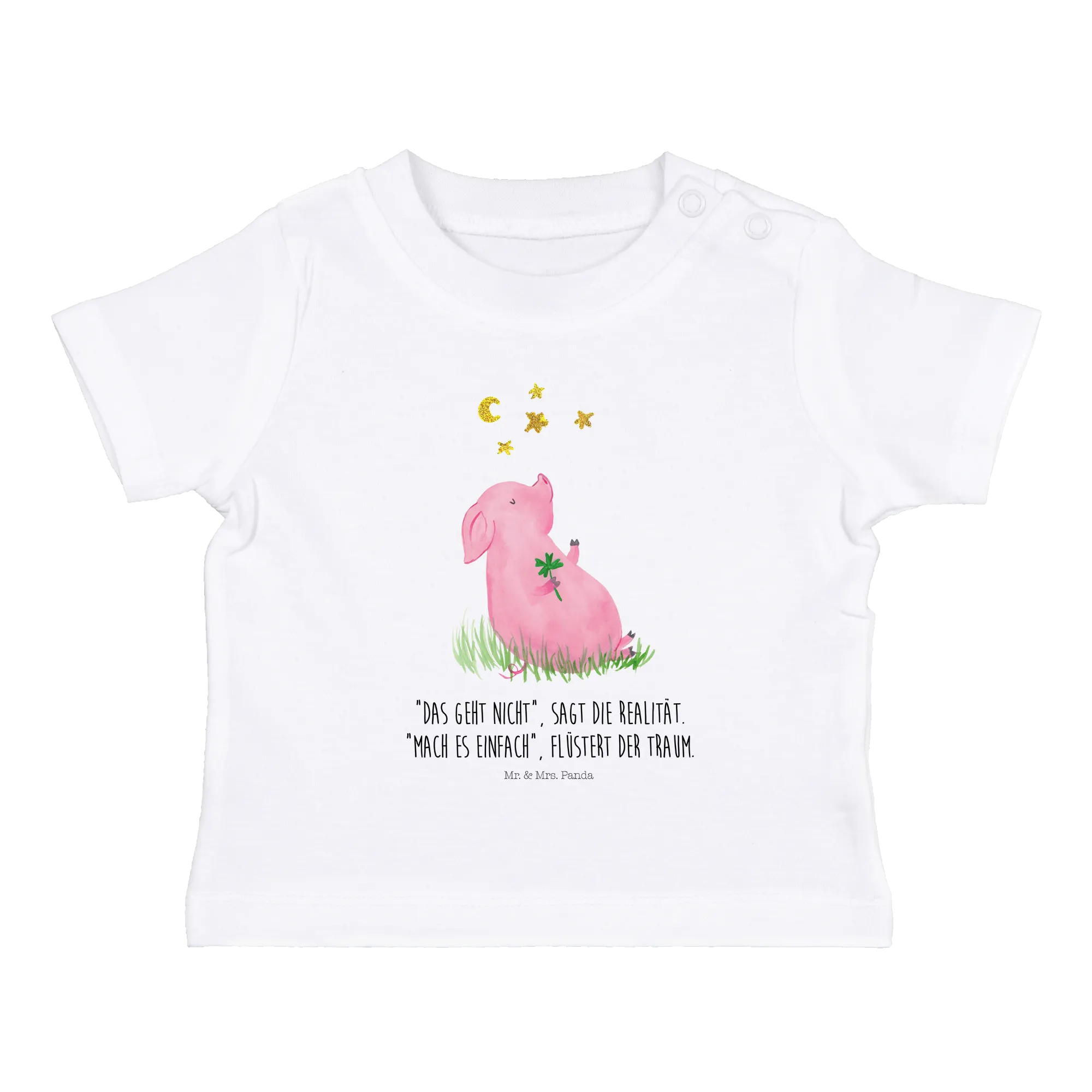 Organiczna koszulka dla niemowląt świnia Szczęście - 0. - 6. miesiąc - z napisem - biały