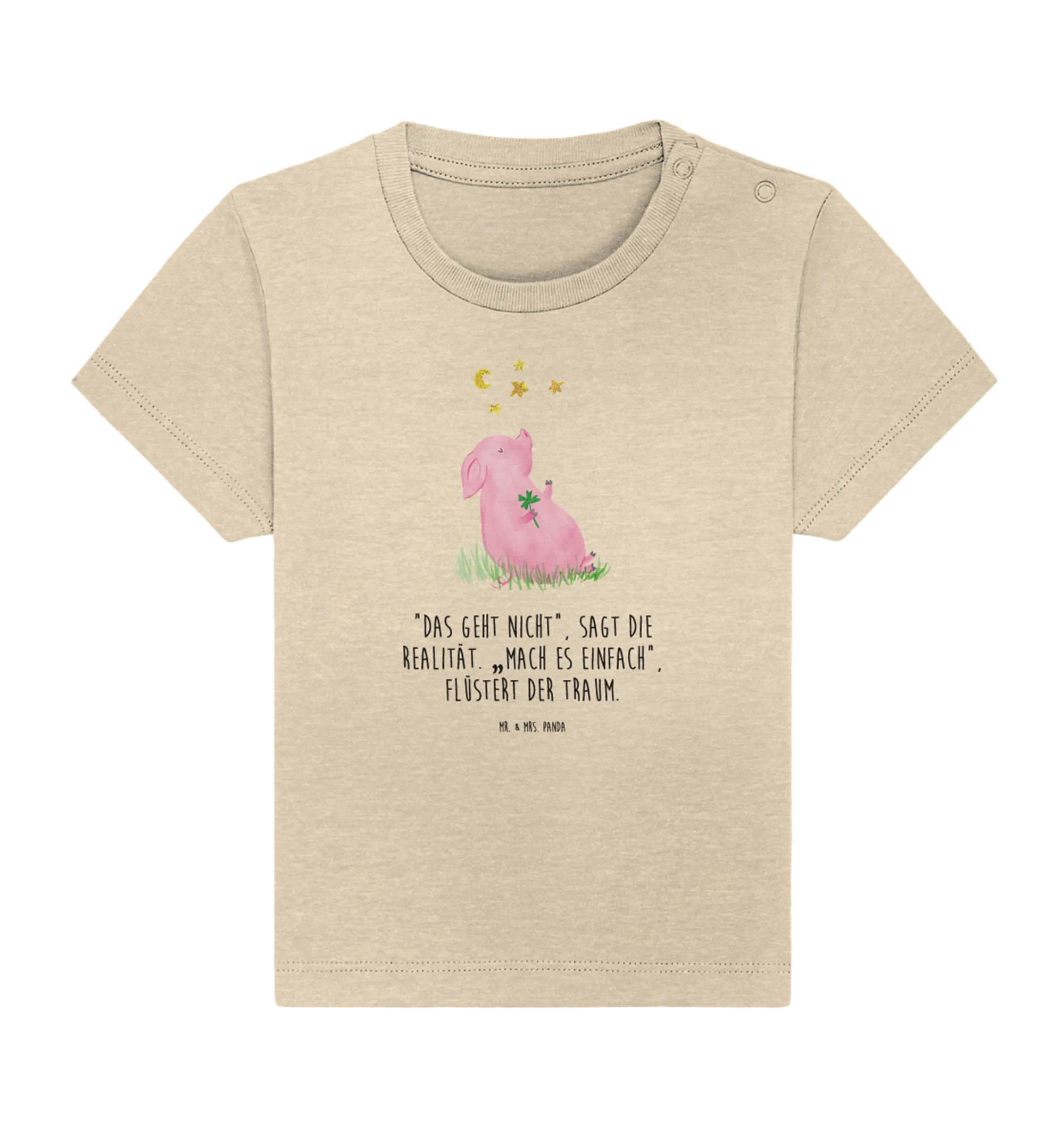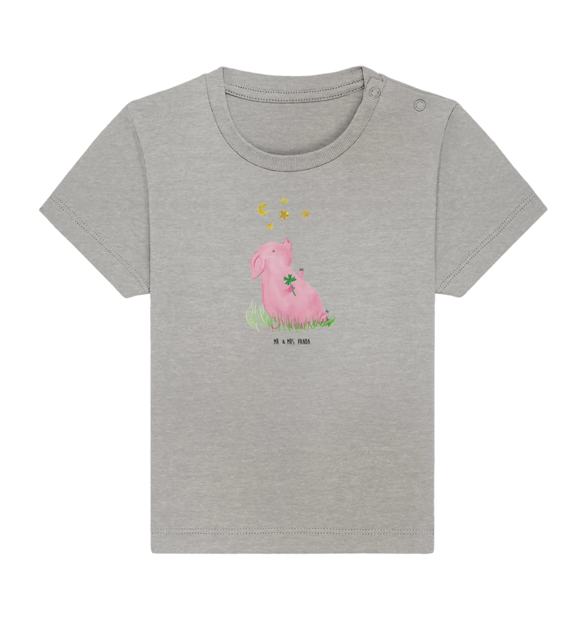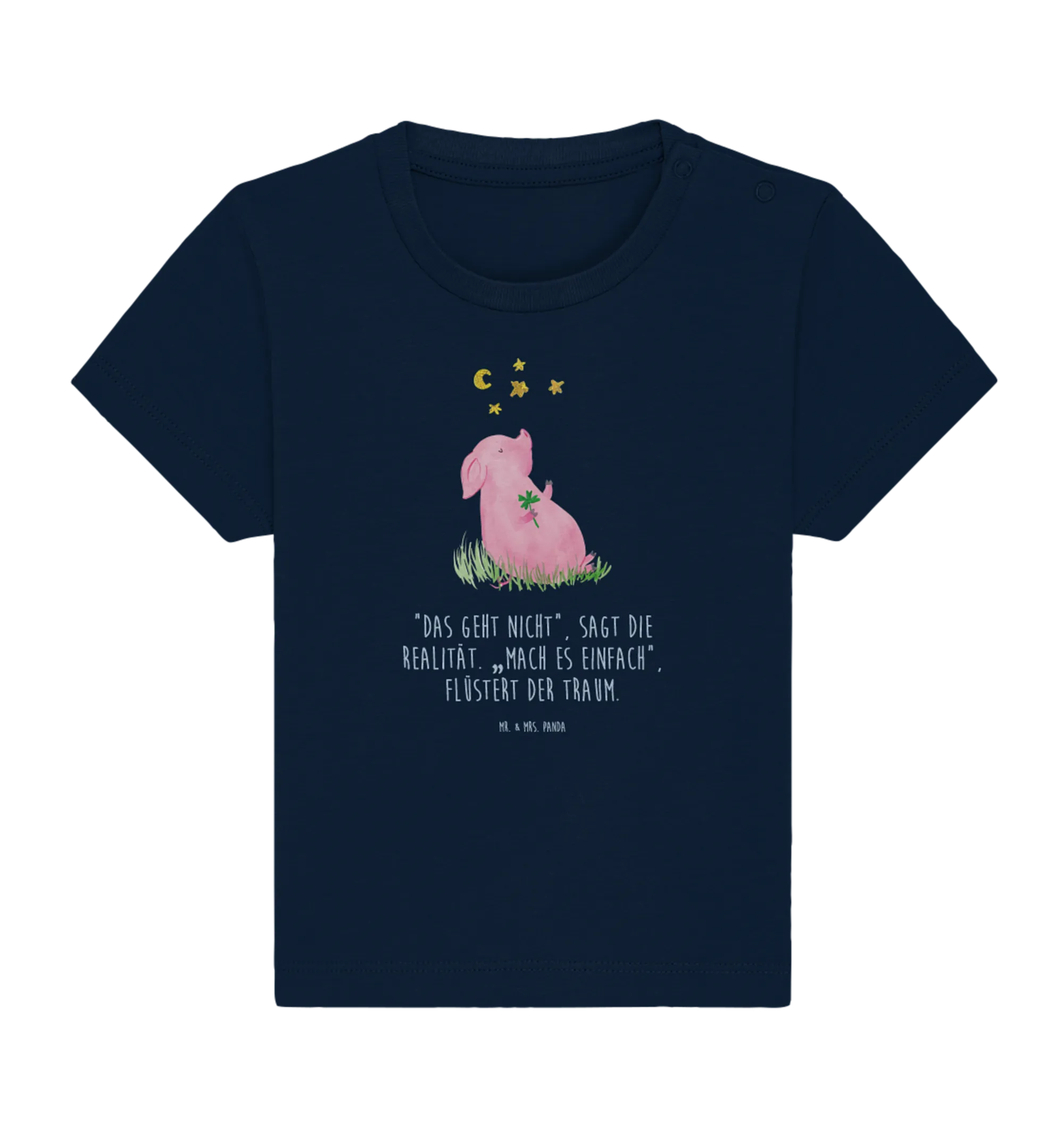 Organiczna koszulka dla niemowląt świnia Szczęście - 0. - 6. miesiąc - z napisem - biały