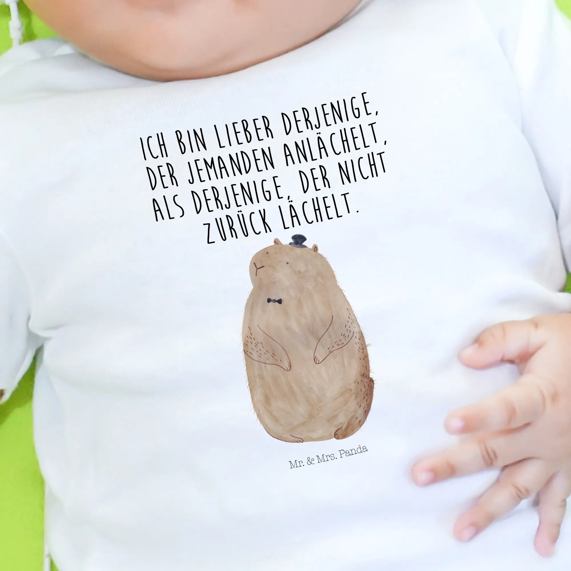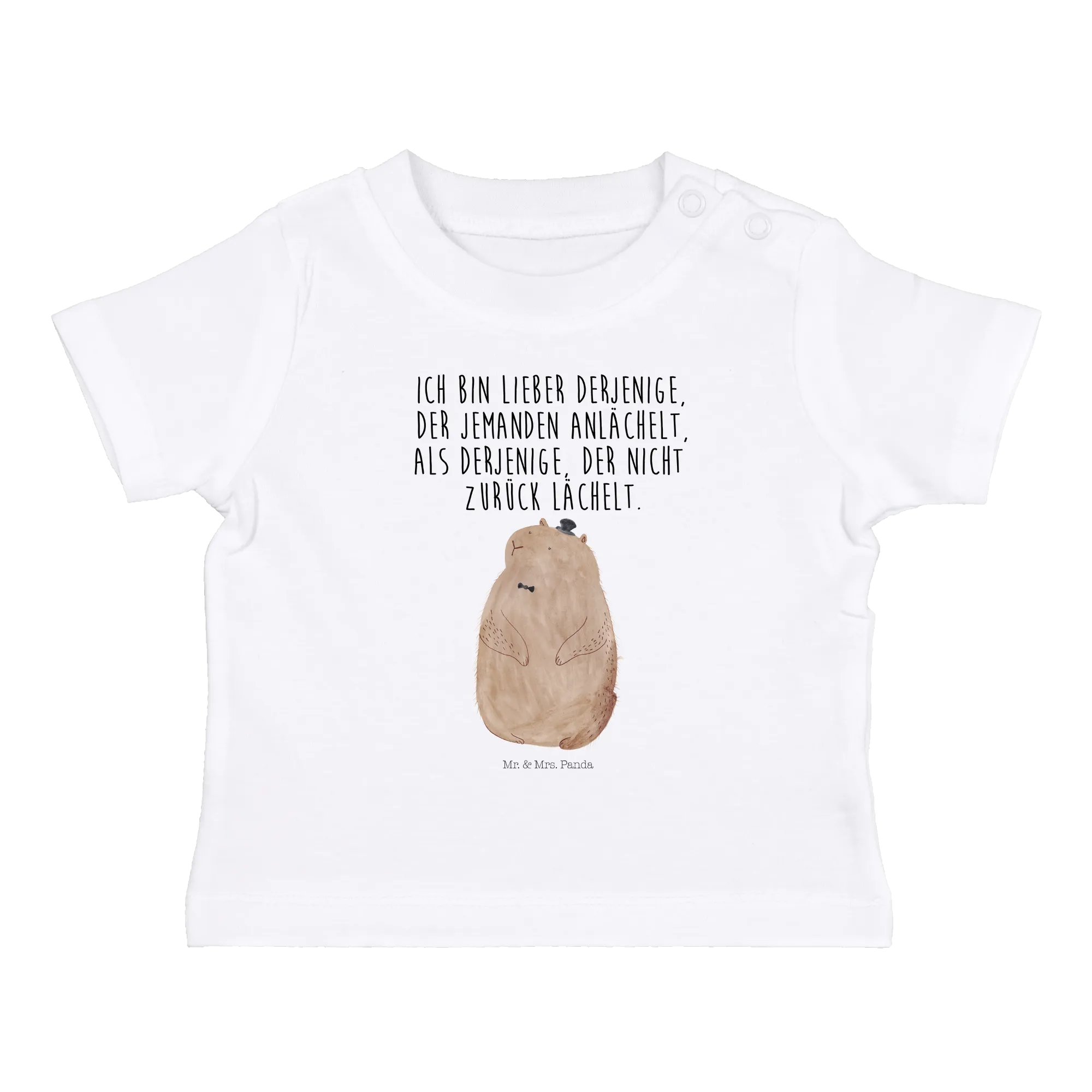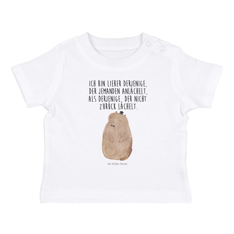 Organiczna koszulka dla niemowląt Świstak - 0. - 6. miesiąc - z napisem - Biały