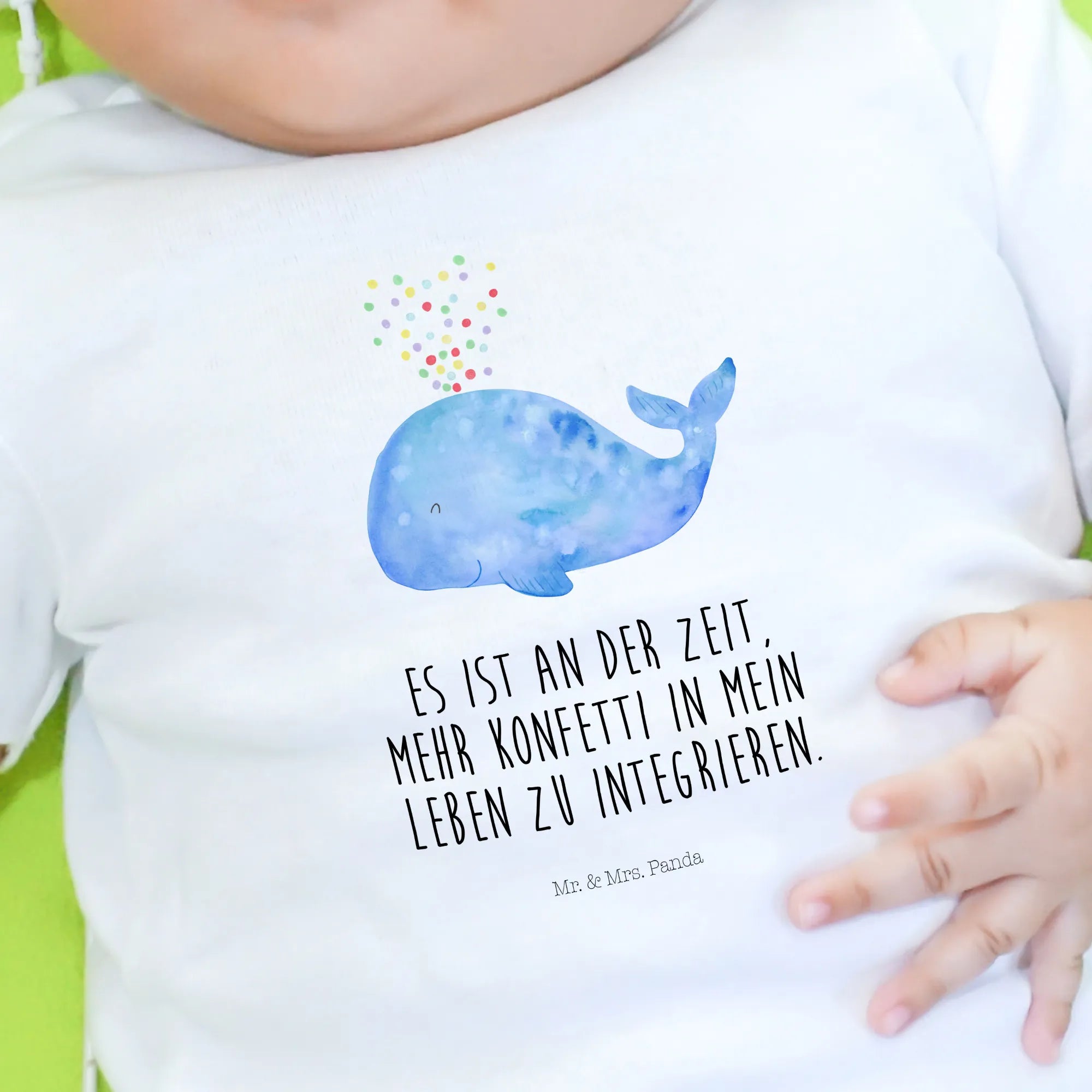 Organiczna koszulka dla niemowląt wieloryb konfetti - 0. - 6. miesiąc - z napisem