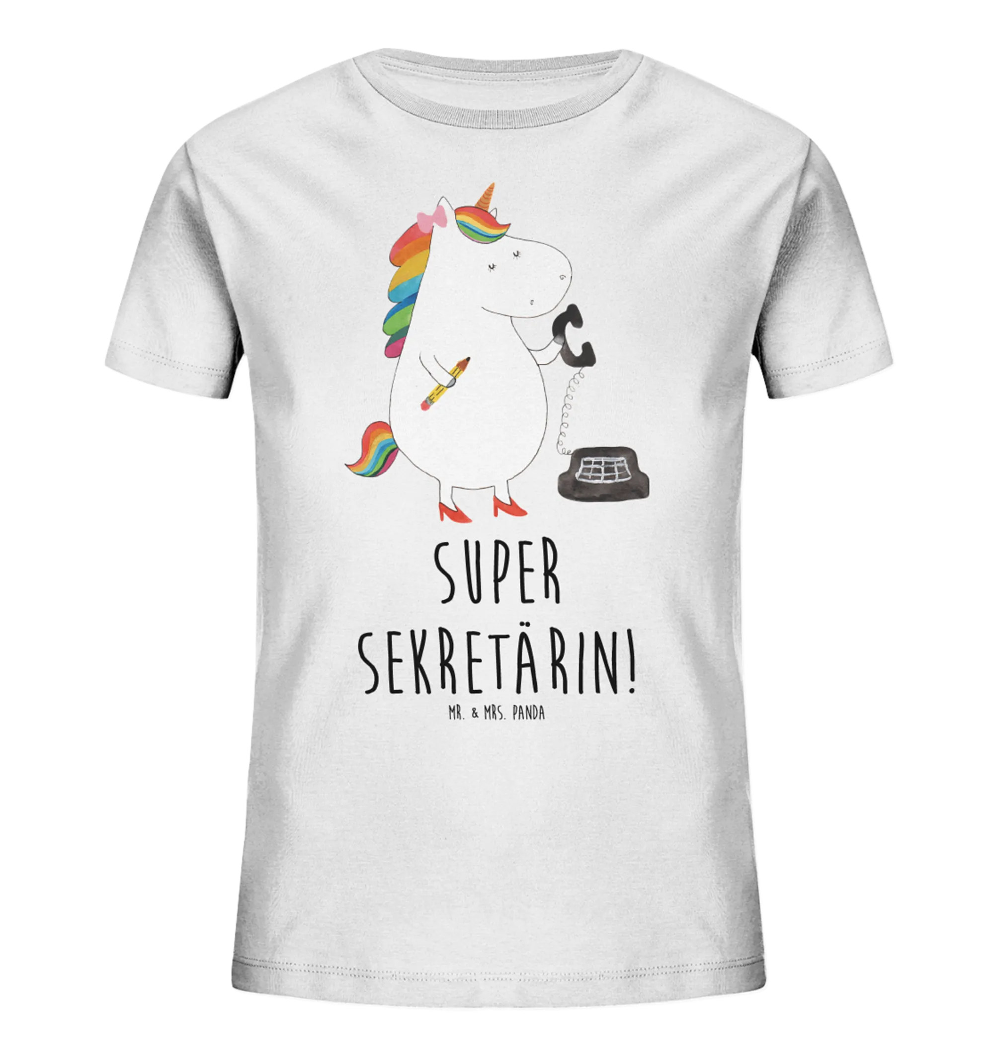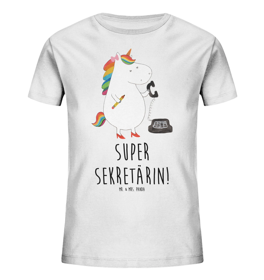 Entdecke das zauberhafte Organic Kinder T-Shirt mit dem Motiv Einhorn Sekretärin aus unserer liebevollen Einhorn - Kollektion!