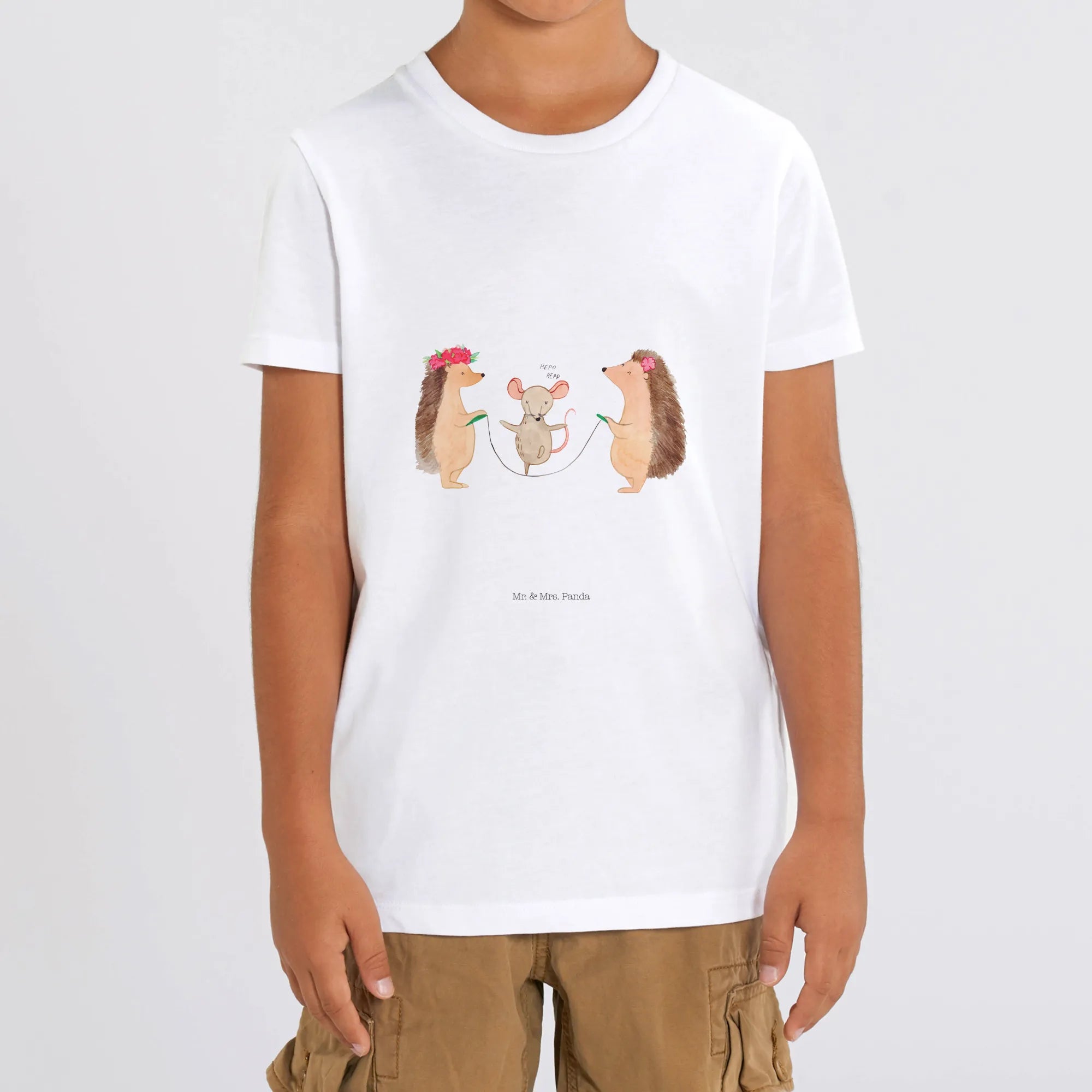 Organiczna koszulka dziecięca jeż Skakanie na skakance - 12-14 lat (152/164) - z napisem - biały