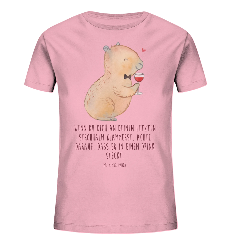 Das wunderschöne Organic Kinder T-Shirt mit dem lustigen Capybara Wein Motiv aus der beliebten Small World Kollektion von Mr. & Mrs. Panda ist der perfekte Begleiter für kleine Weinliebhaber und Tierfreunde!