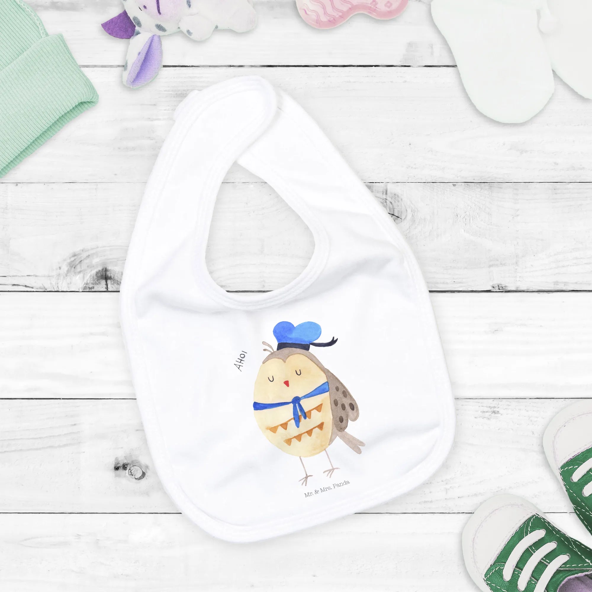 Entdecke das entzückende Organic Babylätzchen mit dem zauberhaften Eule Matrosen Motiv von Mr. & Mrs. Panda! Dieses Lätzchen ist nicht nur ein praktischer Begleiter während der Mahlzeiten, sondern auch ein stylish ausgefallenes Accessoire für jedes Baby-Outfit. Mit einem schützenden Lätzchen bleibt die Kleidung deines kleinen Seefahrers vor Flecken und Sabber geschützt. Hergestellt aus hochwertiger, Öko-Baumwolle ist es sanft zur Haut deines Babys und perfekt für jeden Tag.