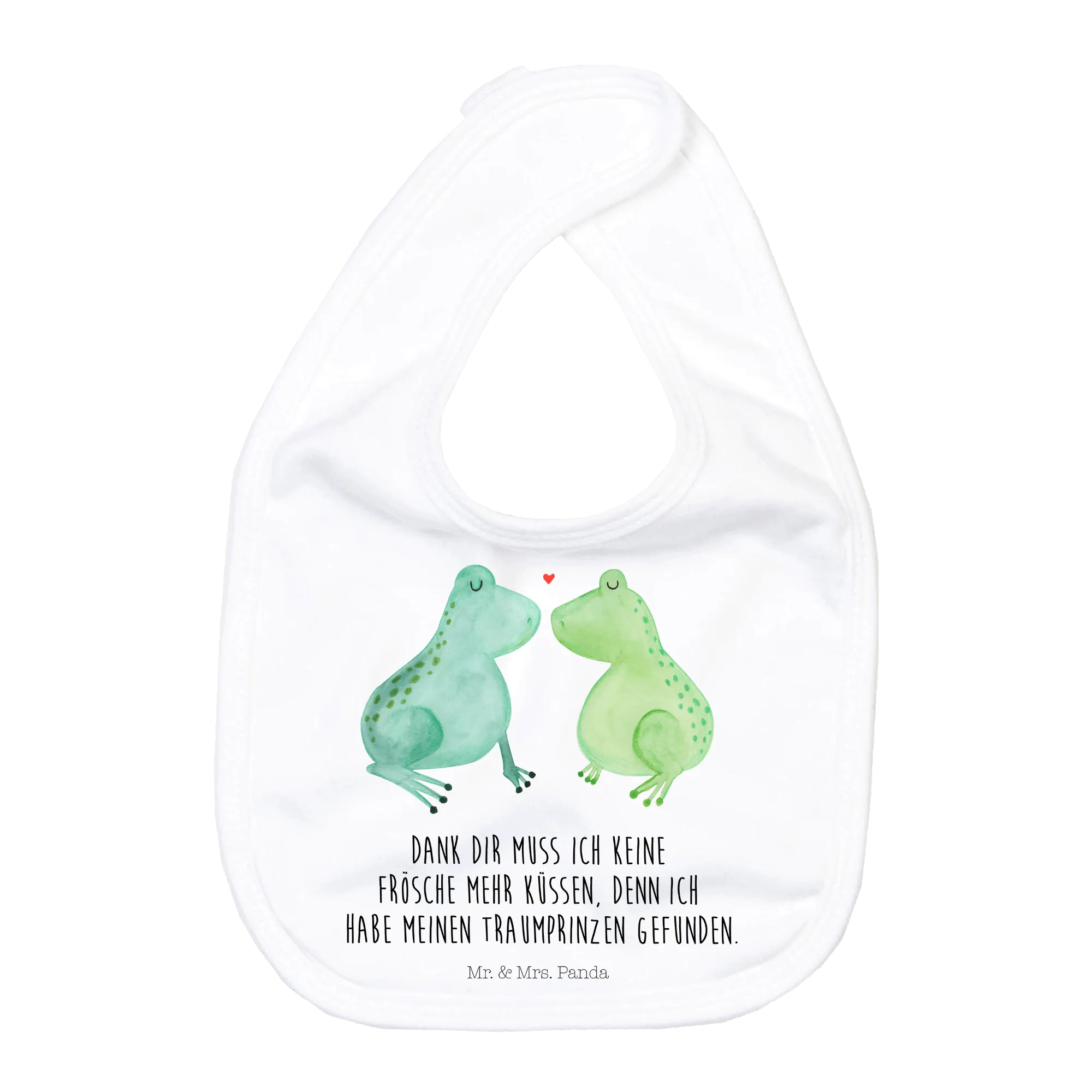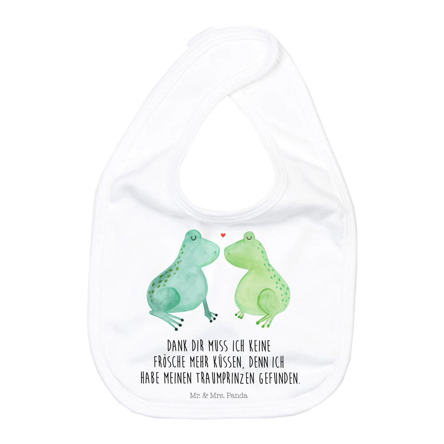Unser liebevoll gestaltetes Babylätzchen aus der Liebe-Kollektion verbindet niedliches Design mit praktischer Alltagstauglichkeit. Zwei verliebte Frösche und der zärtliche Spruch „Dank dir muss ich keine Frösche mehr Küssen, denn ich habe meinen Traumprinzen gefunden.“ machen dieses Lätzchen zu einem ganz besonderen Geschenk zur Geburt oder zur Babyshower.