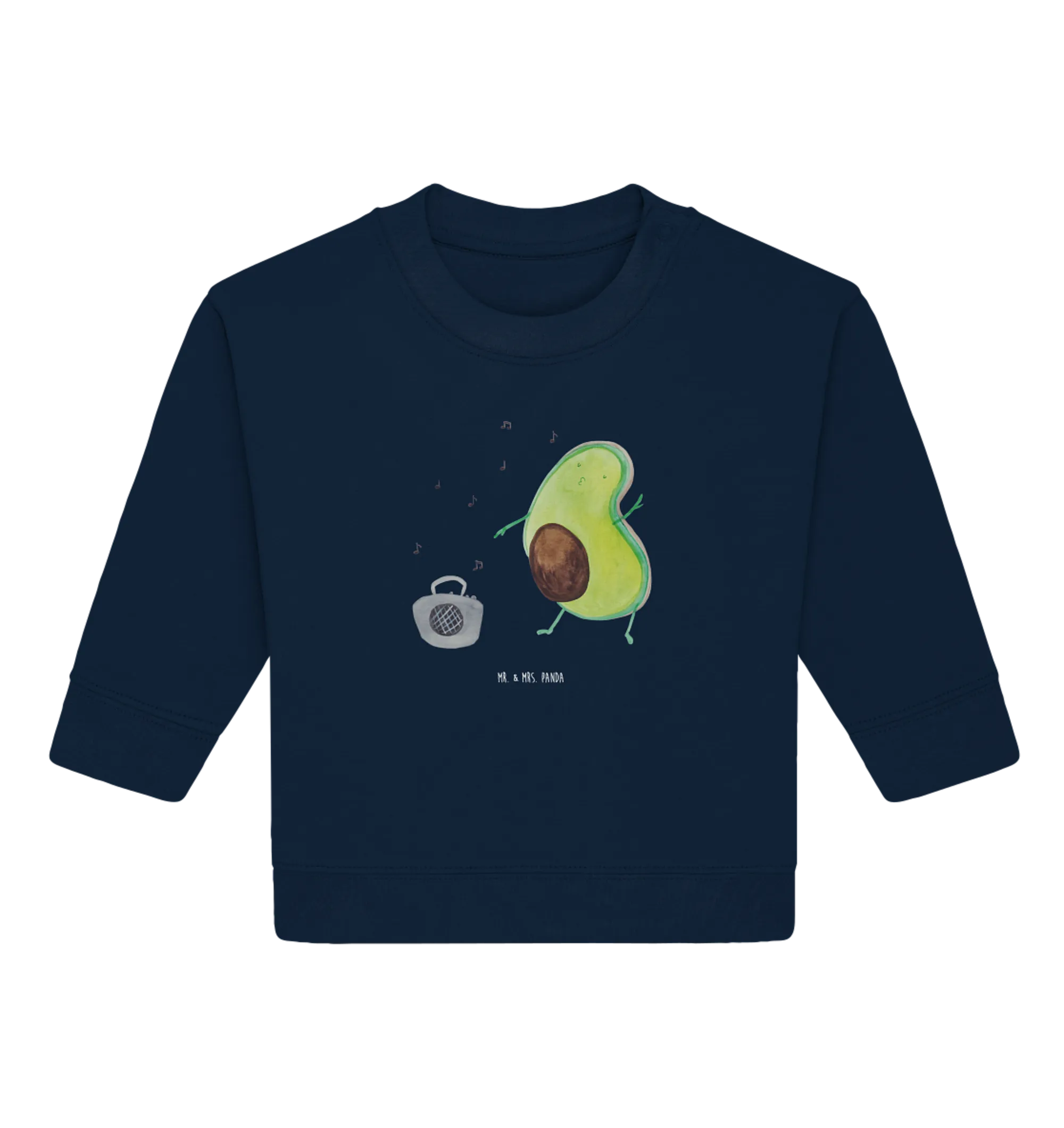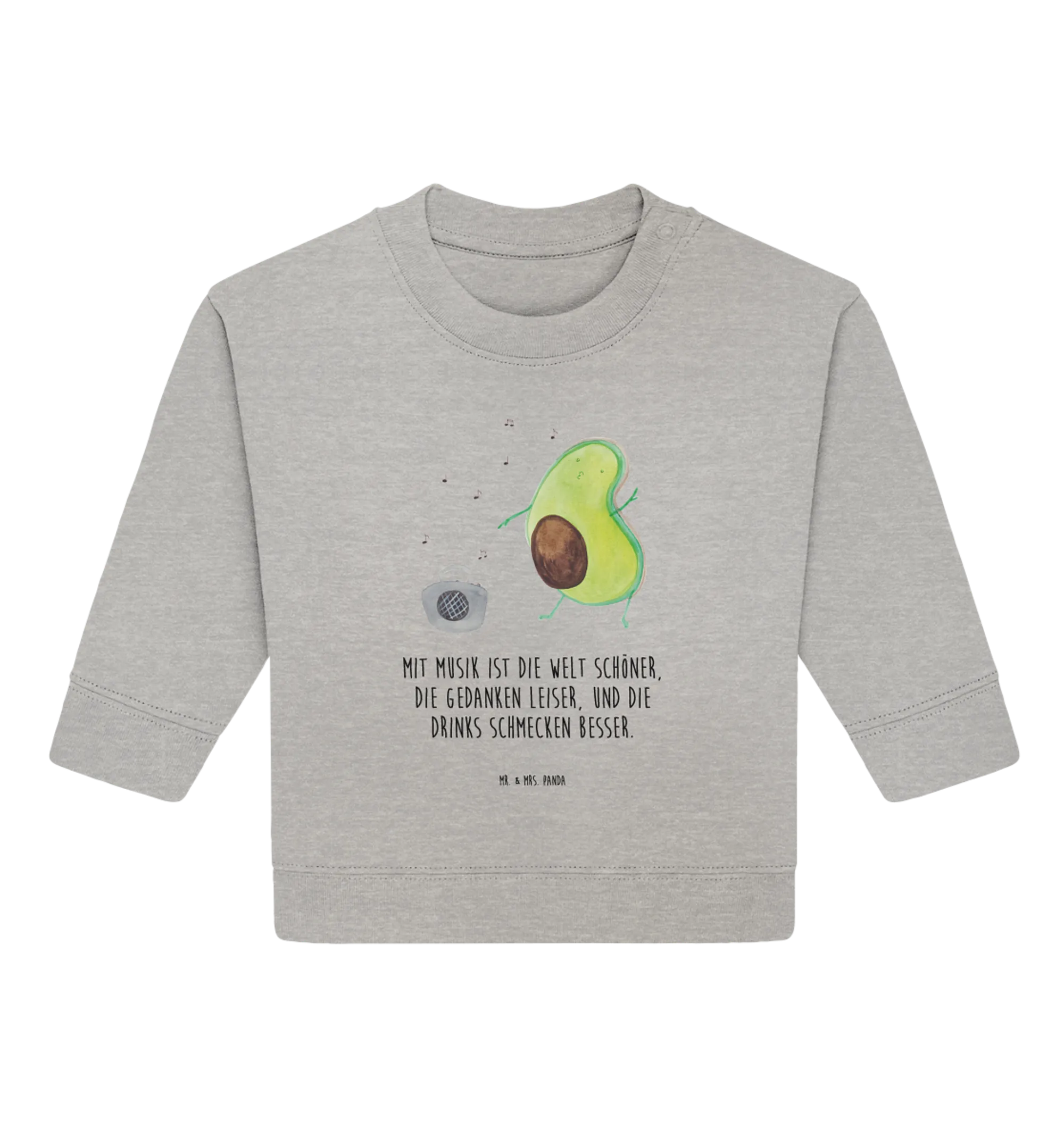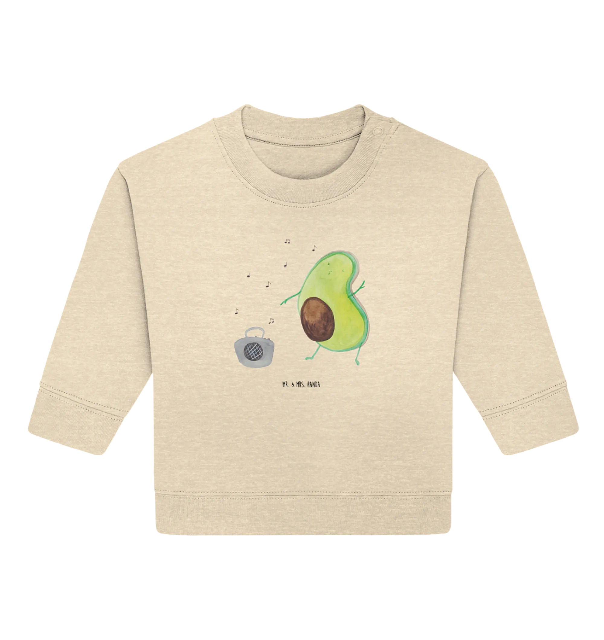 Der Organic Baby Pullover "Avocado tanzt" aus der Avocado Kollektion von Mr. & Mrs. Panda ist das perfekte Geschenk für alle kleinen Veggie-Fans und gesundheitsbewussten Eltern! Dieser niedliche Baby Sweatshirt strahlt Lebensfreude und Optimismus aus, während eine süße Avocado fröhlich vor ihrem Ghettoblaster zur Musik tanzt.