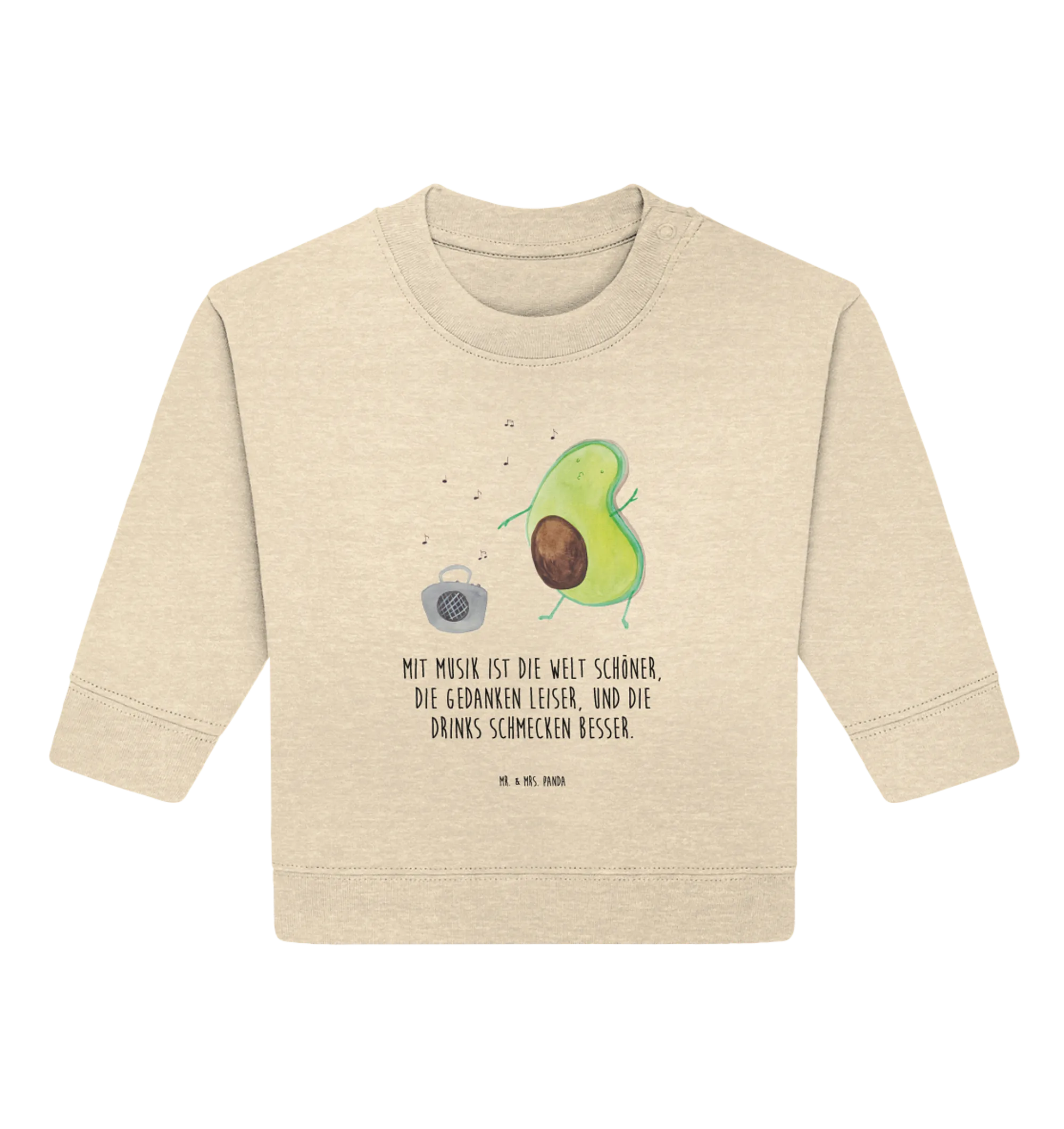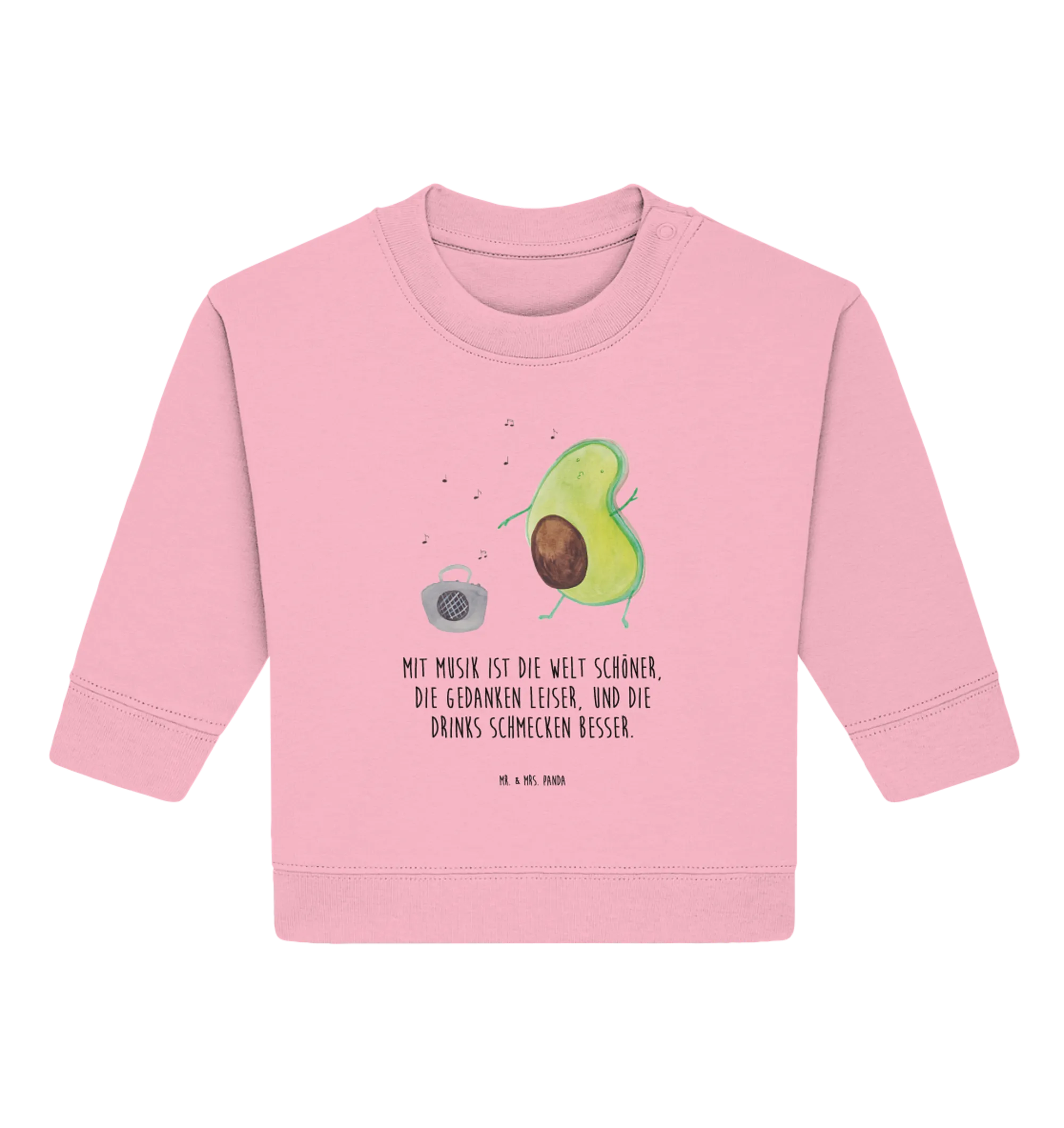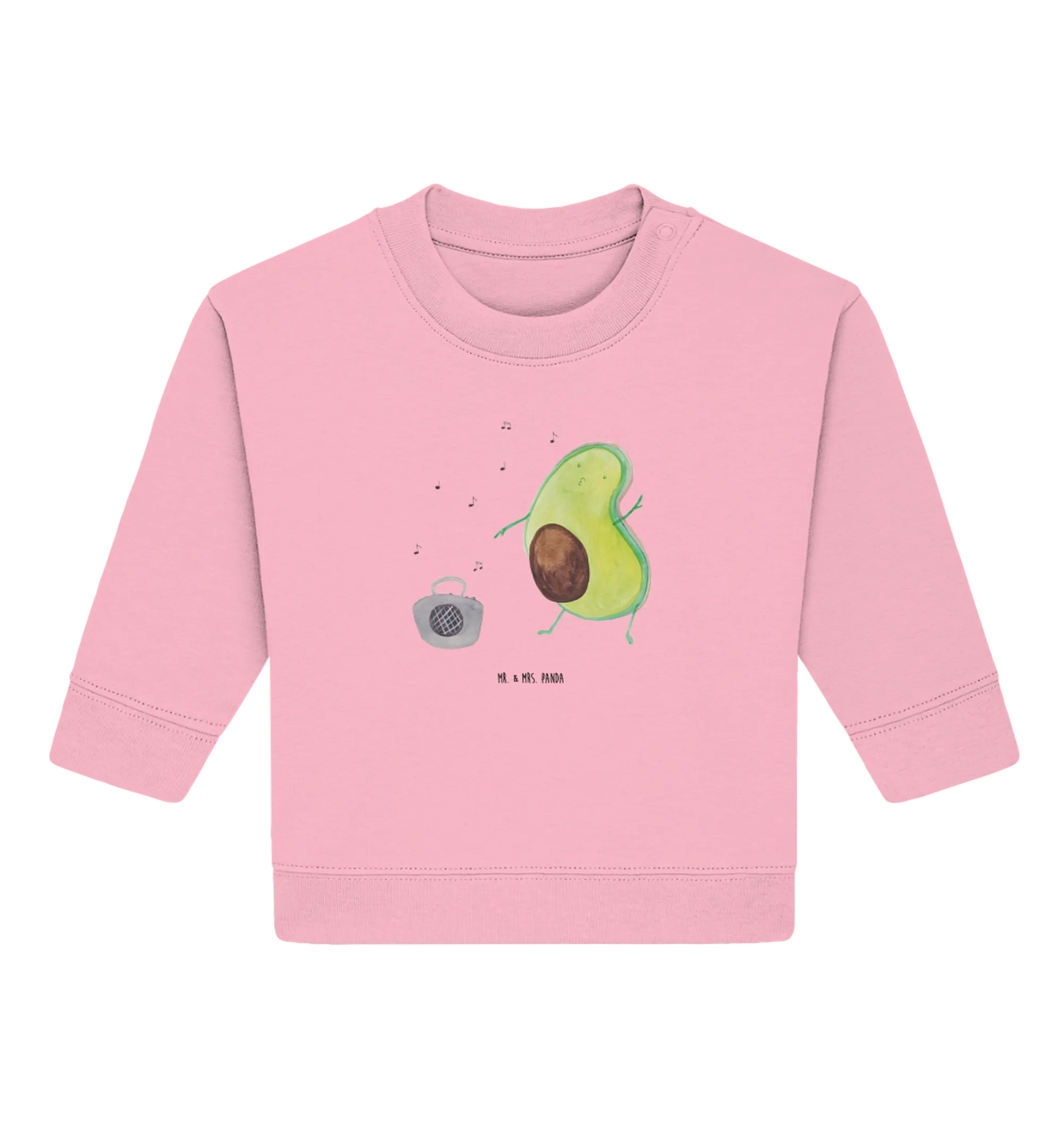 Der Organic Baby Pullover "Avocado tanzt" aus der Avocado Kollektion von Mr. & Mrs. Panda ist das perfekte Geschenk für alle kleinen Veggie-Fans und gesundheitsbewussten Eltern! Dieser niedliche Baby Sweatshirt strahlt Lebensfreude und Optimismus aus, während eine süße Avocado fröhlich vor ihrem Ghettoblaster zur Musik tanzt.