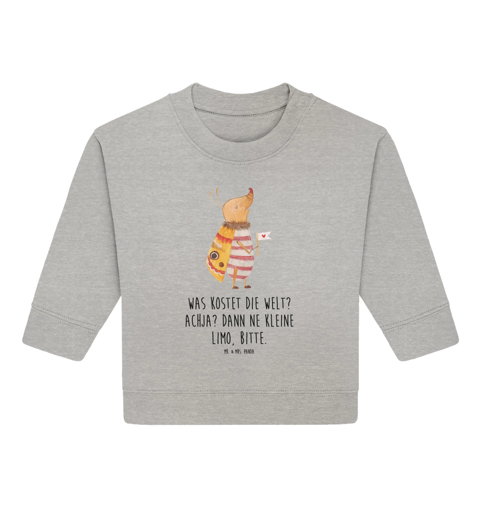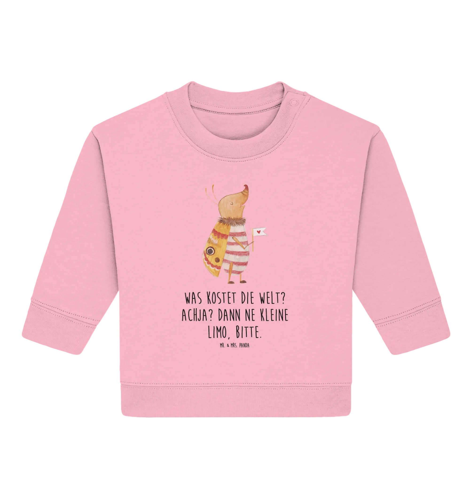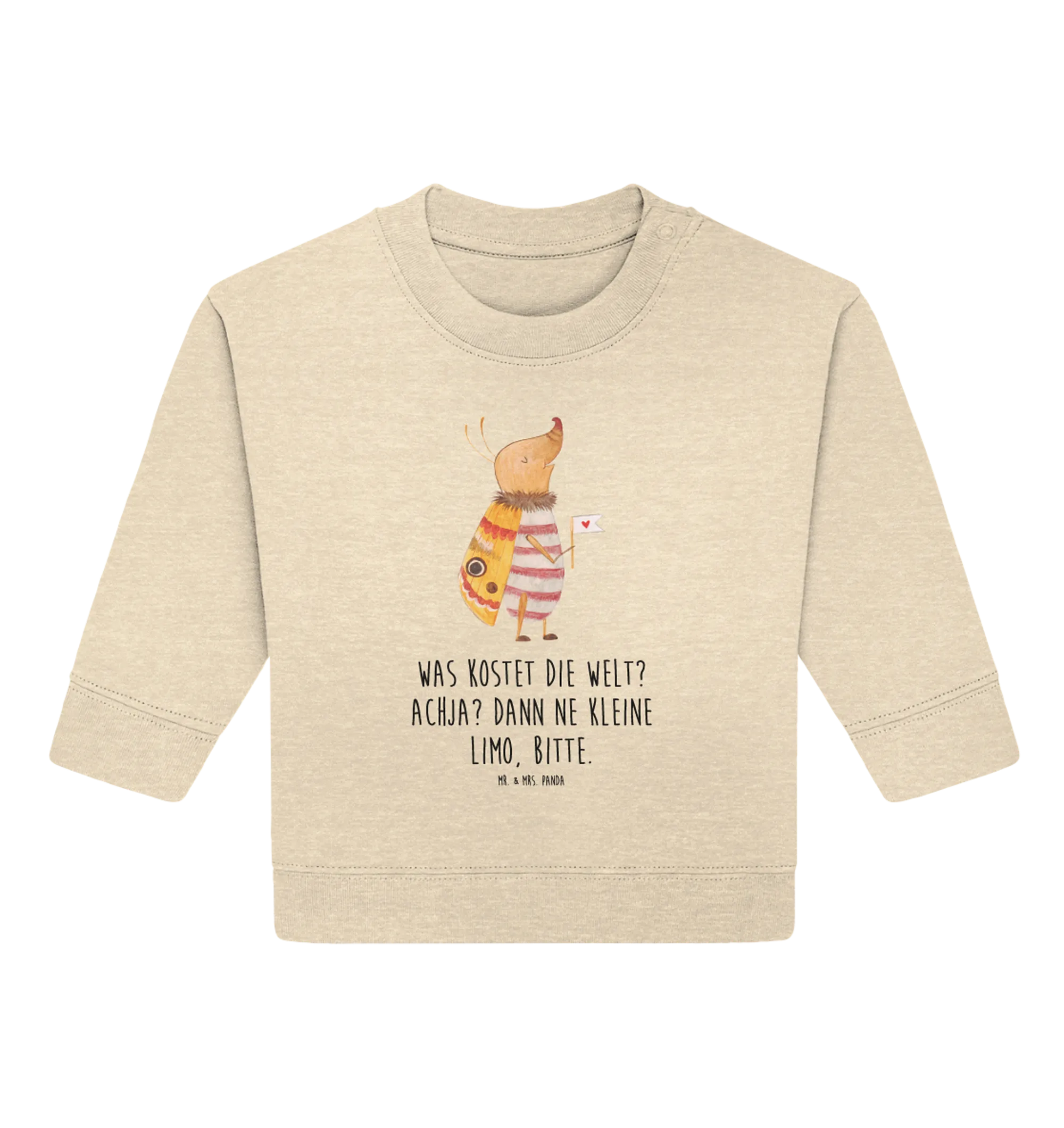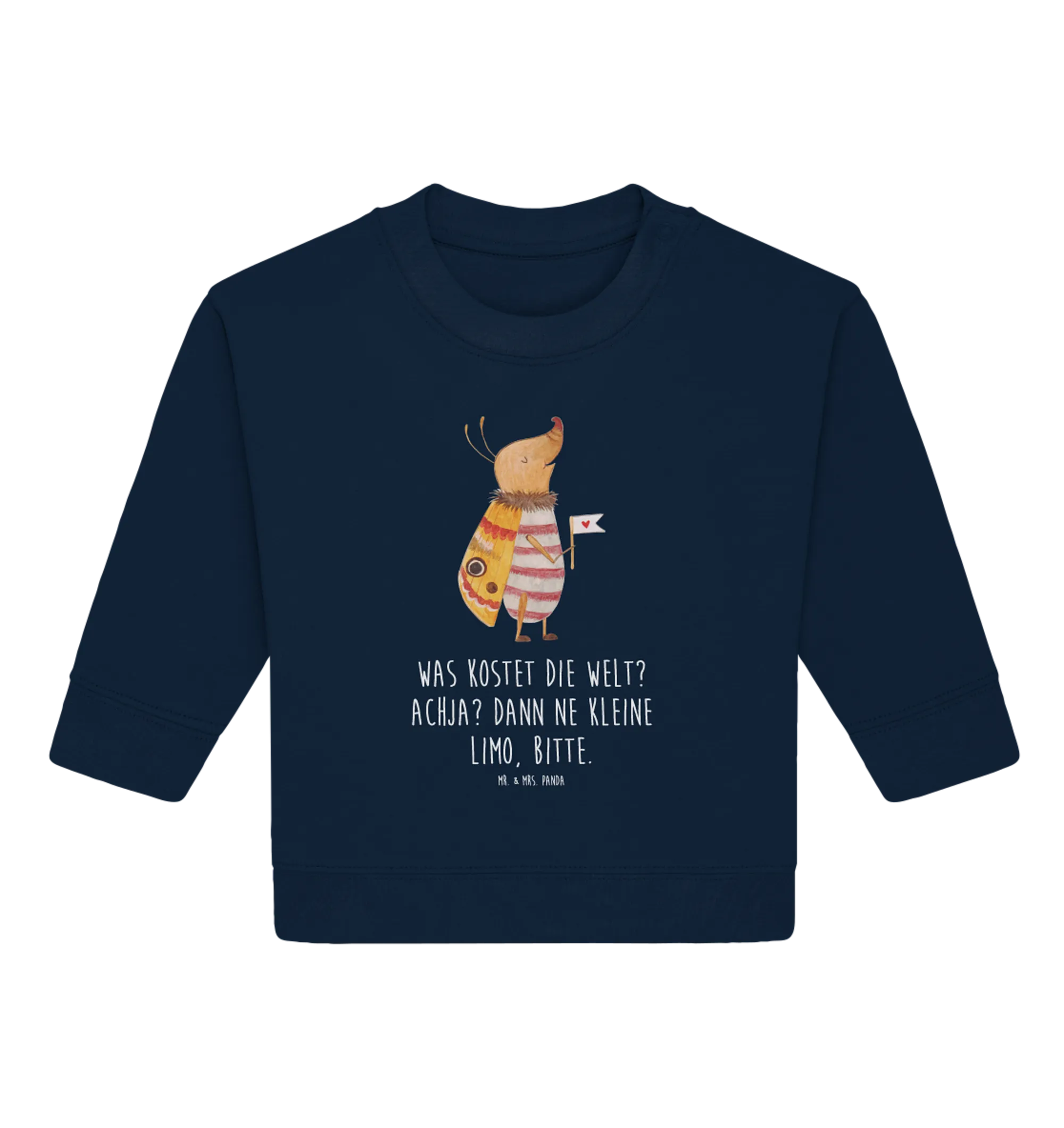 Mit dem niedlichen Nachtfalter mit Fähnchen, der fröhlich seine nächtlichen Abenteuer plant, bringt dieser Pullover eine Portion Gute Laune in den Alltag jedes Babys. Die Baumwolle ist nicht nur ökologisch, sondern auch besonders weich und angenehm auf der zarten Babyhaut. Die Kombination aus Tiermotiven und witzigem Spruch 'Was kostet die Welt? Achja? Dann ne kleine Limo, bitte.' macht diesen Pullover zu einem witzigen Gesprächsstoff bei jedem Treffen mit Freunden oder Familienfesten.
