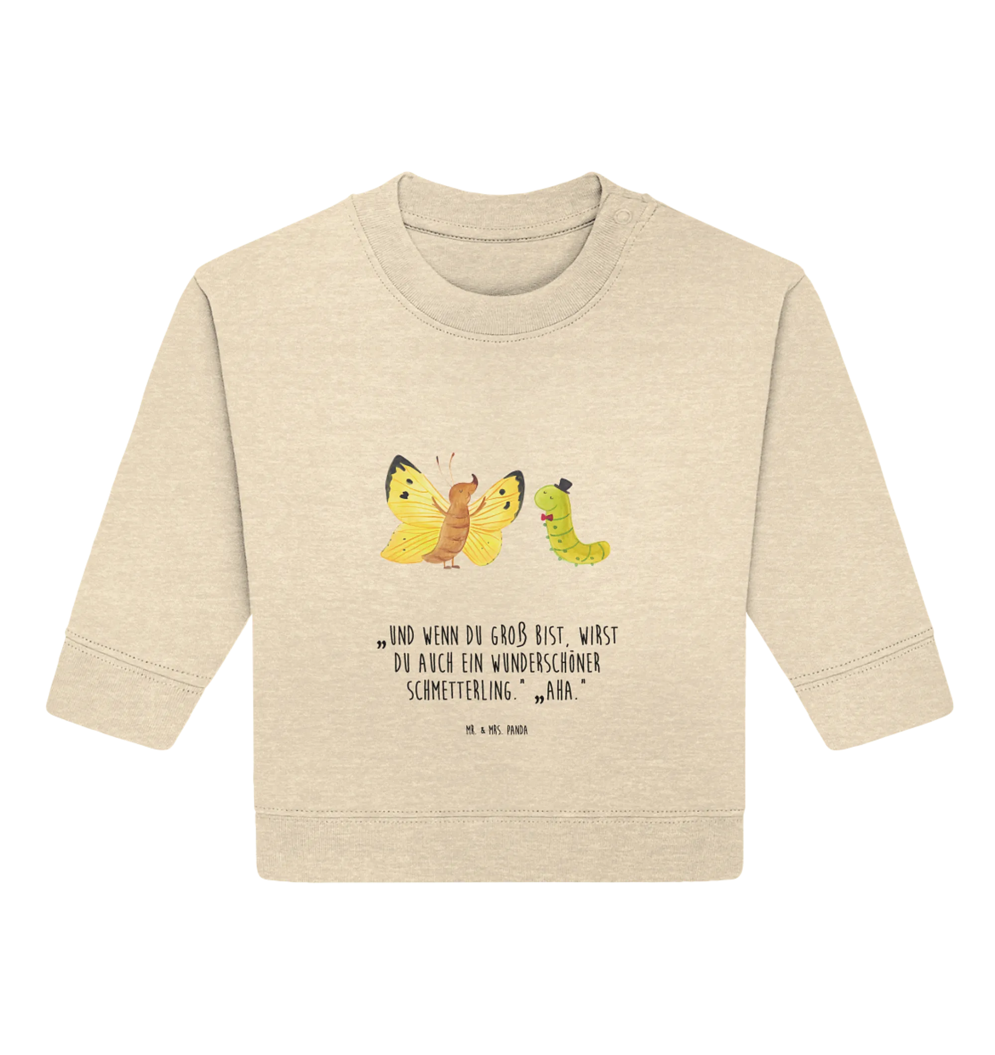 Organiczny sweter dla niemowląt gąsienica motyl - 24. - 36. miesiąc - z napisem - Naturalny Surowy