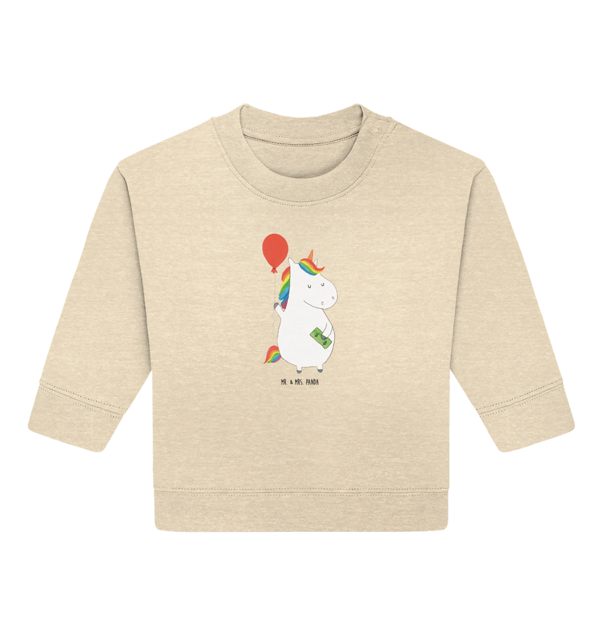 Entdecke den zauberhaften Organic Baby Pullover mit dem süßen Einhorn Luftballon Motiv aus der exklusiven Einhorn-Kollektion von Mr. & Mrs. Panda. Dieser Pullover ist nicht nur ein wunderbares Kleidungsstück für die Kleinsten, sondern auch ein perfektes Geschenk für zahlreiche Anlässe wie Geburtstage, Taufen oder einfach so, um einem kleinen Lieblingsmenschen eine Freude zu machen.