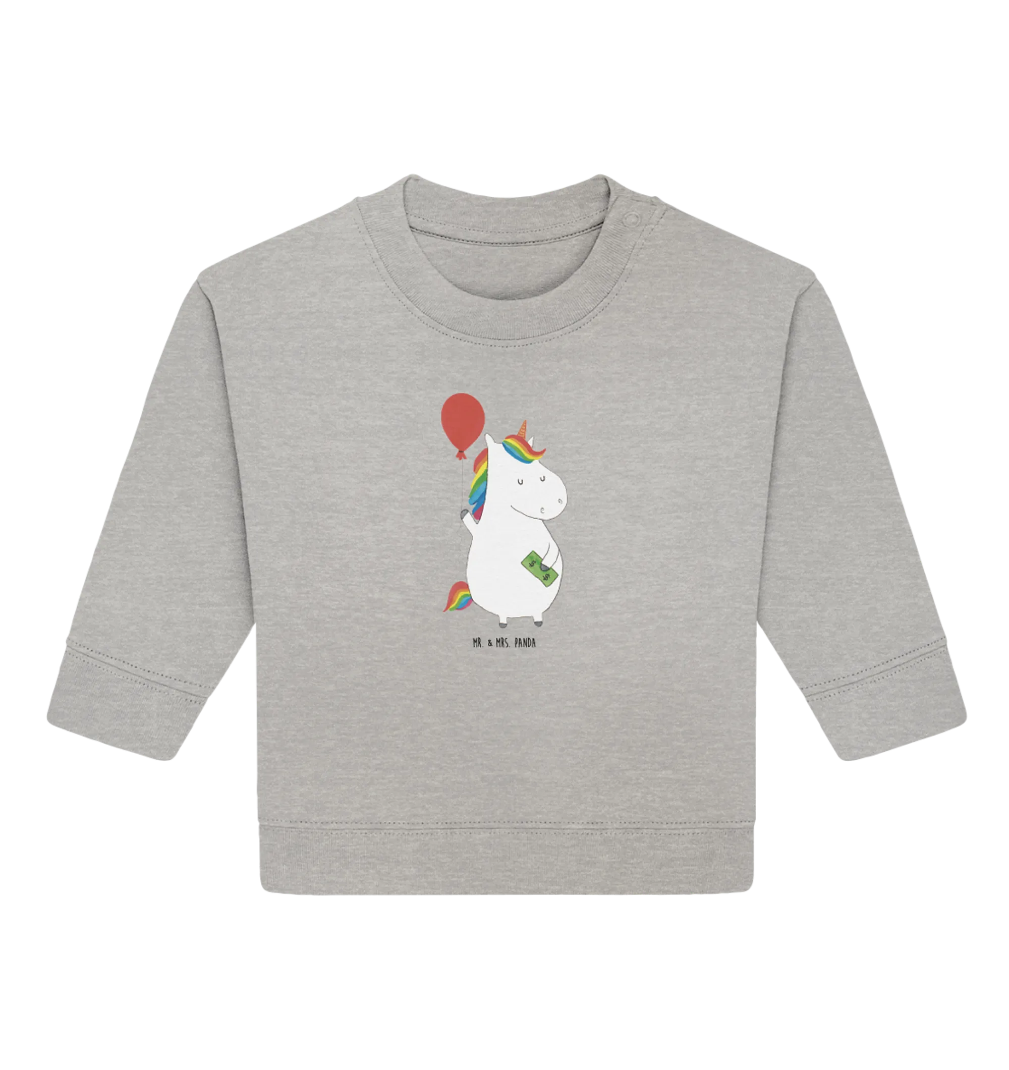 Entdecke den zauberhaften Organic Baby Pullover Einhorn Luftballon aus der einzigartigen Einhorn-Kollektion von Mr. & Mrs. Panda! Dieser Pullover ist nicht nur ein modisches Highlight, sondern auch ein fantastisches Geschenk für all die kleinen Einhorn-Liebhaber in Deinem Leben. Mit dem süßen, handgezeichneten Motiv eines Einhorns, das einen Luftballon und ein paar Geldscheine in den Händen hält, strahlt dieser Pullover pure Lebensfreude aus. Einhörner sind die perfekten Begleiter für Kinder und regen die Fantasie an – ideal für Spielabenteuer und fröhliche Stunden. Zudem kommt der Pullover in einem neutralen Heather Grey, was ihn zu einem vielseitigen Teil der Babygarderobe macht.