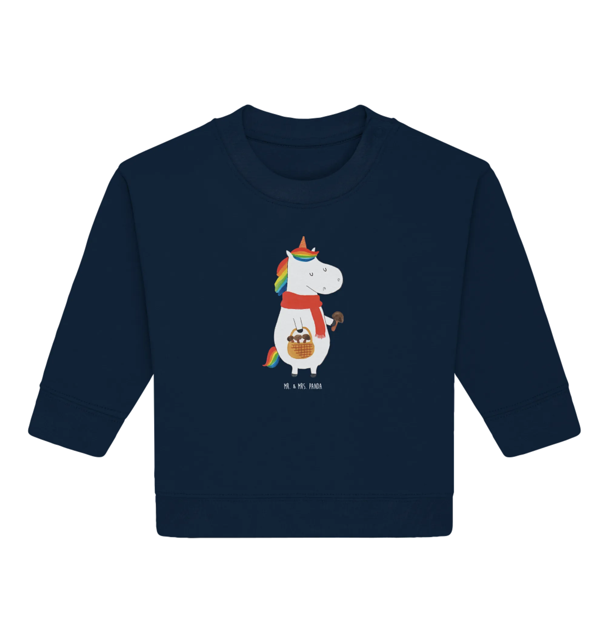 Der Organic Baby Pullover mit dem zauberhaften Einhorn Pilz-Motiv aus der speziellen Einhorn - Kollektion von Mr. & Mrs. Panda ist das perfekte Geschenk für kleine Einhornliebhaber.