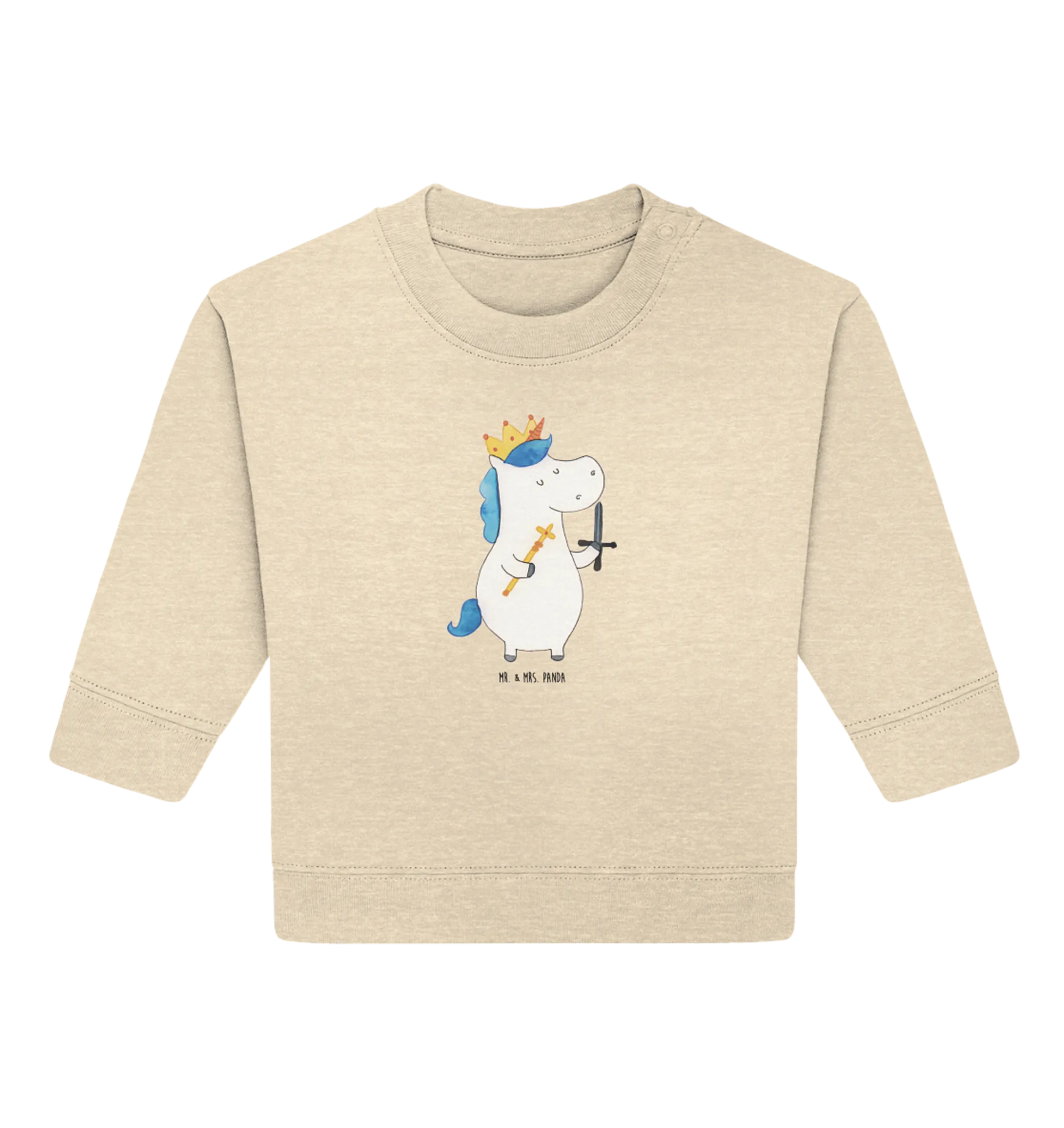Der Organic Baby Pullover "Einhorn König mit Schwert" aus der zauberhaften Einhorn-Kollektion von Mr. & Mrs. Panda ist das perfekte Geschenk für kleine Einhornliebhaber und ihre Eltern. 🎁
