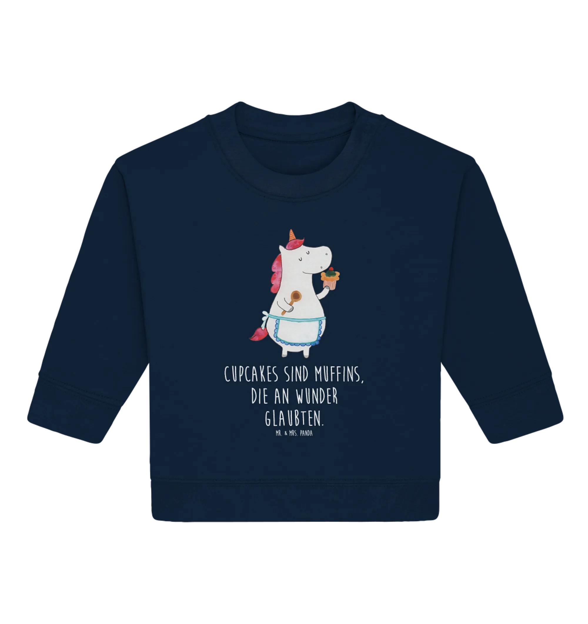 Die Einhorn Kollektion von Mr. & Mrs. Panda bringt die zauberhafte Welt der Einhörner direkt ins Kinderzimmer! Ideal für besondere Anlässe, wie Geburtstage, Taufe oder einfach als süßes Outfit für den Alltag. Überrasche eine junge Familie oder die frischgebackenen Eltern mit einem Geschenk, das sowohl niedlich als auch hilfreich ist. Mit dem Spruch 'Cupcakes sind Muffins, die an Wunder glaubten.' regt der Pullover die Fantasie an und erinnert daran, dass jedes Kind groß träumen sollte.