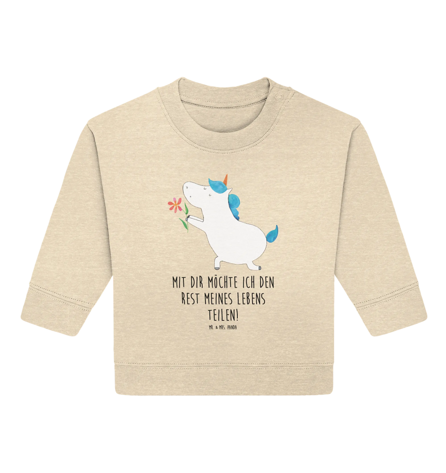 Der Organic Baby Pullover mit dem zauberhaften Einhorn Blume Motiv von Mr. & Mrs. Panda ist das perfekte Geschenk für kleine Einhorn-Fans und deren Eltern. Dieser süße Pullover ist nicht nur ein echter Hingucker, sondern auch ein echtes Liebesbeweis für die kleinen Schätze in unserem Leben. Das handgezeichnete Einhorn, das niederkniet und eine Blume präsentiert, zaubert jedem Betrachter ein Lächeln ins Gesicht und lässt die Herzen höher schlagen.